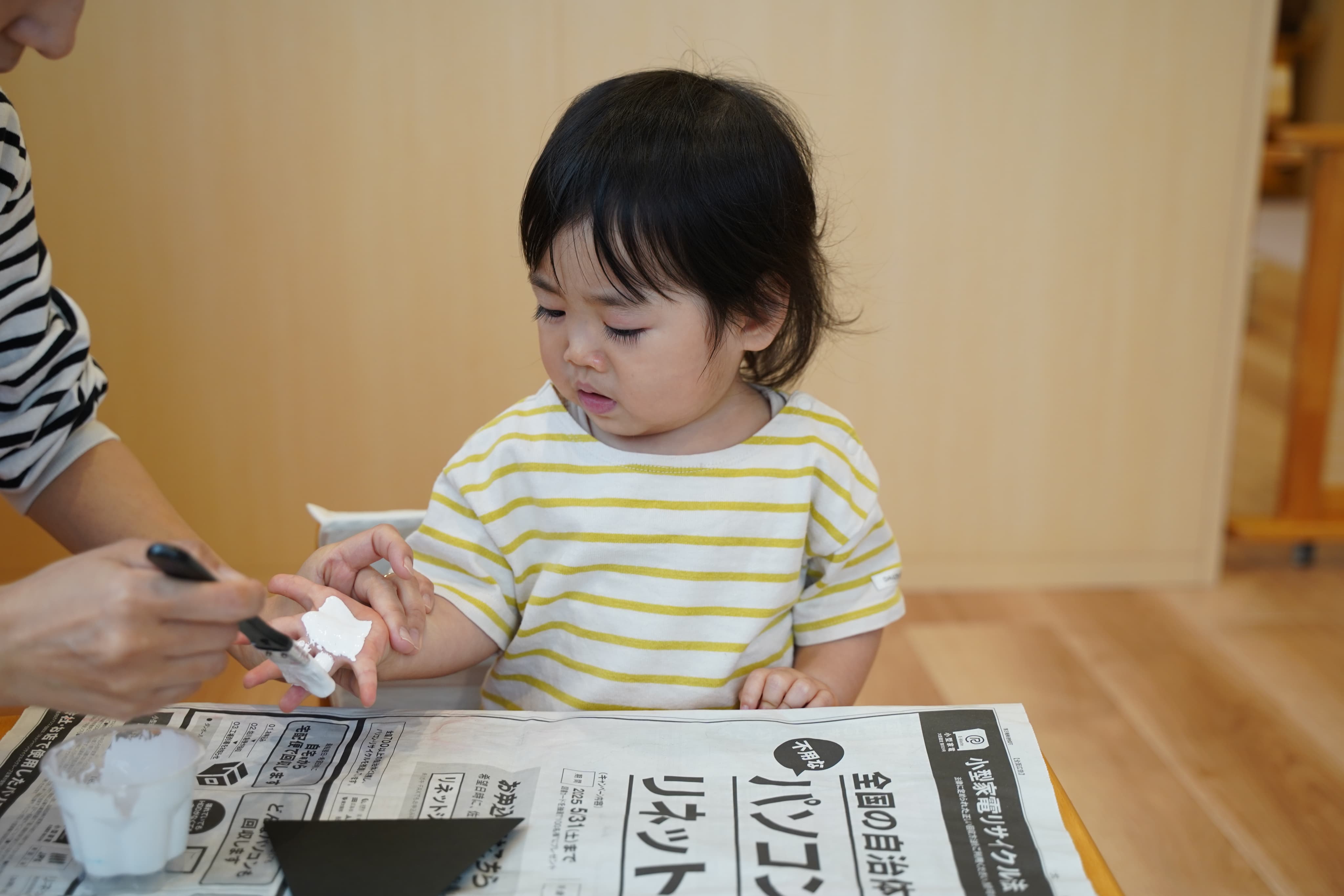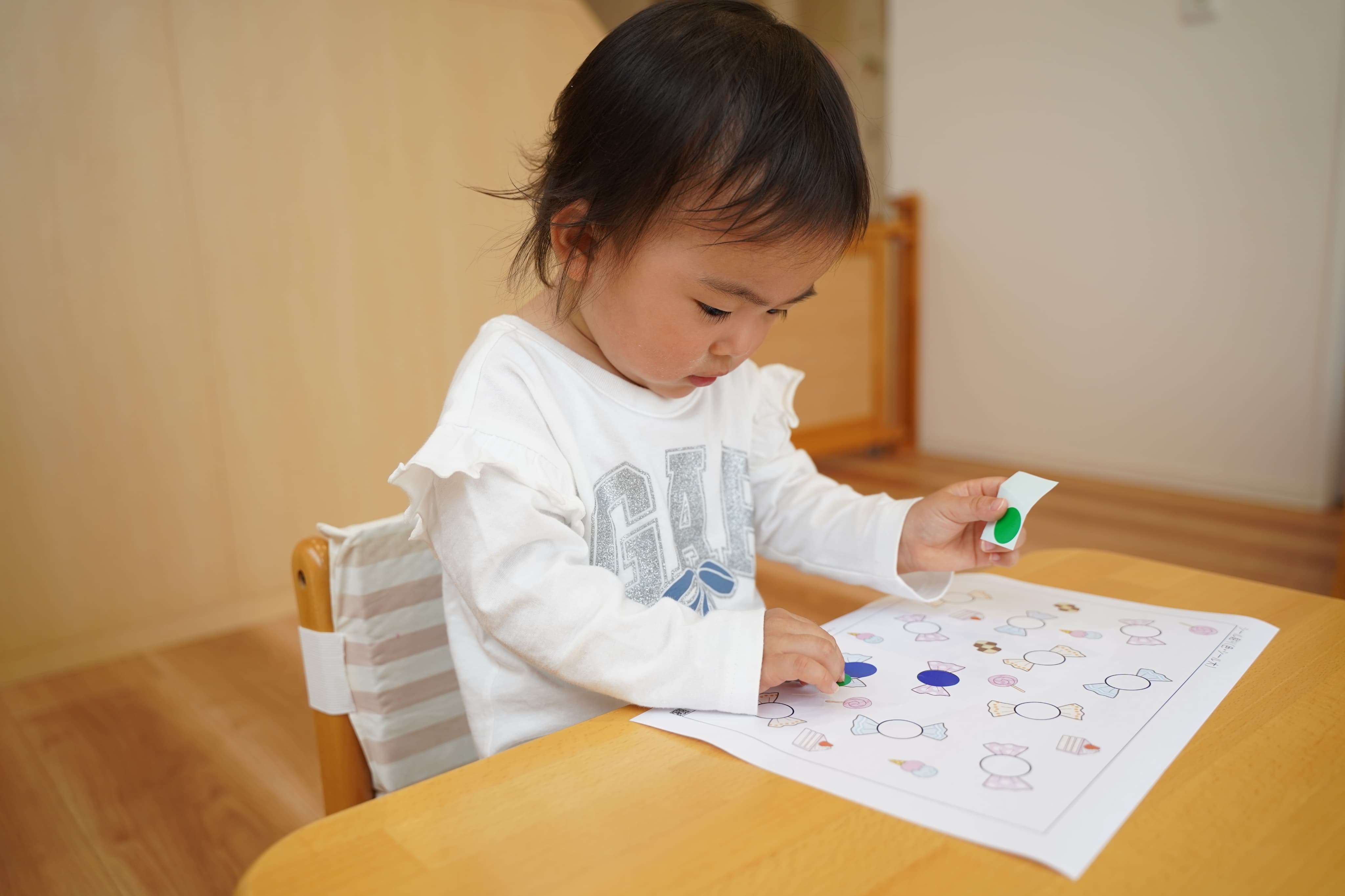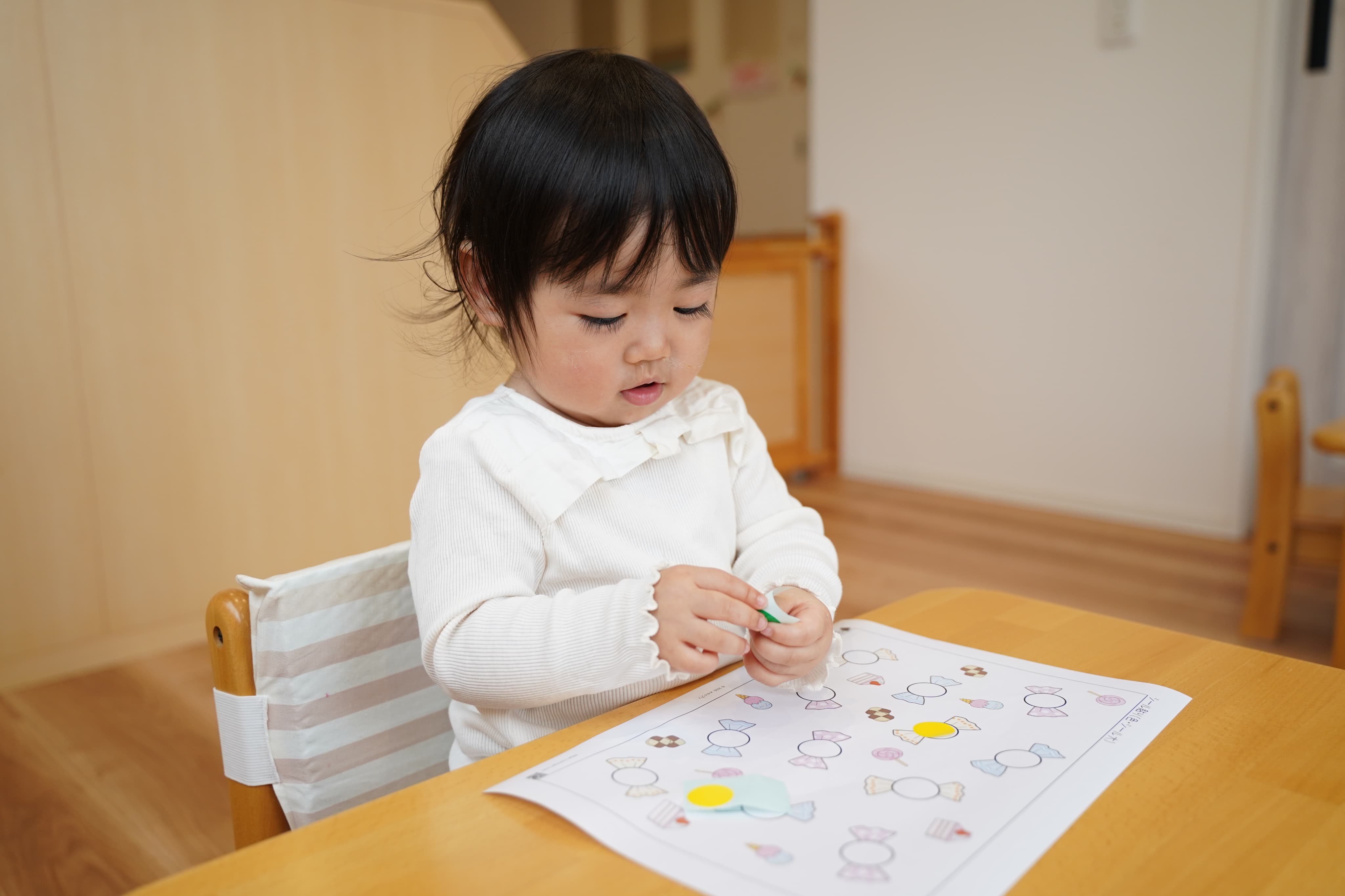 以前やってみたときは、口に入れようとしたりシールがめくれなくて怒っていた子もいたのですが、何度か挑戦しているうちにみんなそれぞれに上達していてびっくりしちゃいました☺️