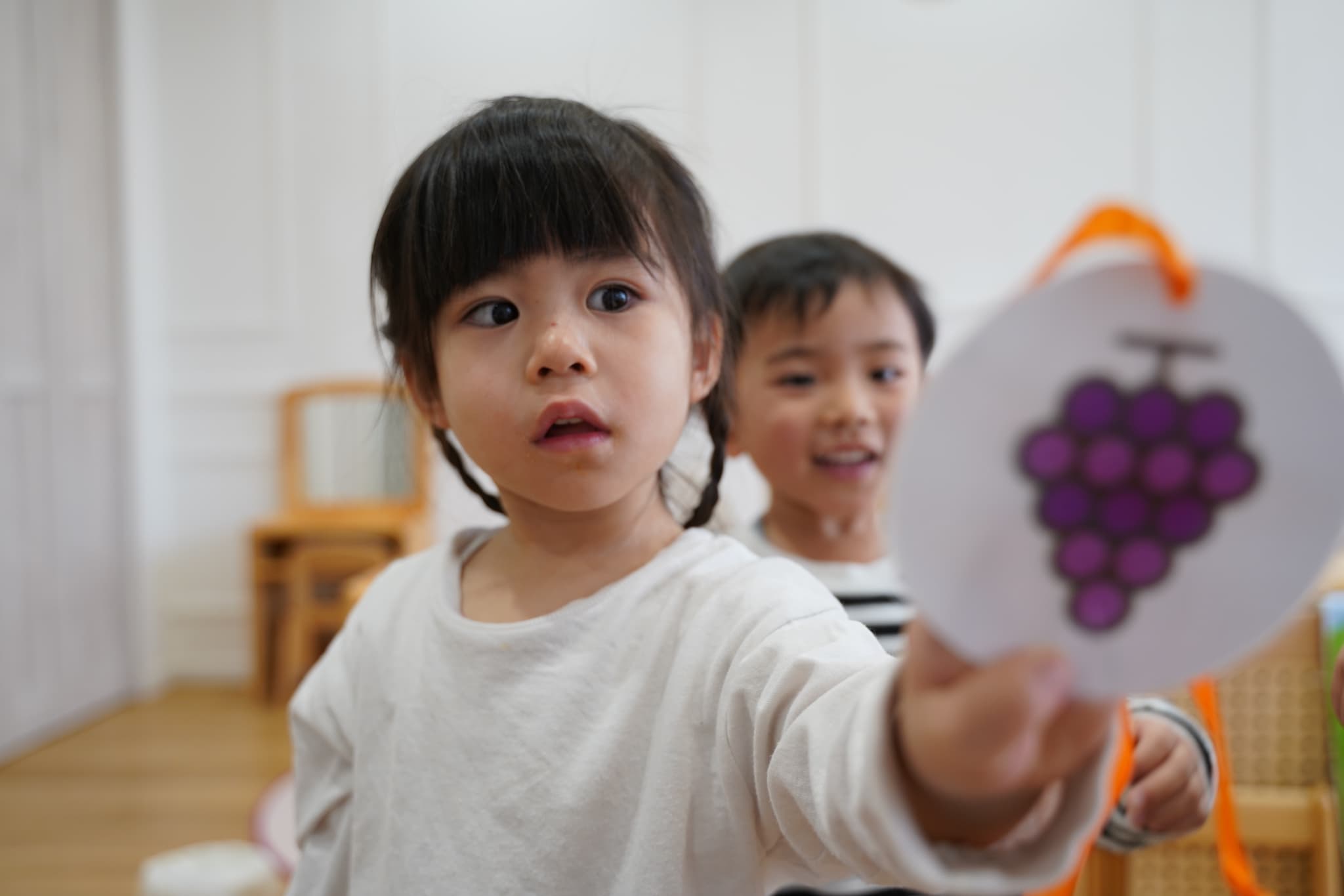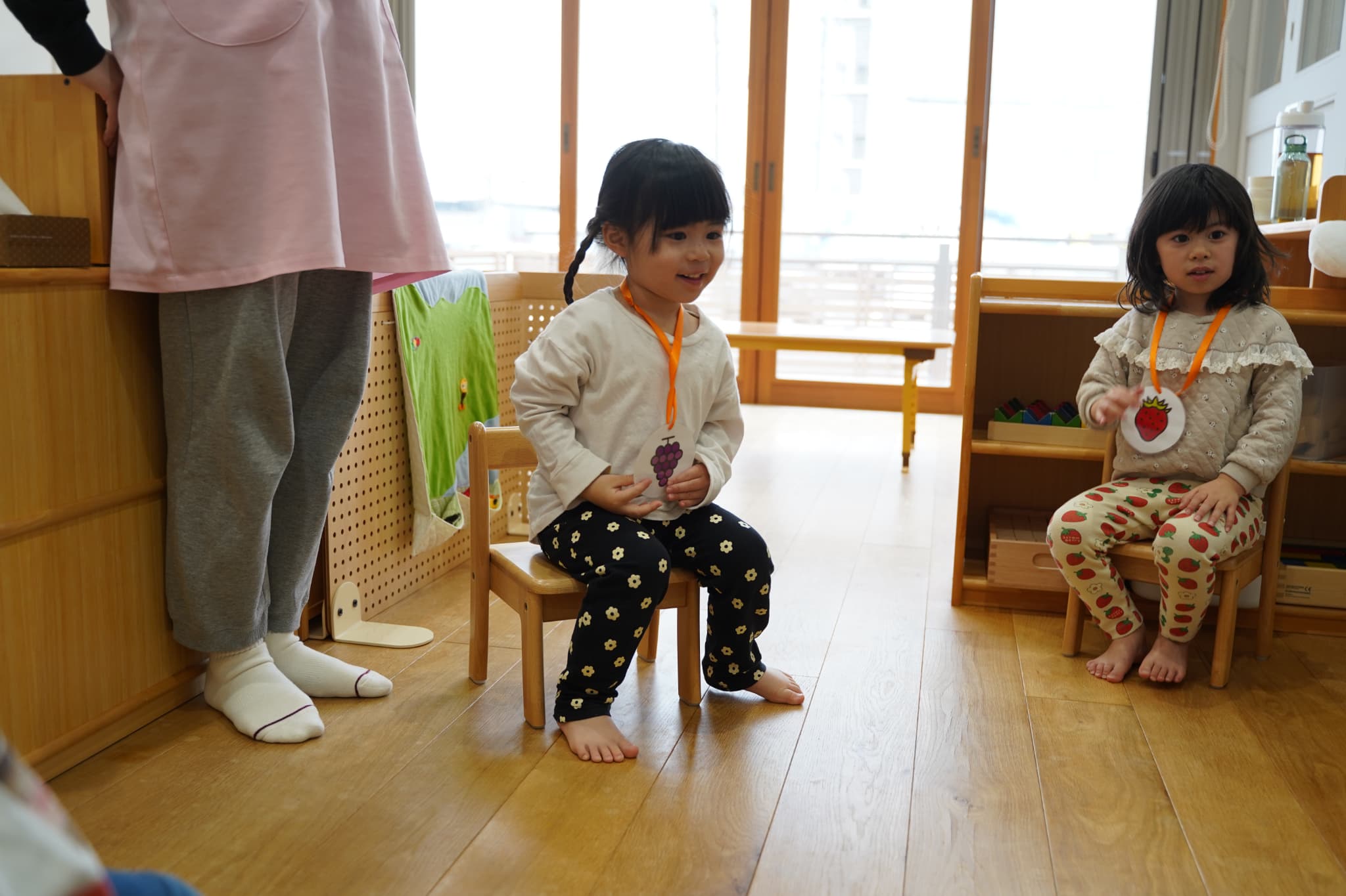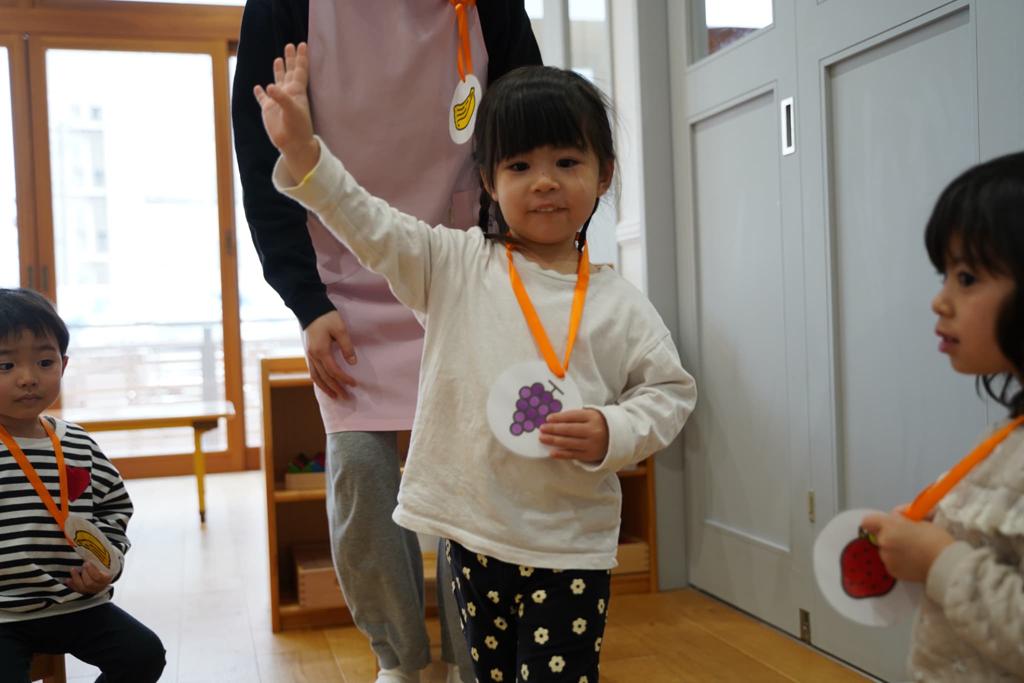 果物がいわれるとついつい手をあげて「は〜い」と言ってから移動する子ども達が可愛かったです😁