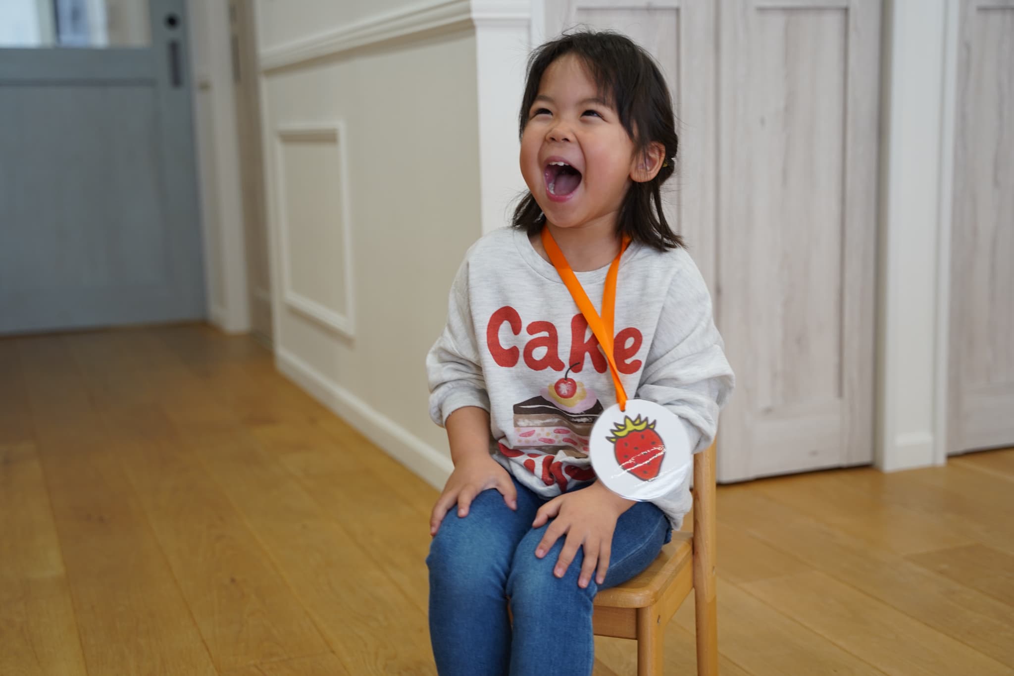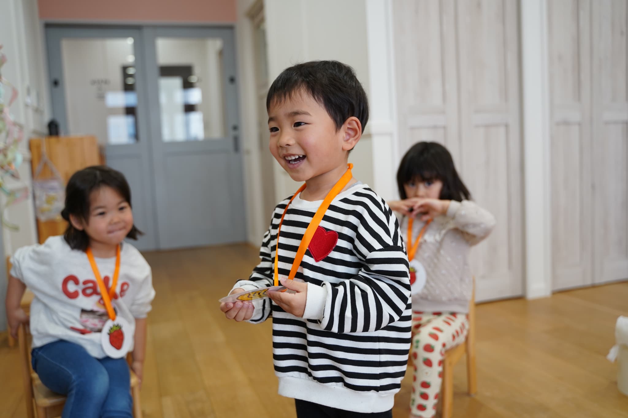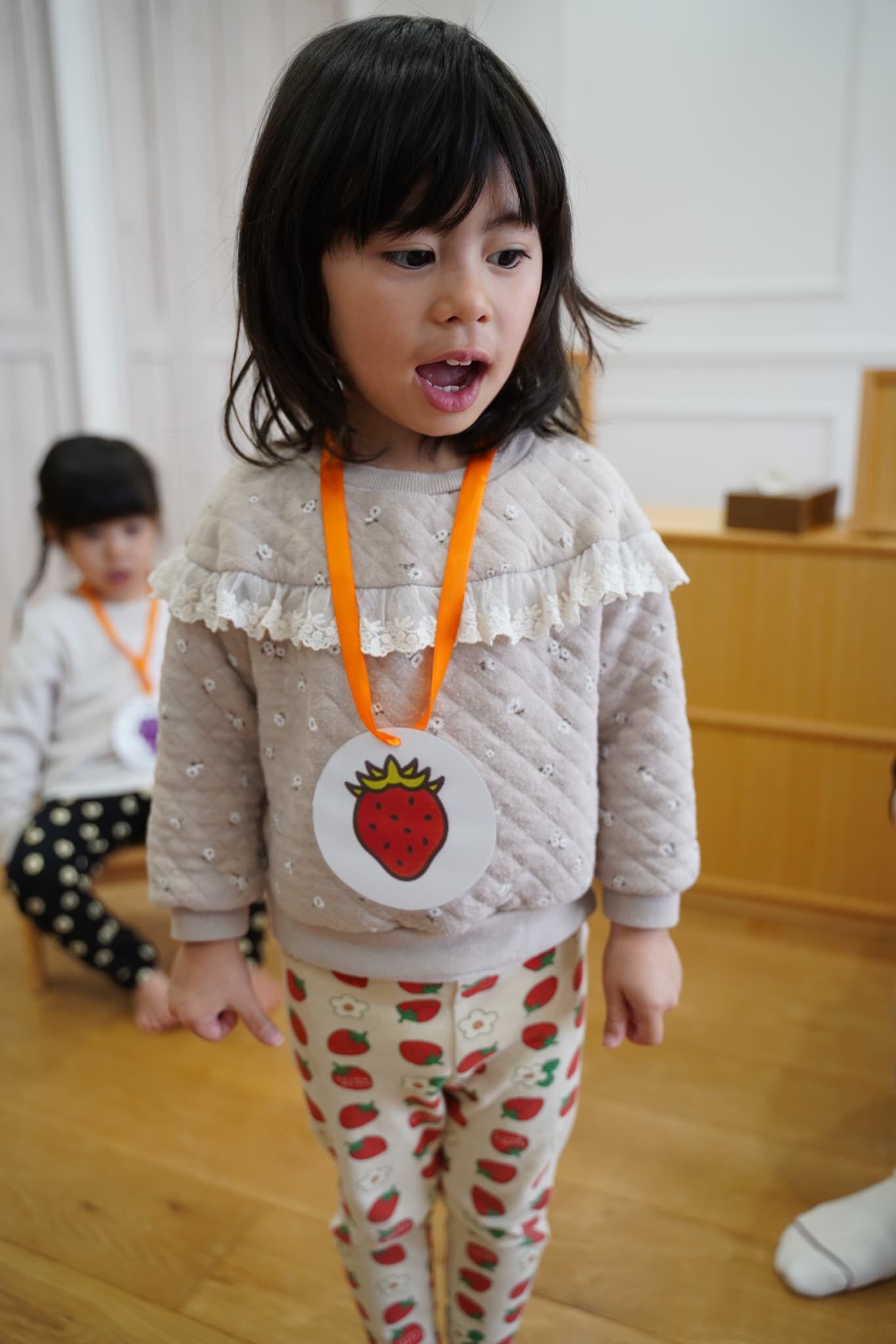 自分の果物のメダルをかけ遊びました🎖️