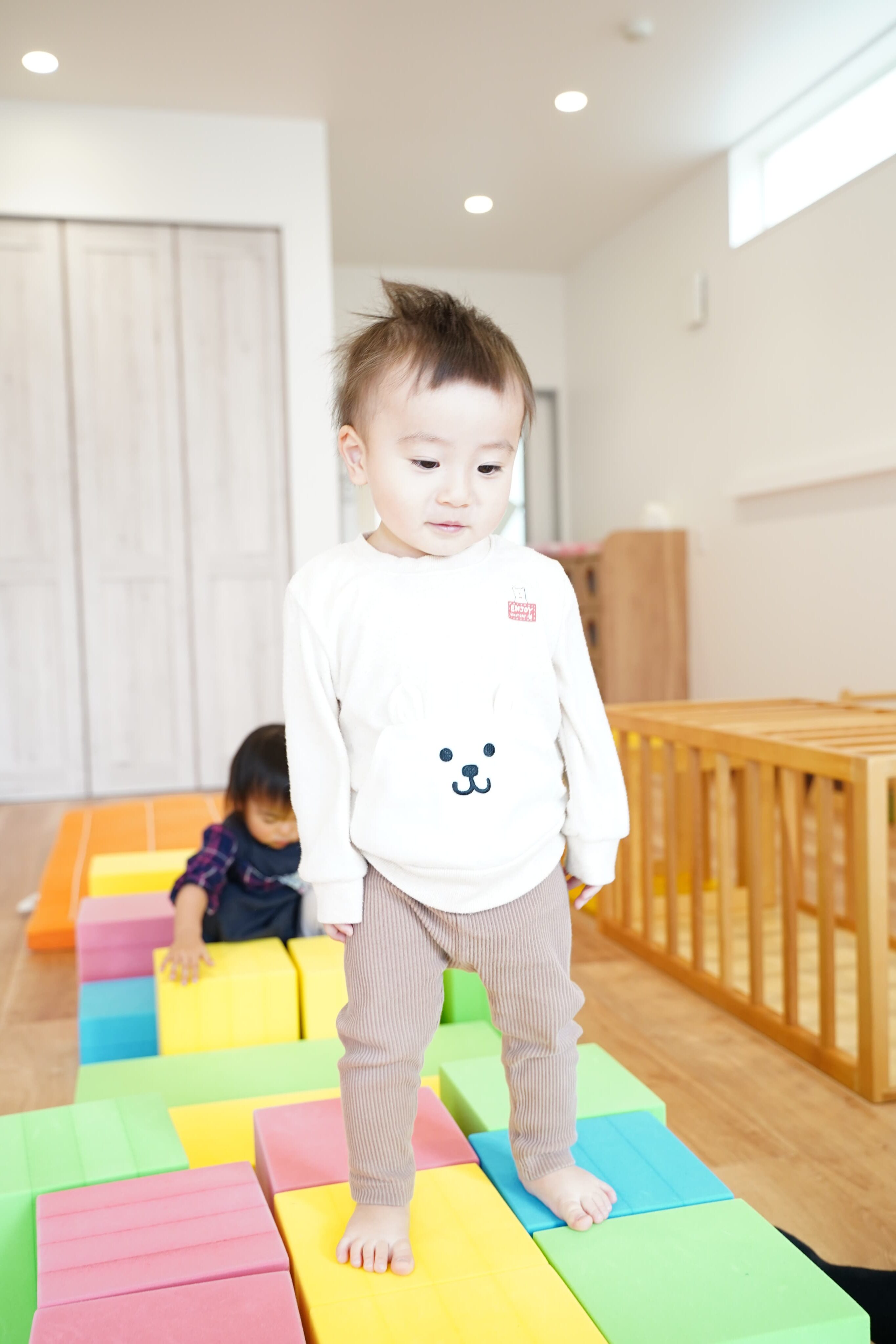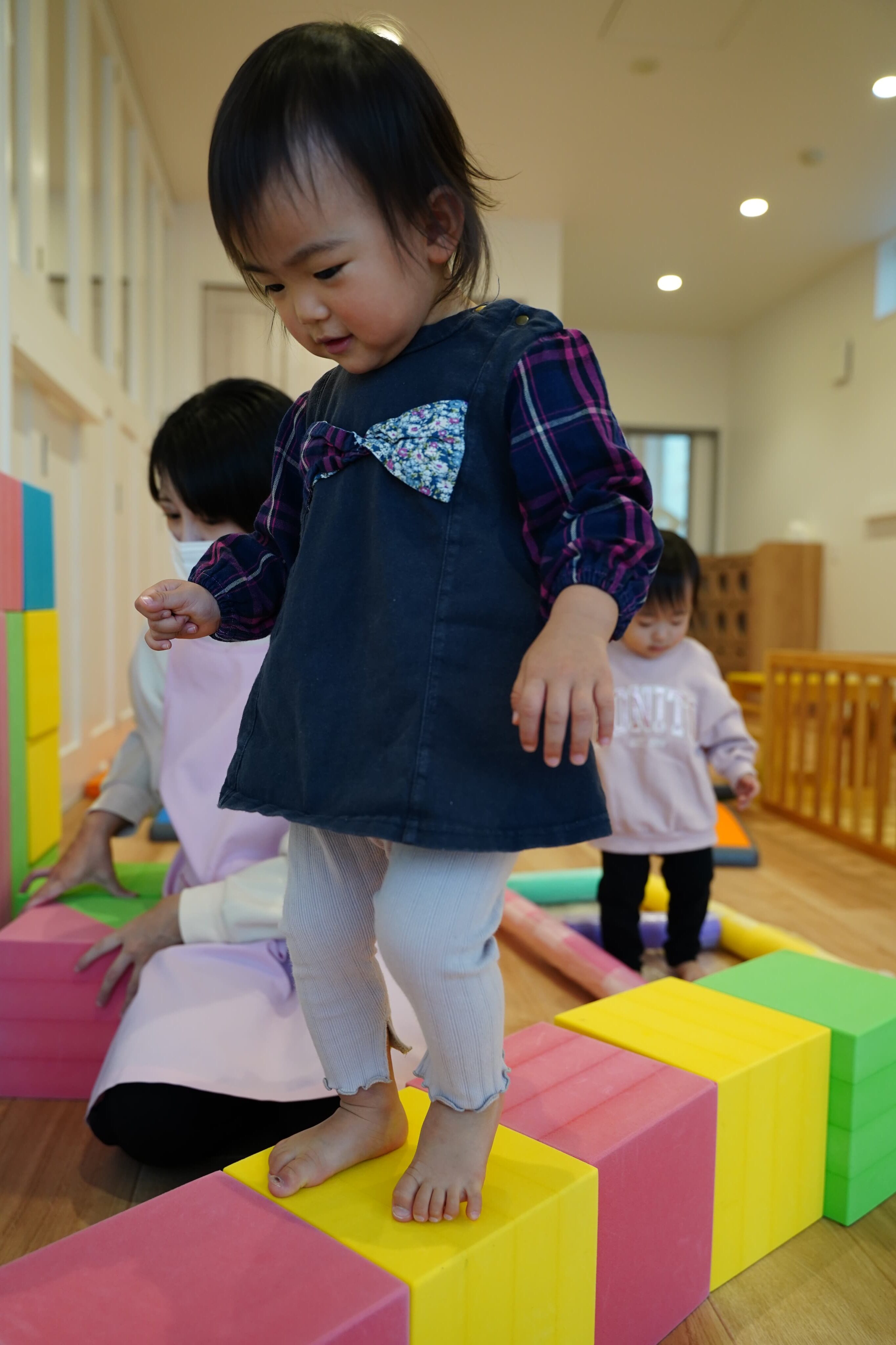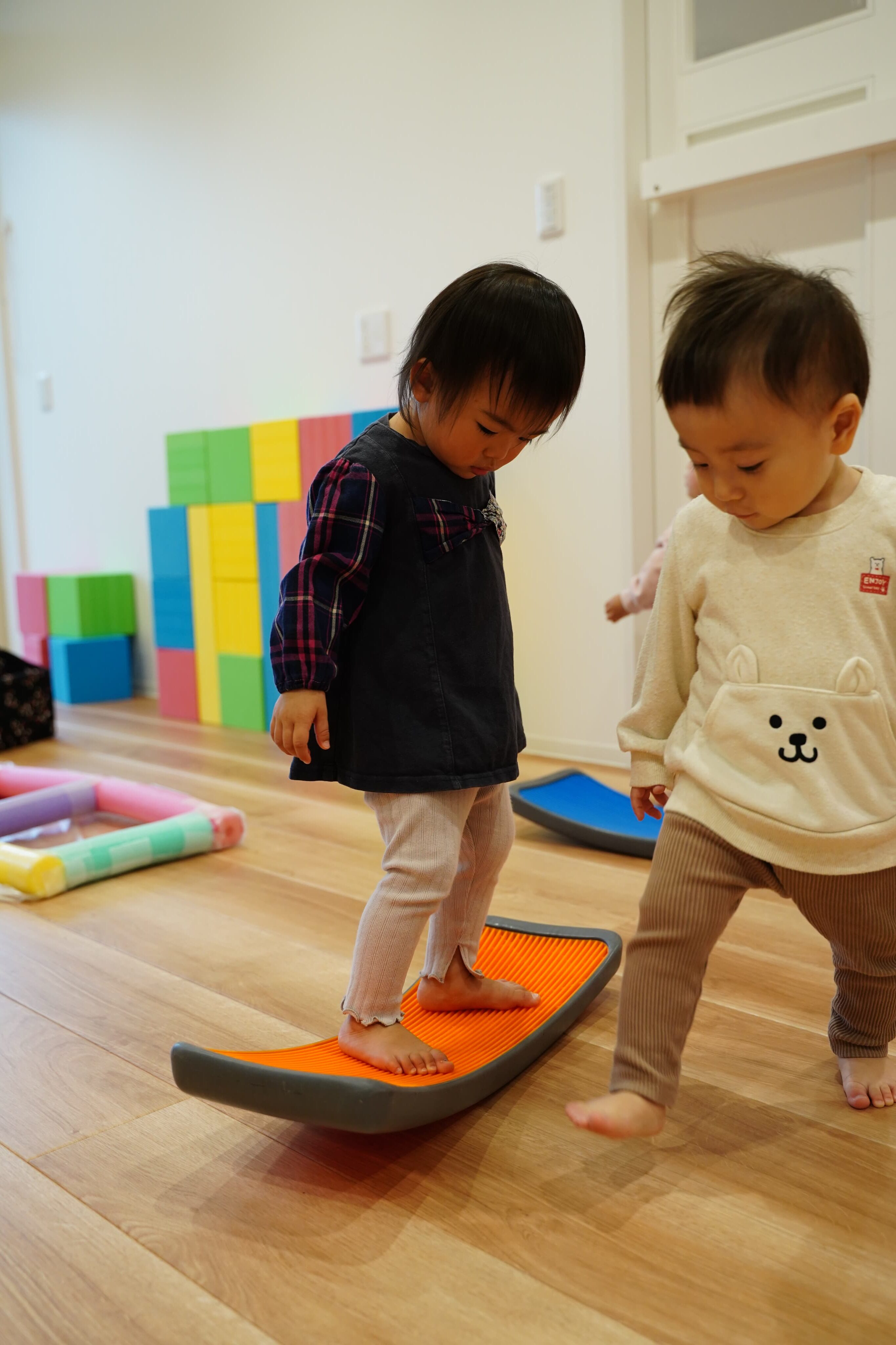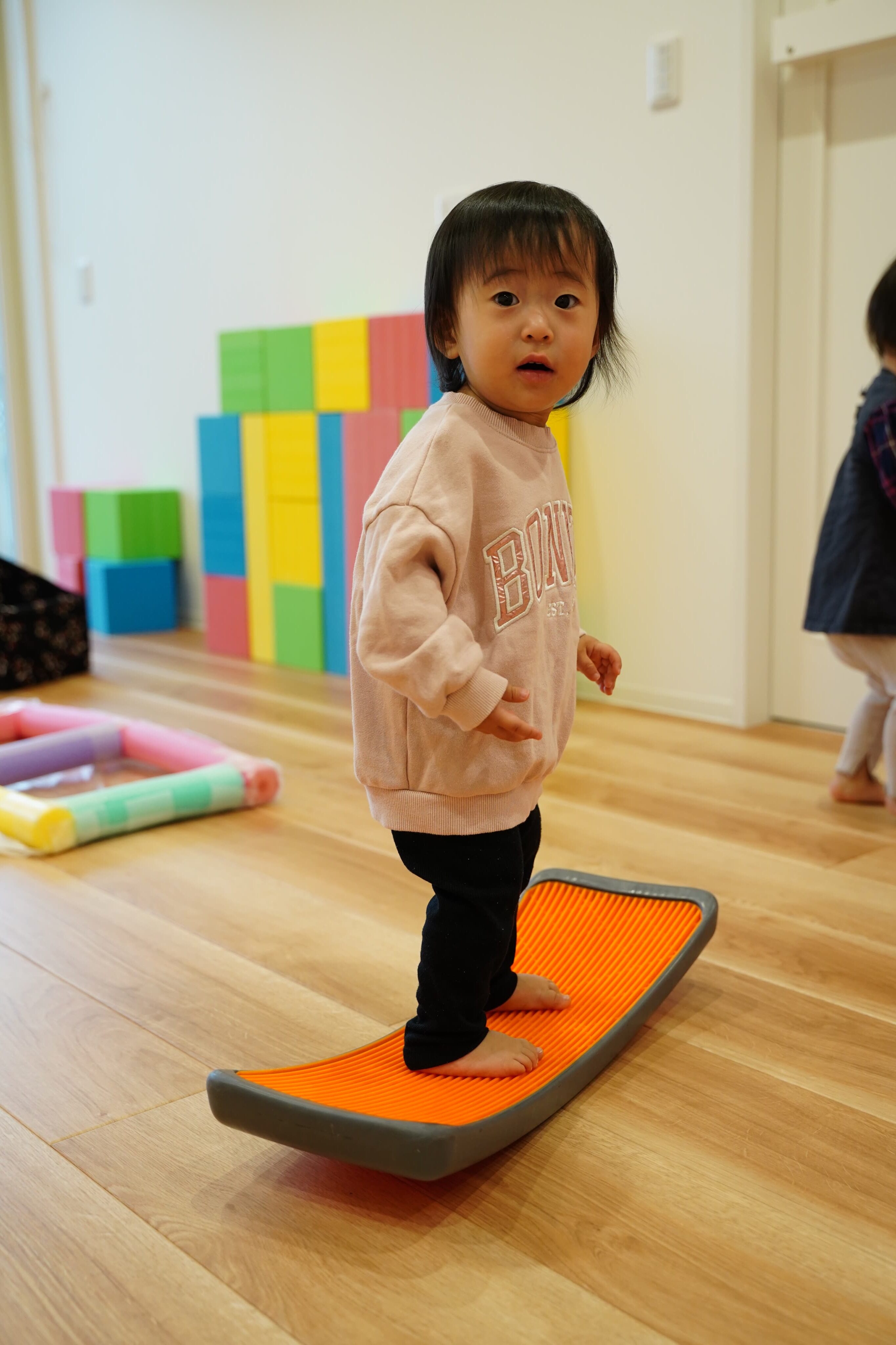 プレイルームに行くと、さっそくバランスボードでゆらゆら〜😆いつの間にか、どの子も1人で立てるようになっていました!✨