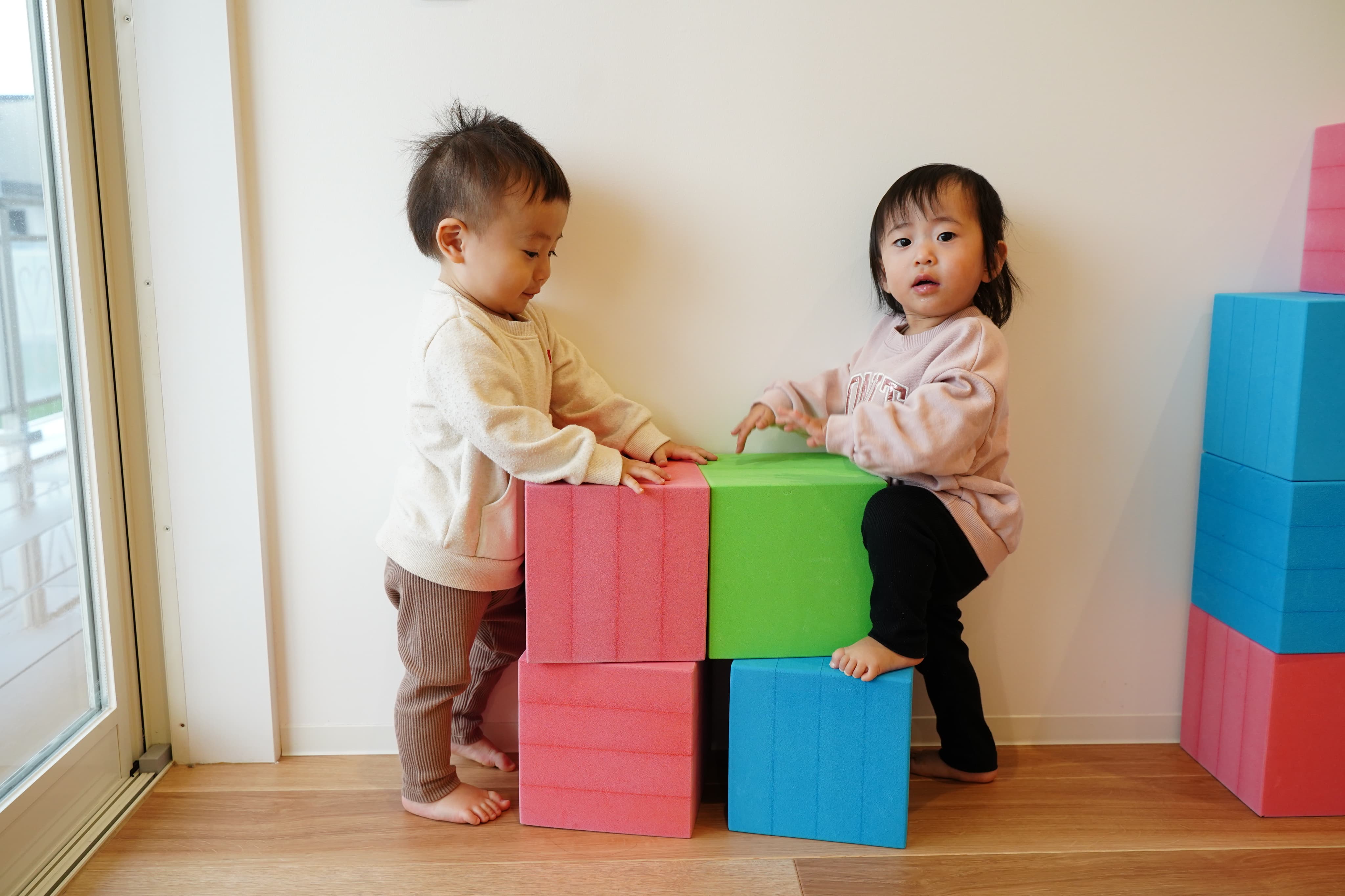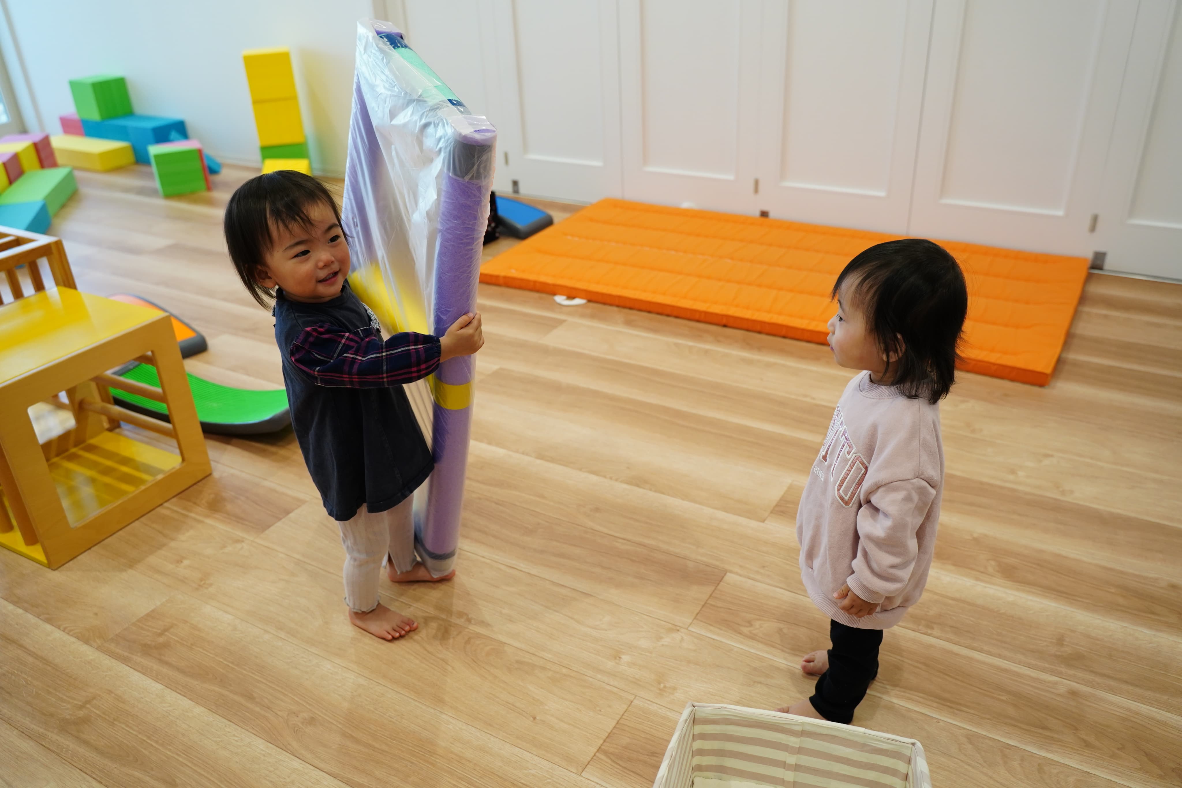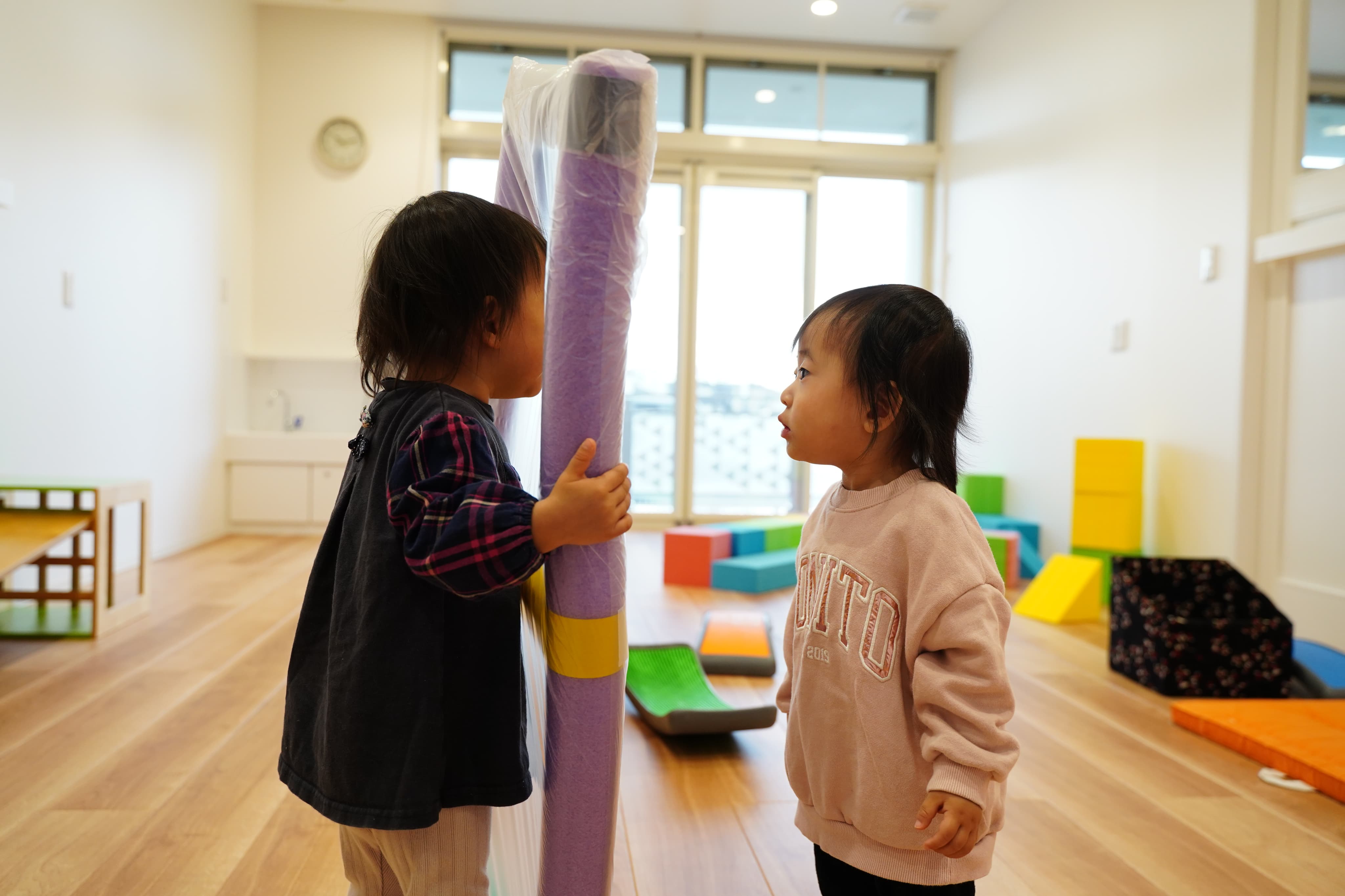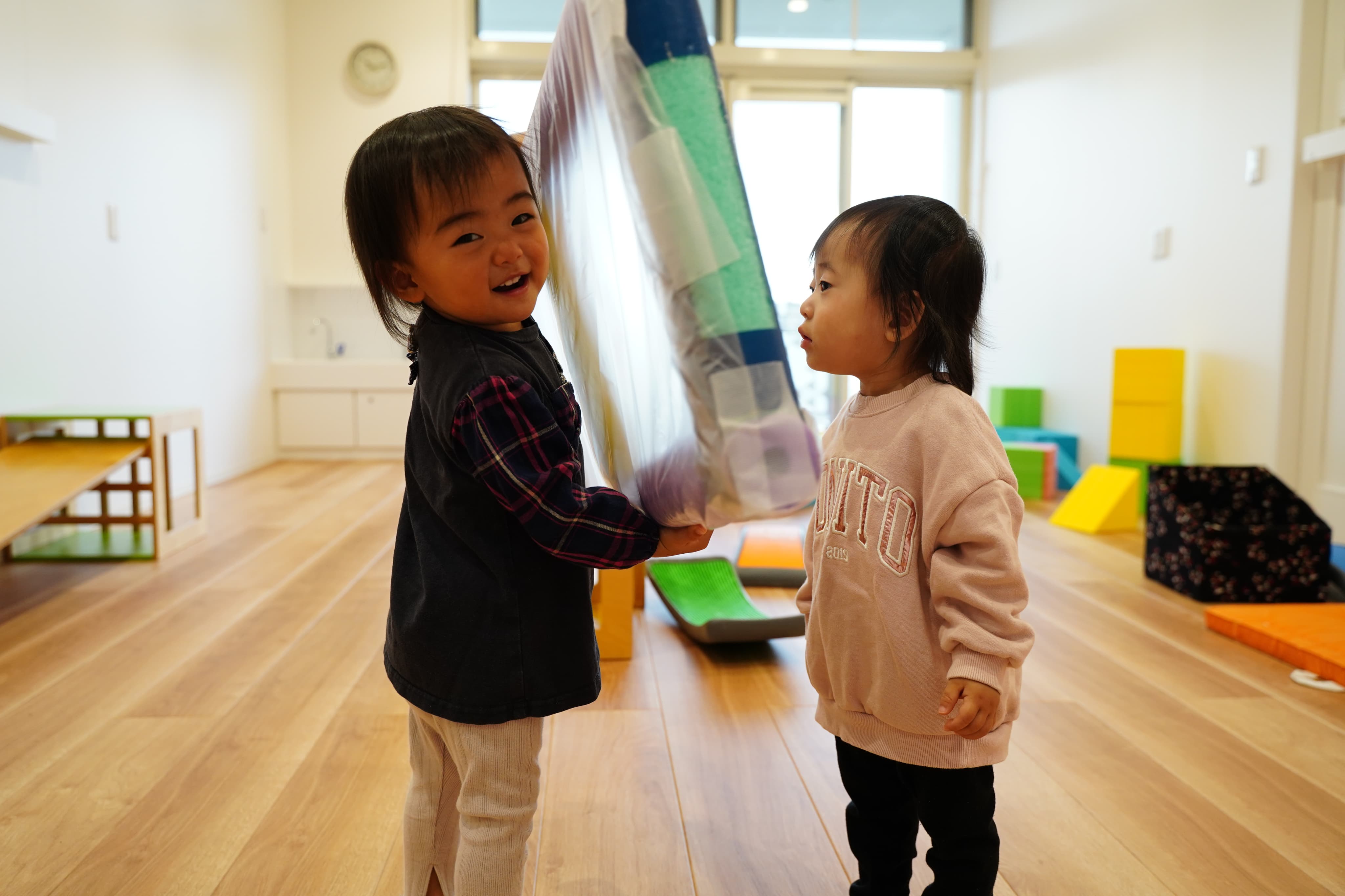 プレイルームに行くと、さっそくバランスボードでゆらゆら〜😆いつの間にか、どの子も1人で立てるようになっていました!✨