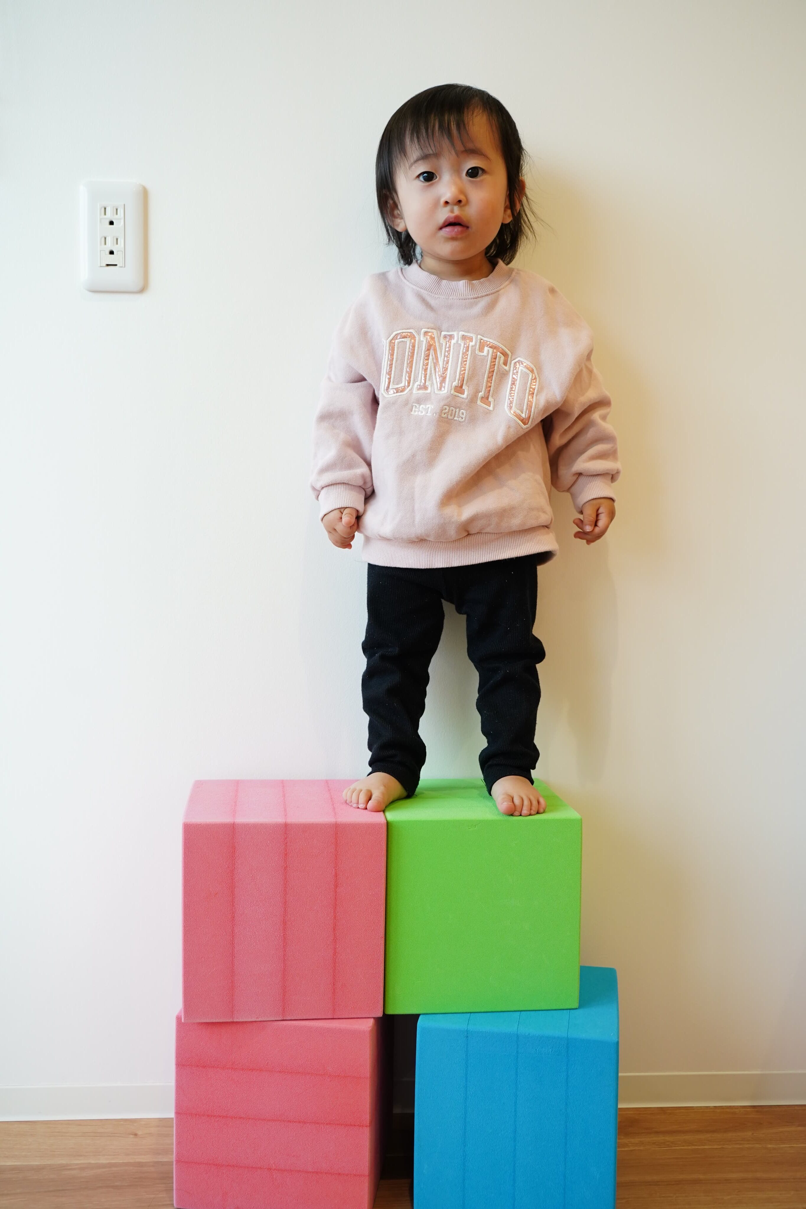 高いところに立つと、「ジャンプ!ジャンプ!」と跳びたい気持ちはバッチリな子どもたち😆