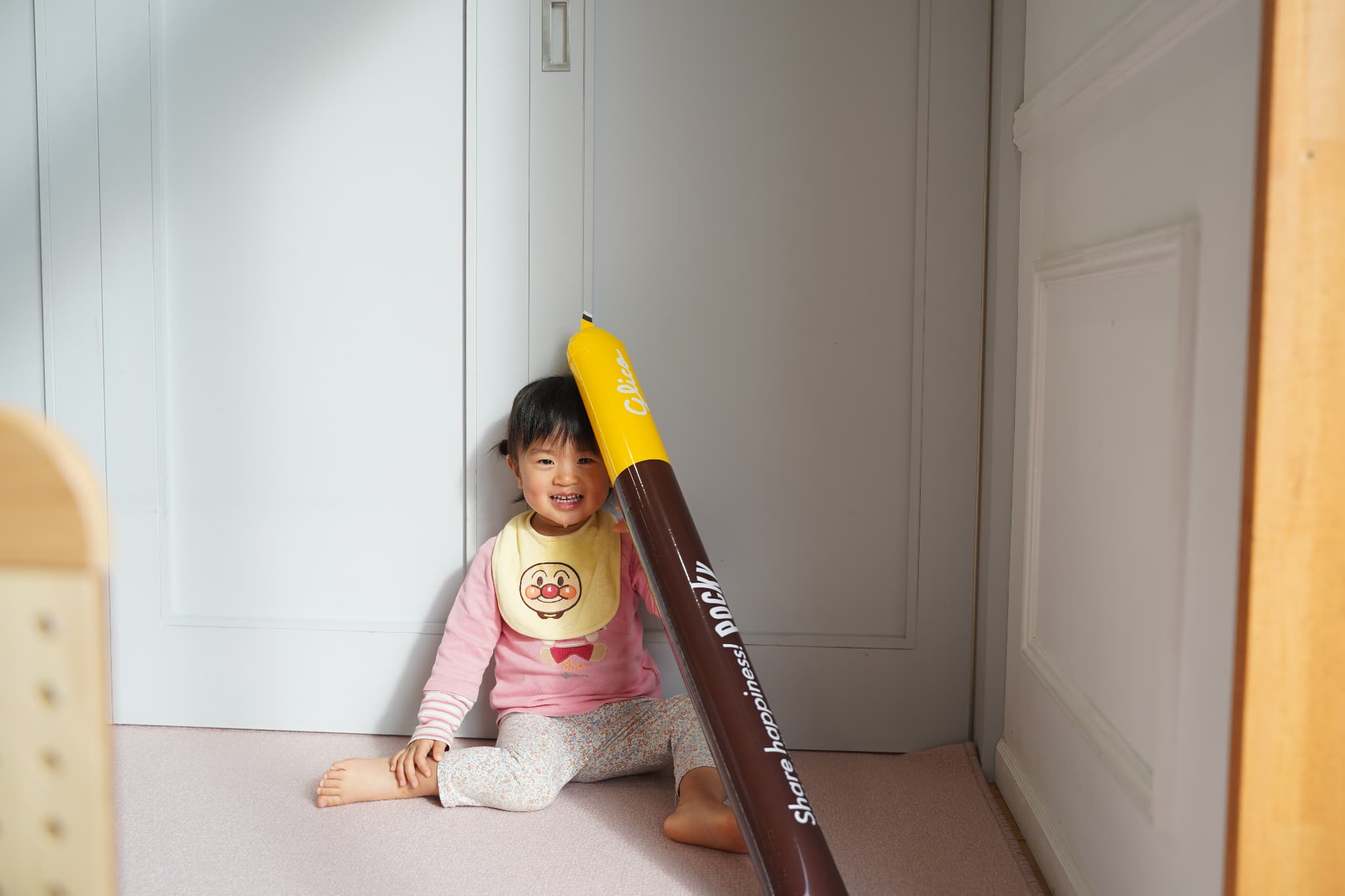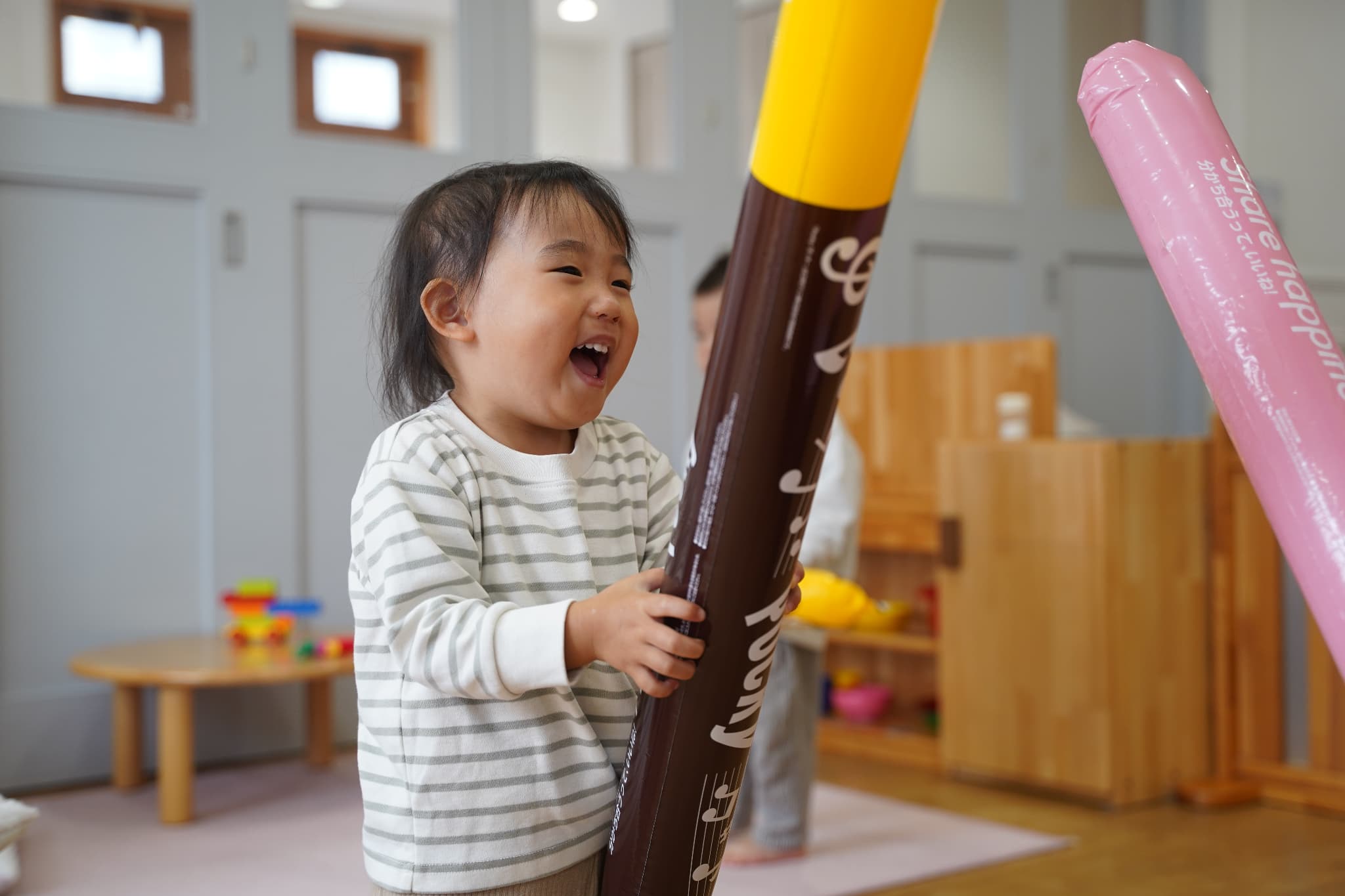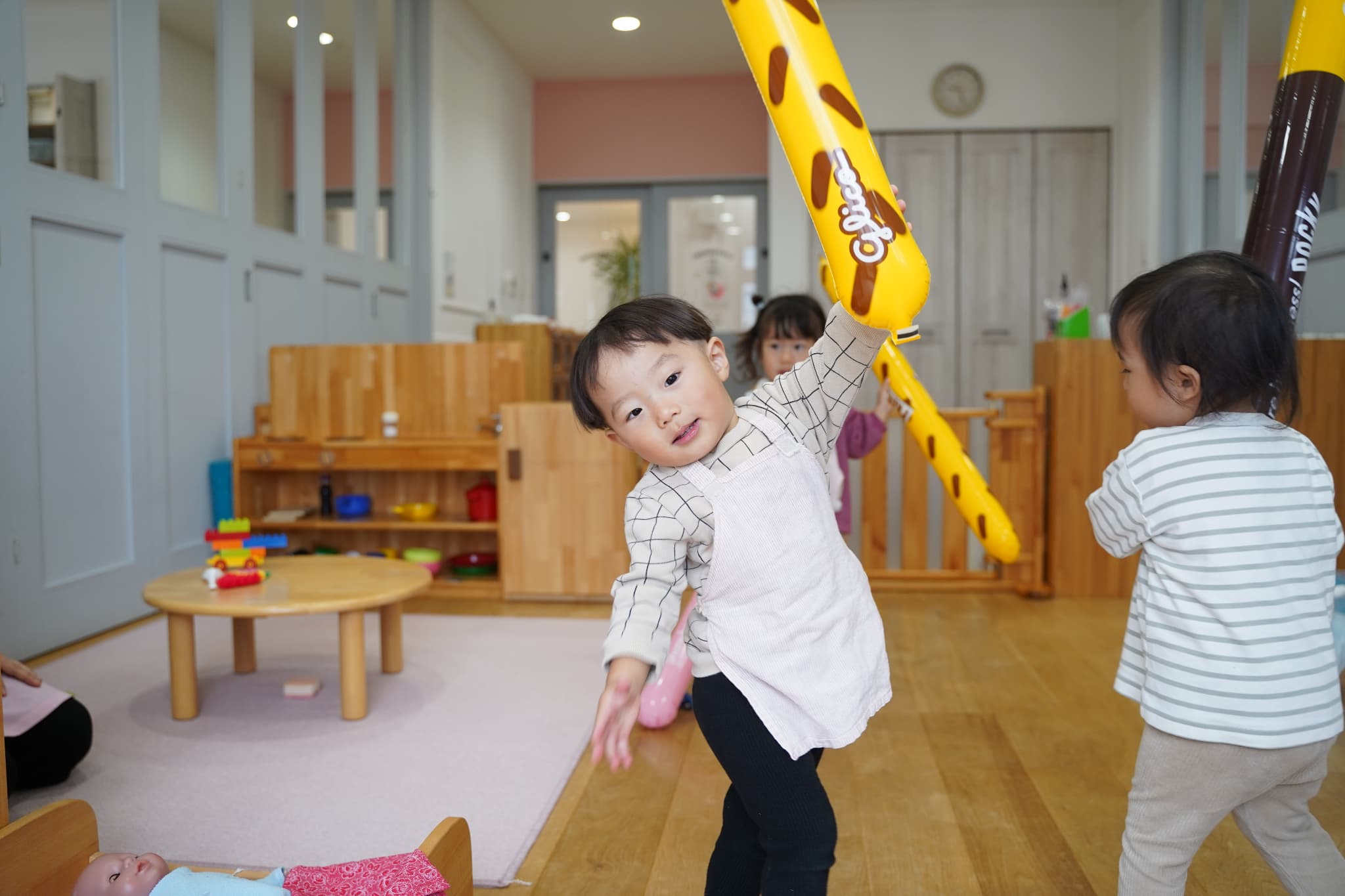 大きなポッキー風船の後ろに隠れたり出たりして遊んでいました☺️