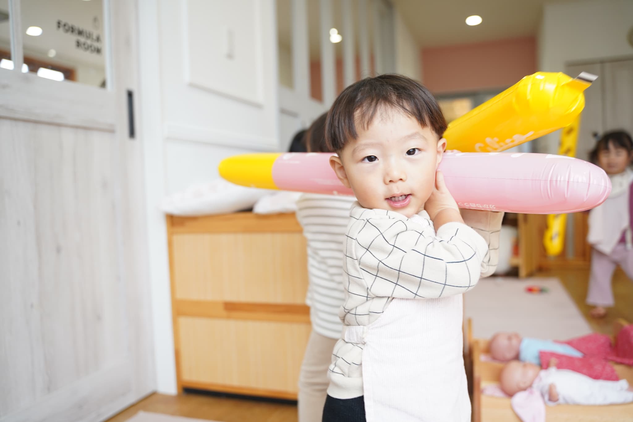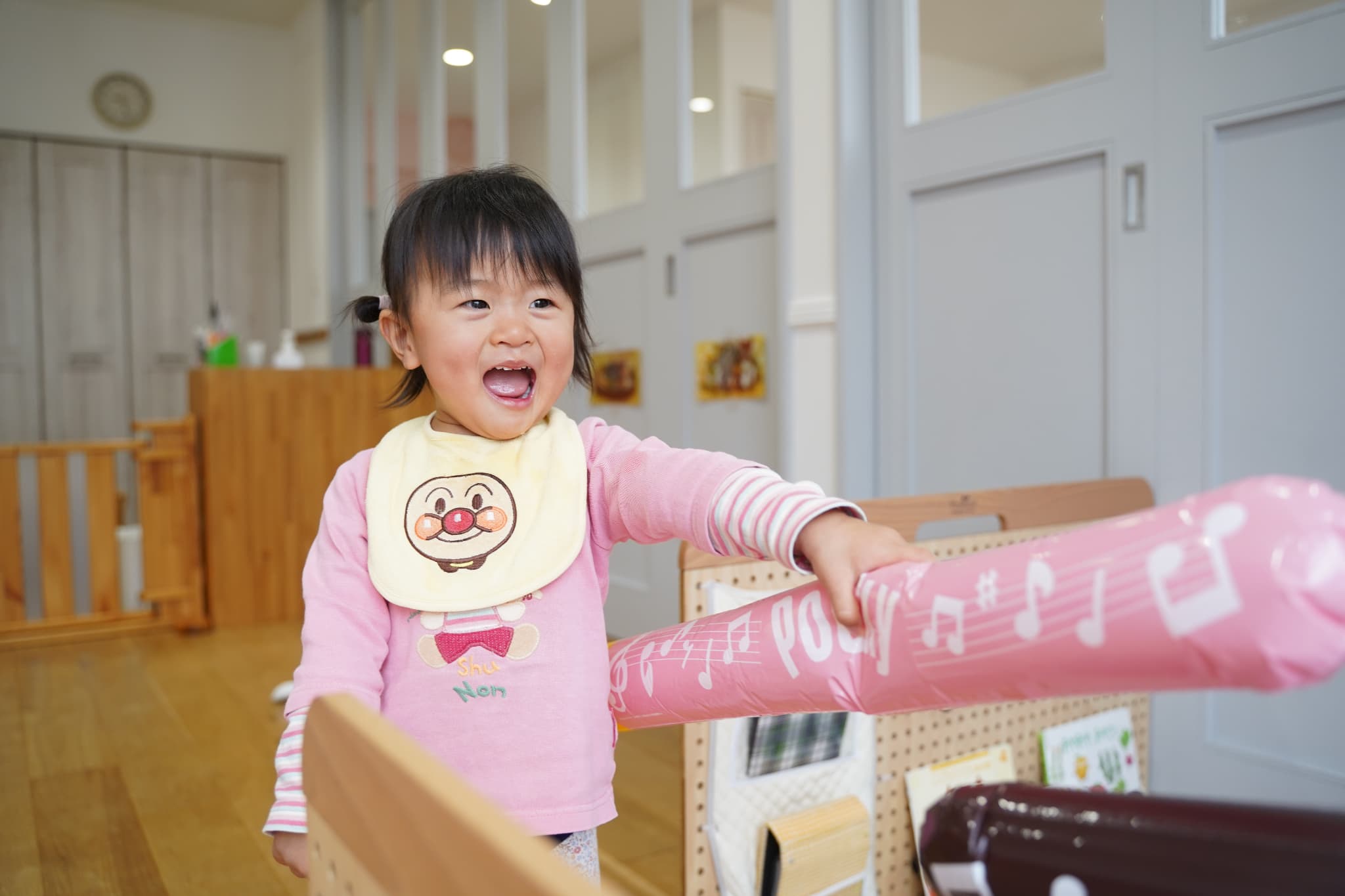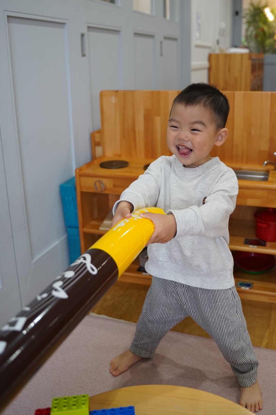 大きなポッキー風船の後ろに隠れたり出たりして遊んでいました☺️