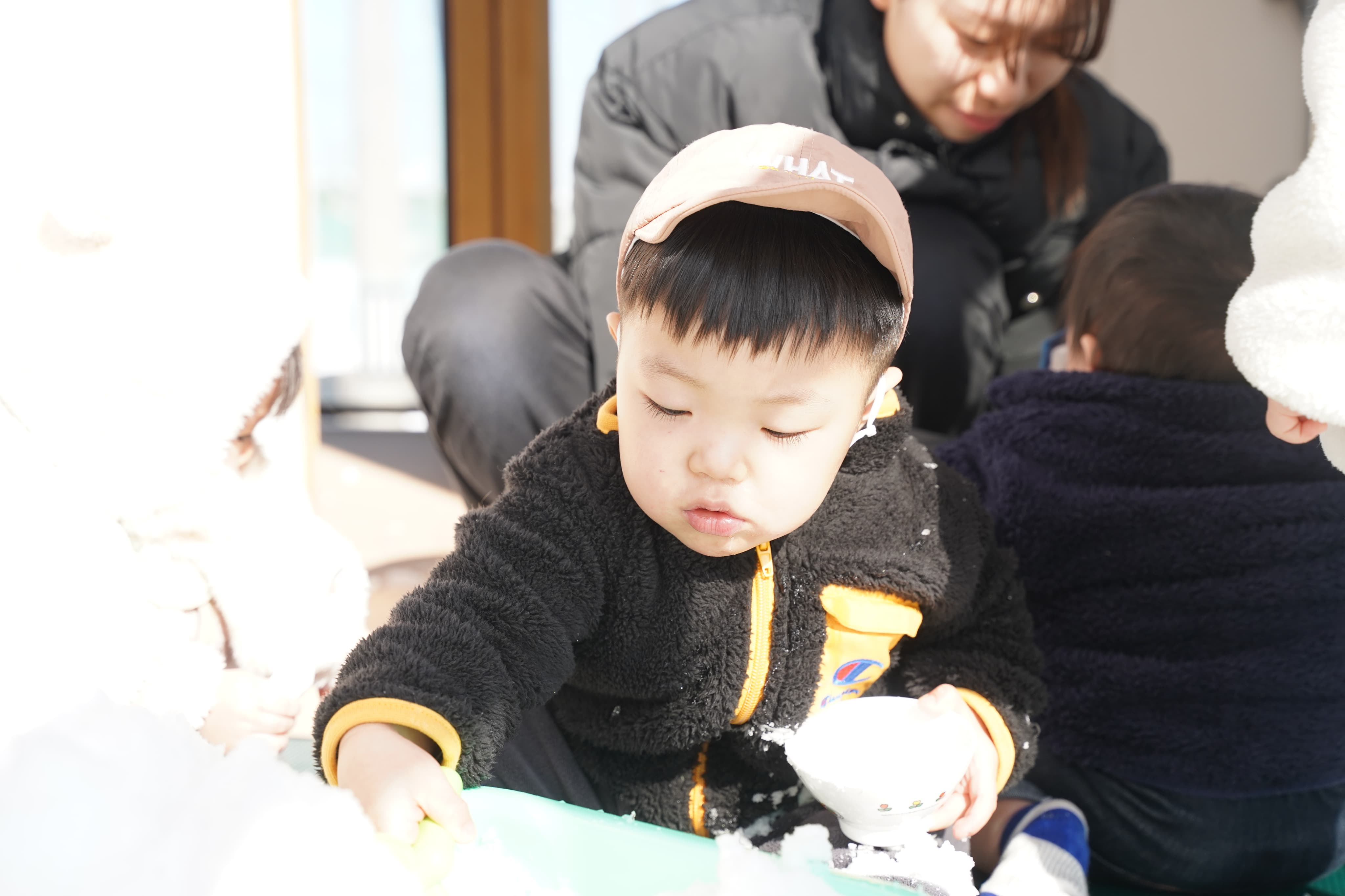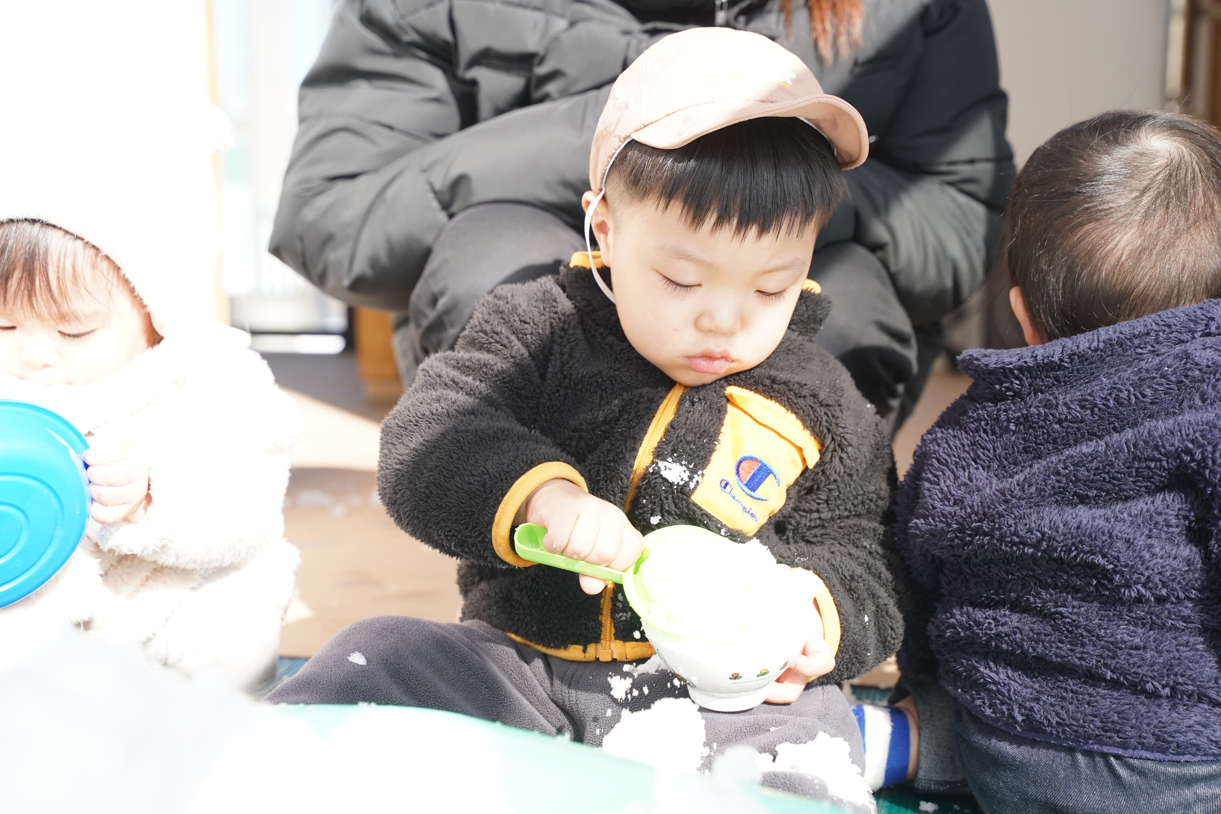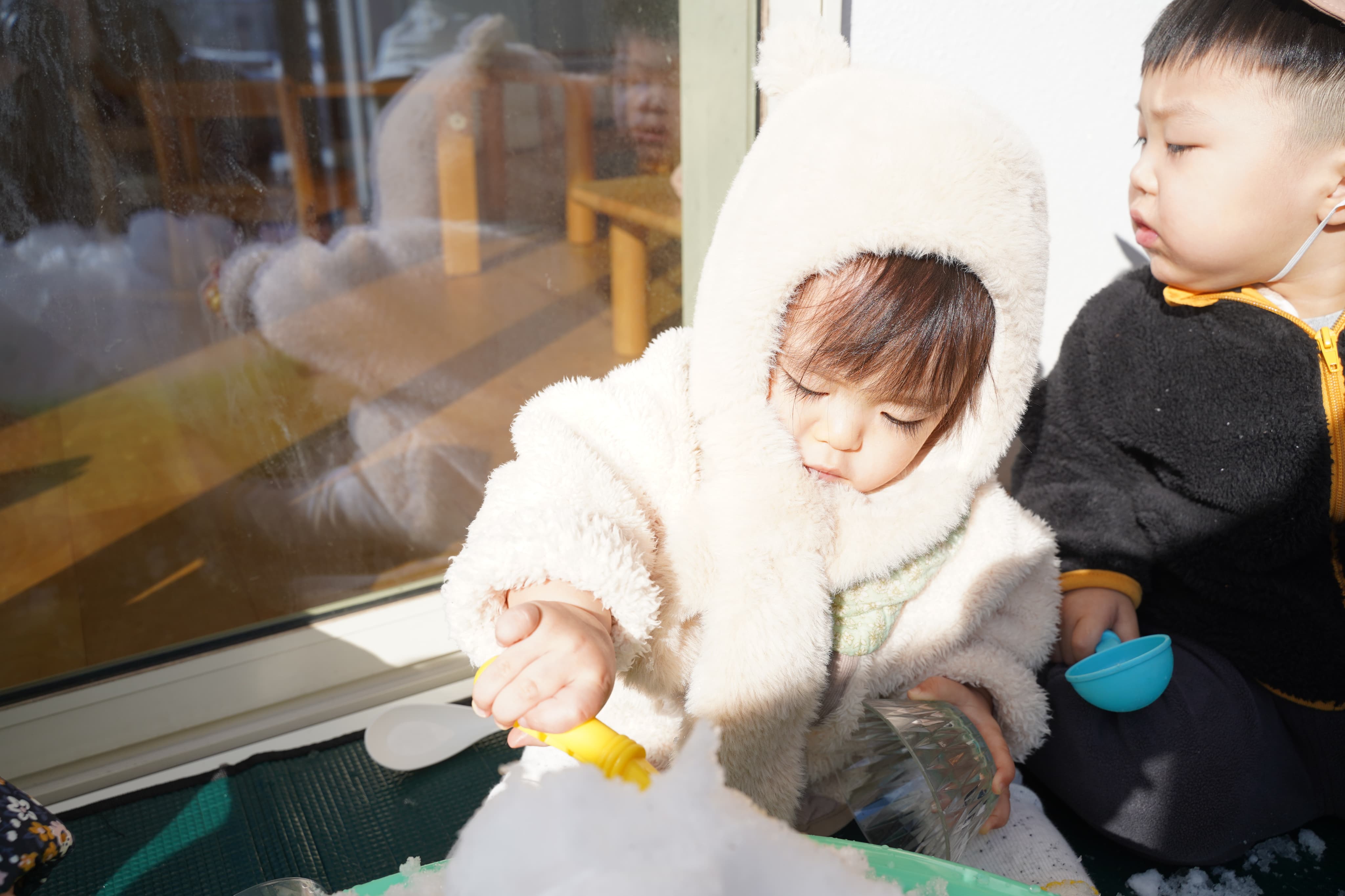 雪のある生活に慣れてきたのか積極的に雪で遊ぶいちご組さん!