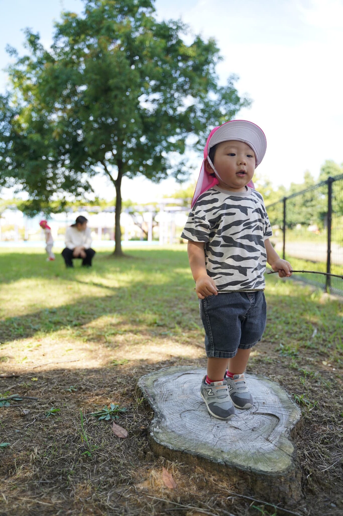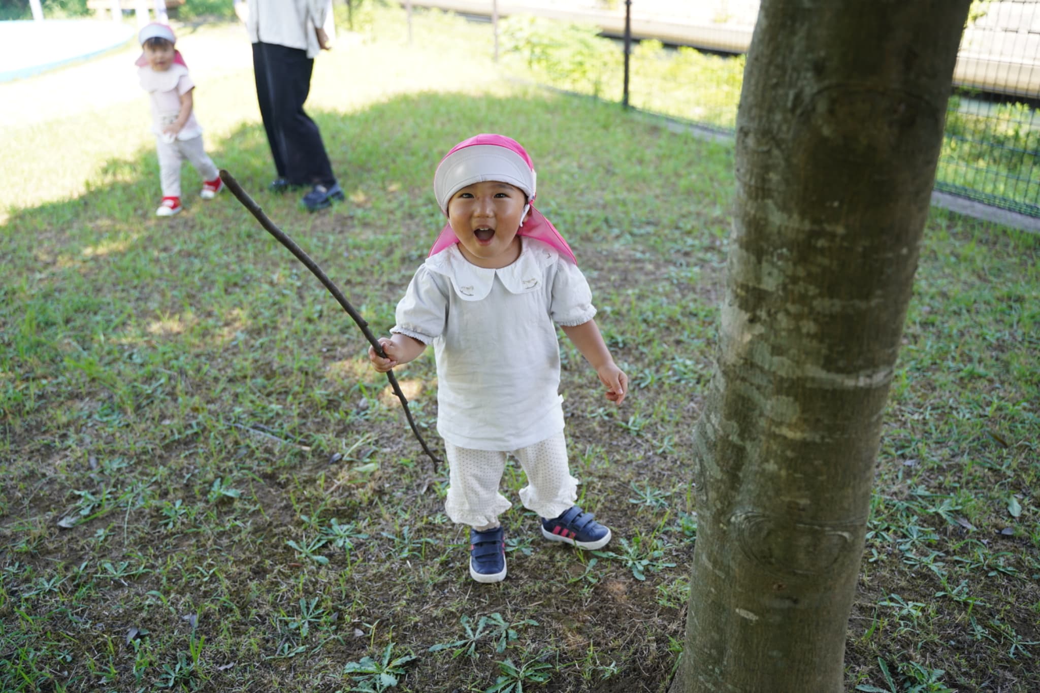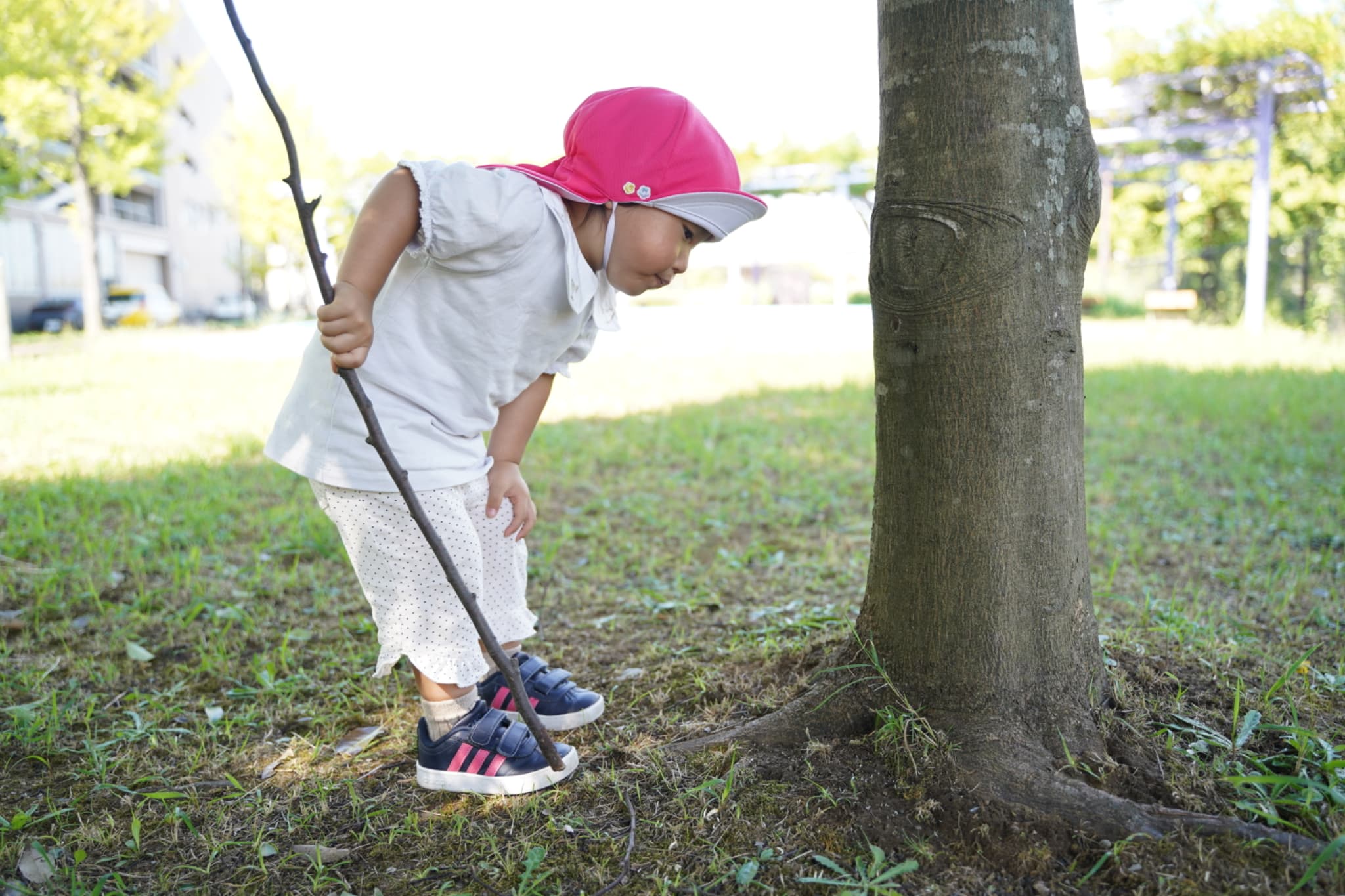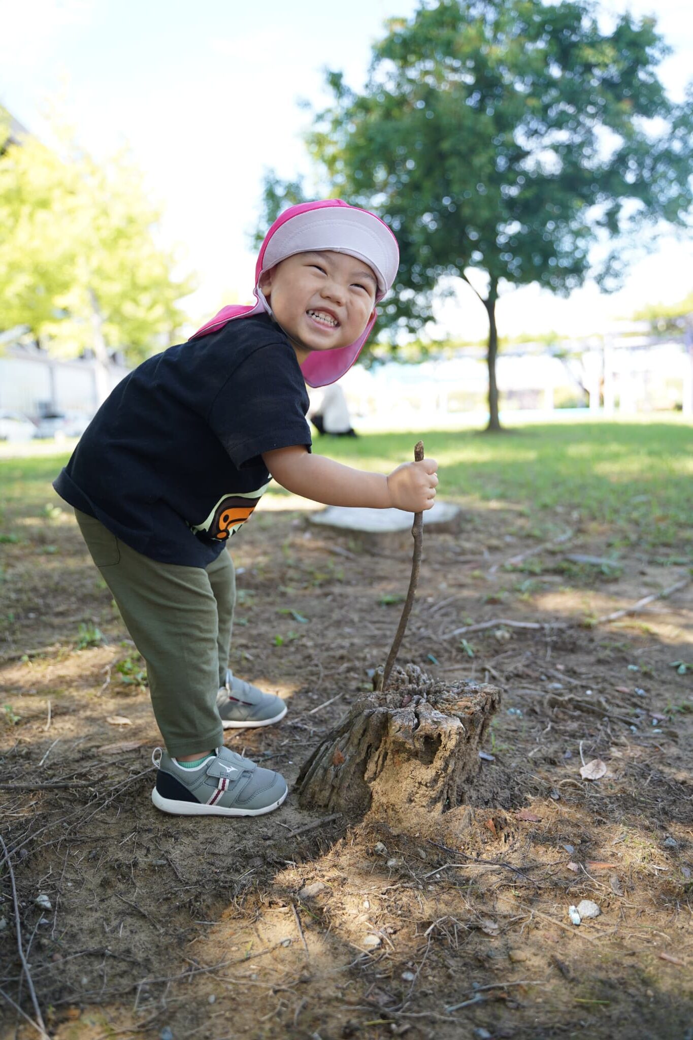 木の棒を持って根元をじーっと観察中👀