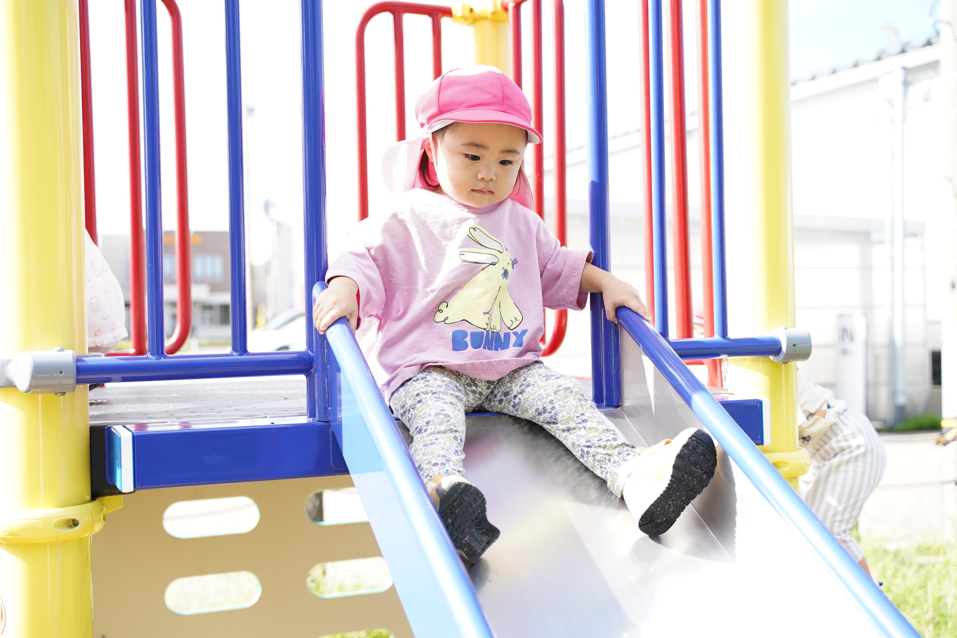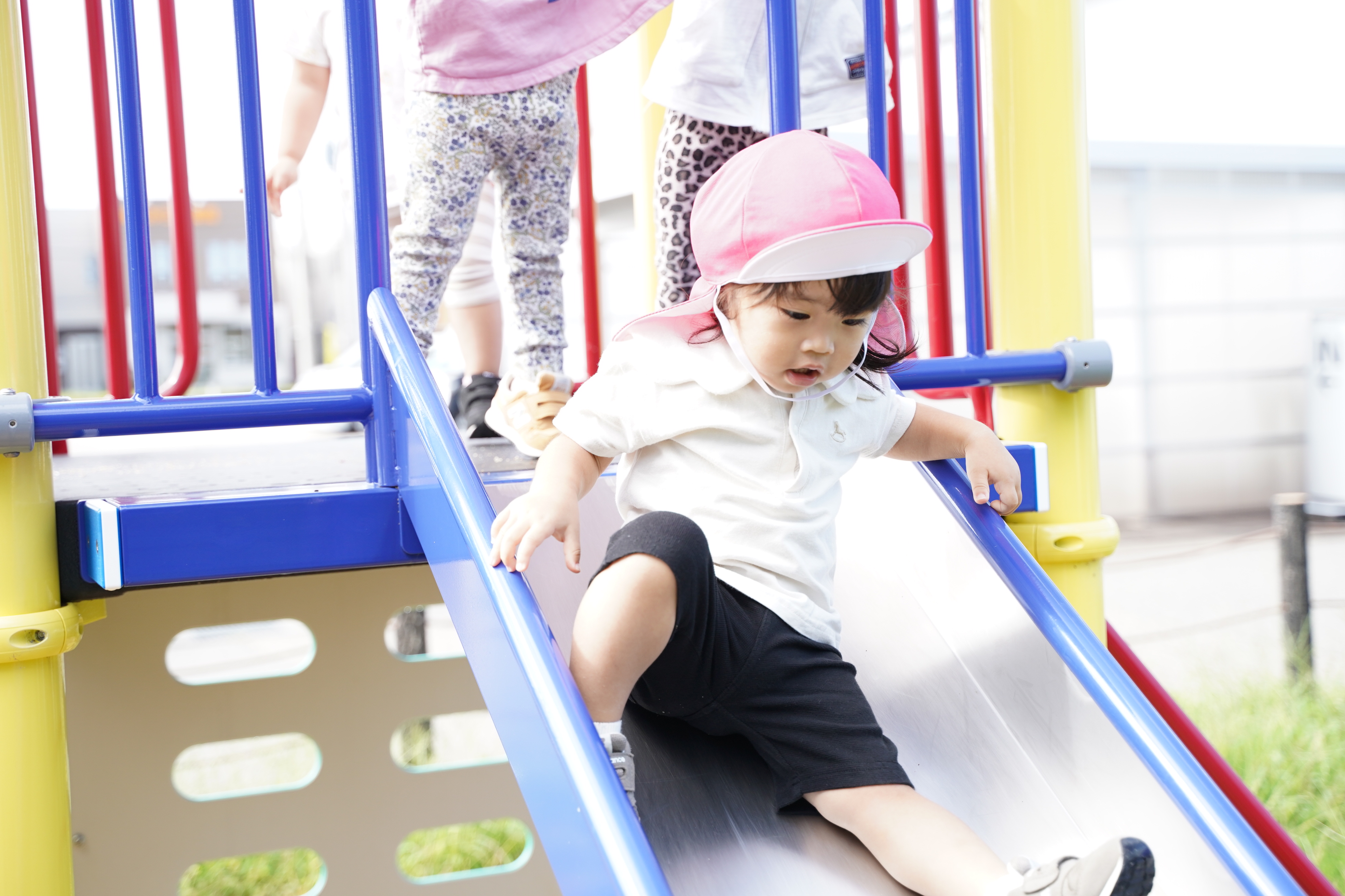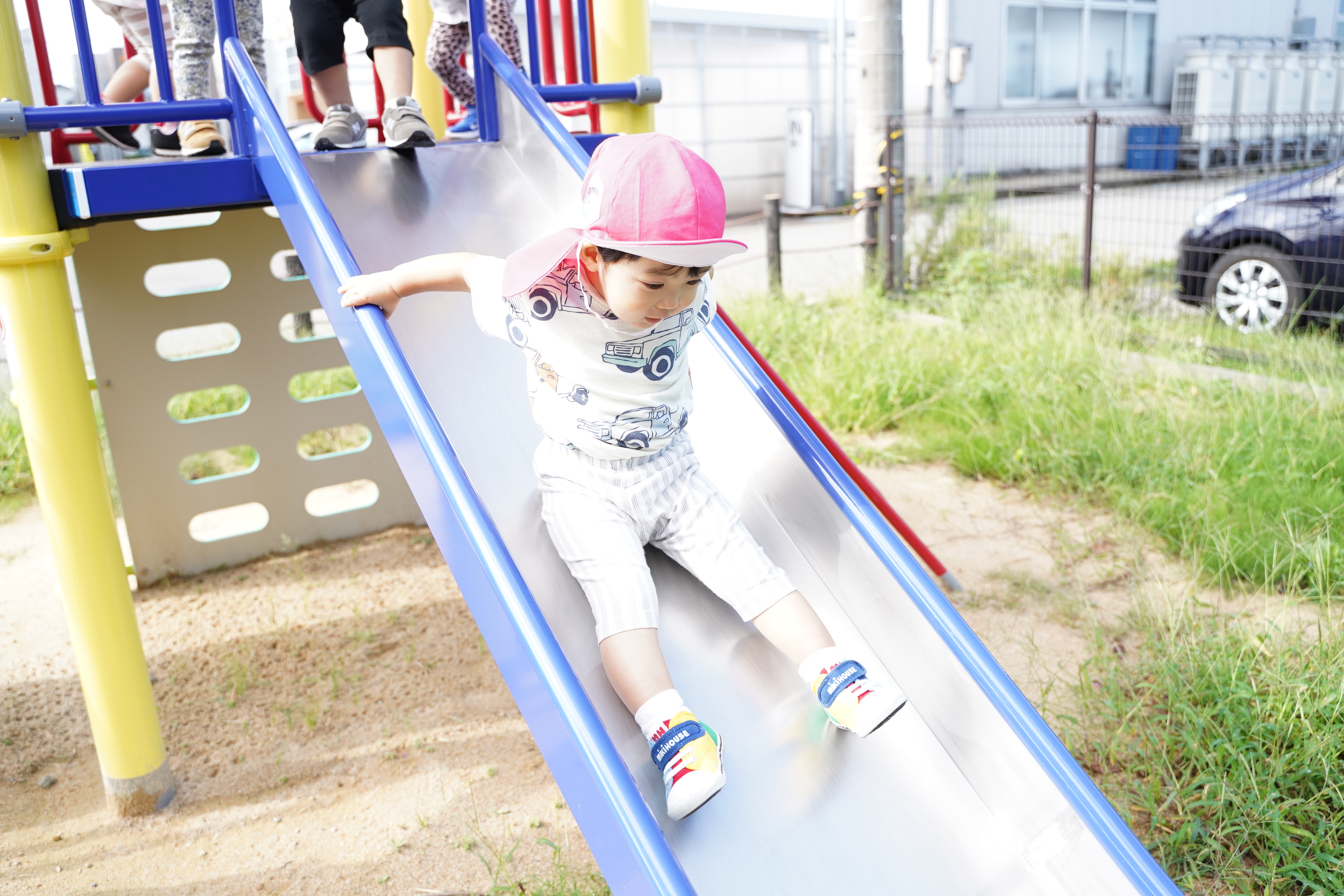 皆んな大好きな滑り台を見て!次から次へと滑ります♬