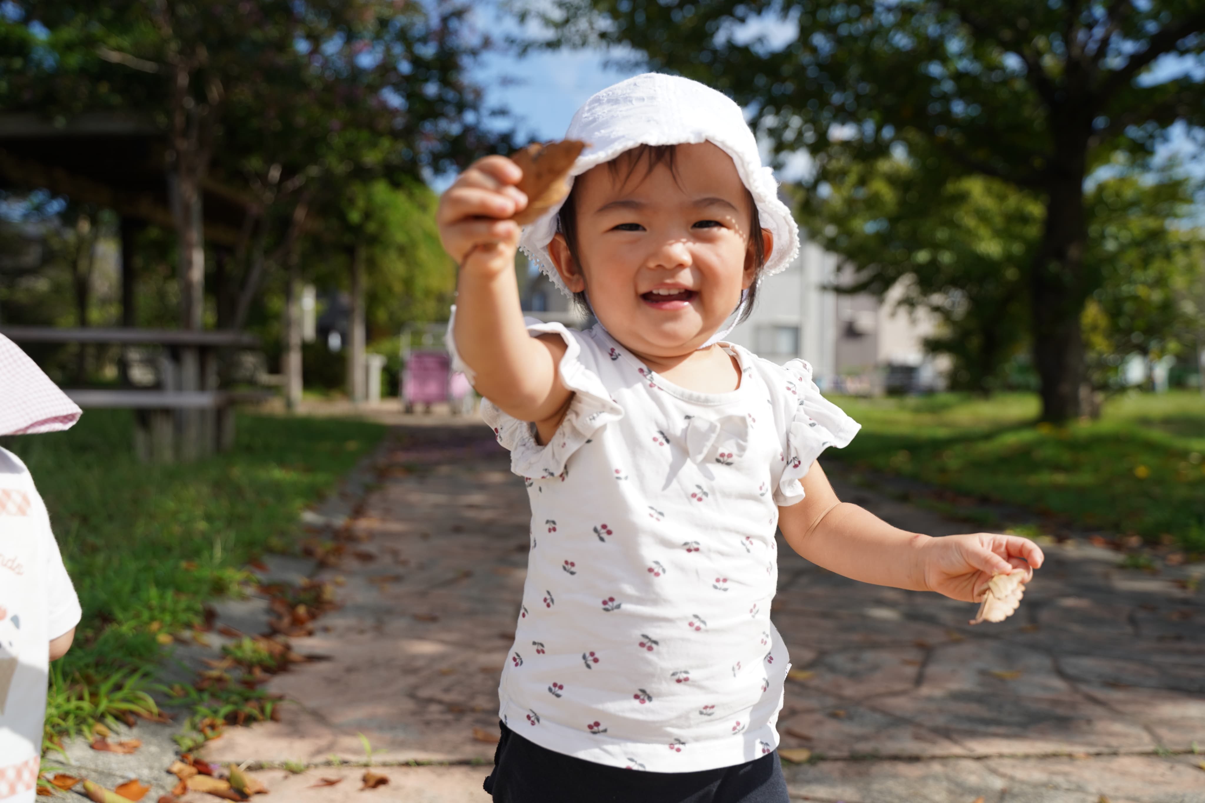 落ち葉や草花、木の実もあちこちに落ちていて、嬉しそうに持っては公園内を散策するいちご組さん♪