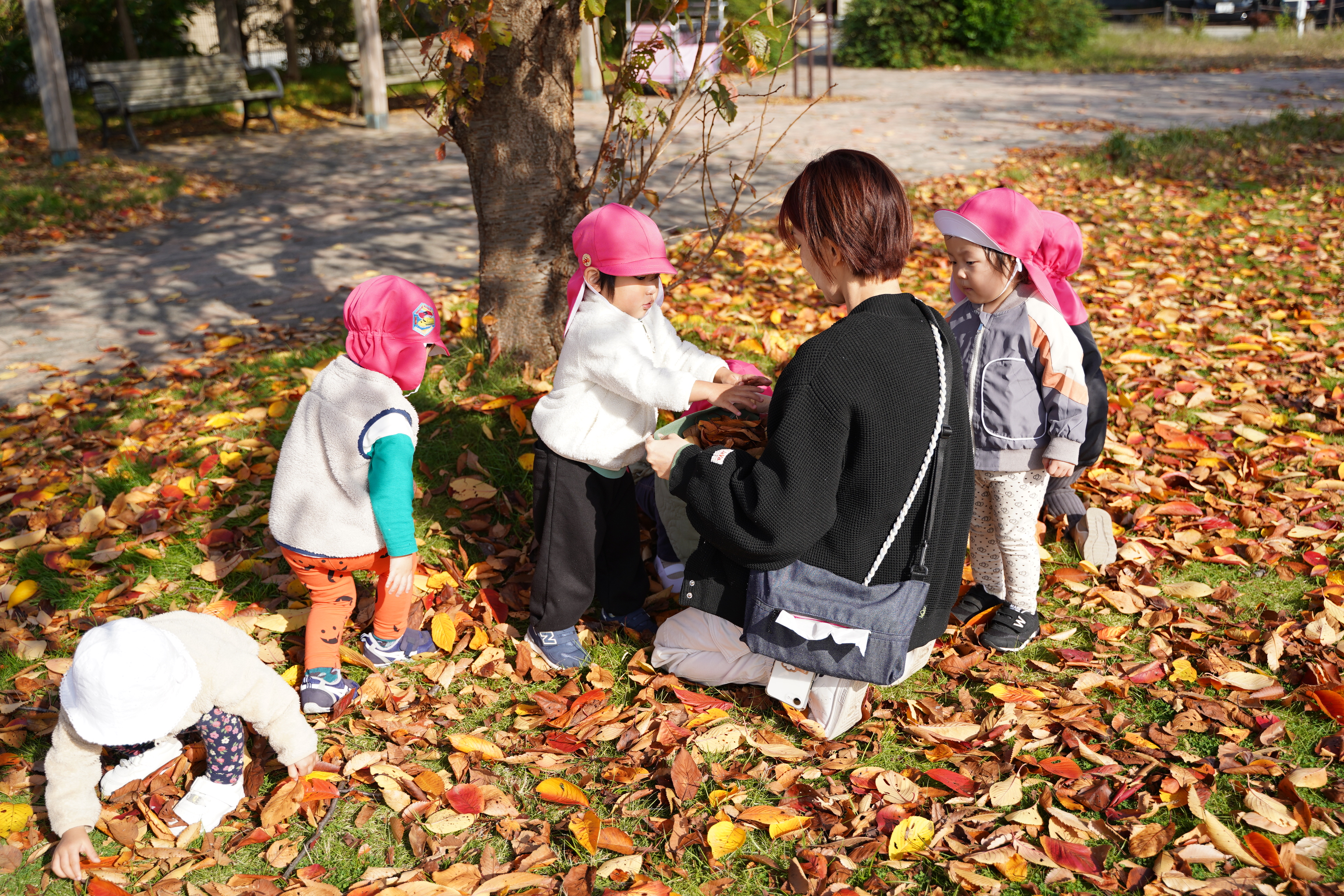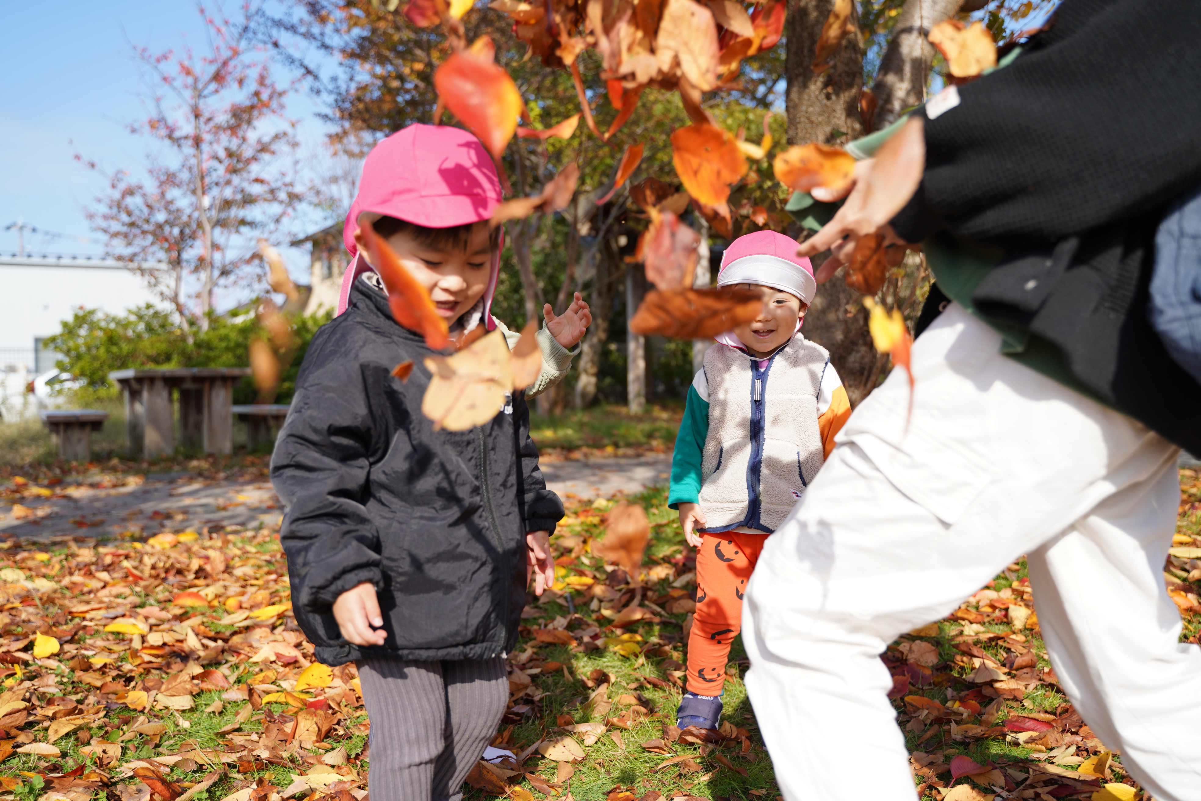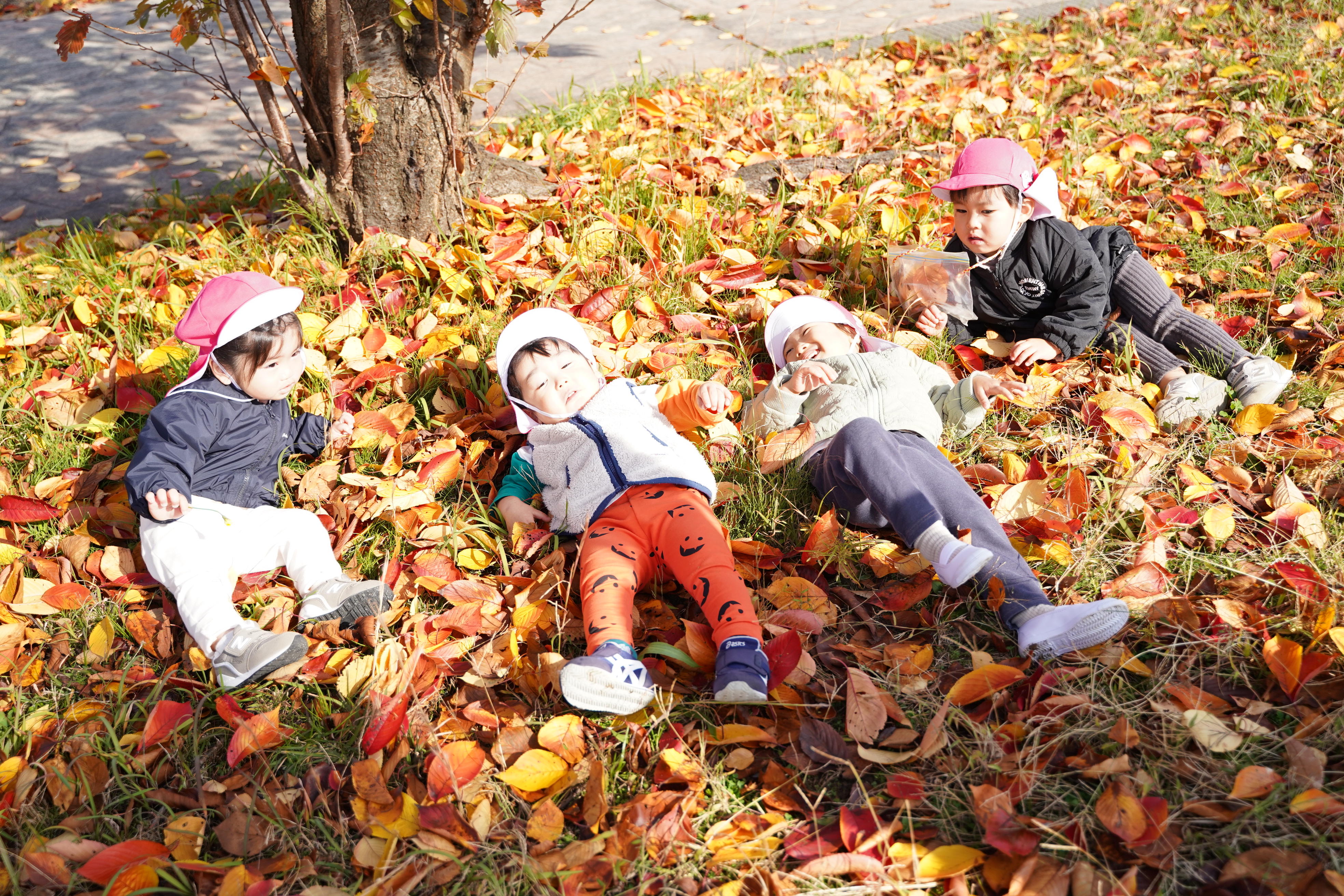 落ち葉がたくさん落ちていて・・・みんなでいろんな遊びも❣️