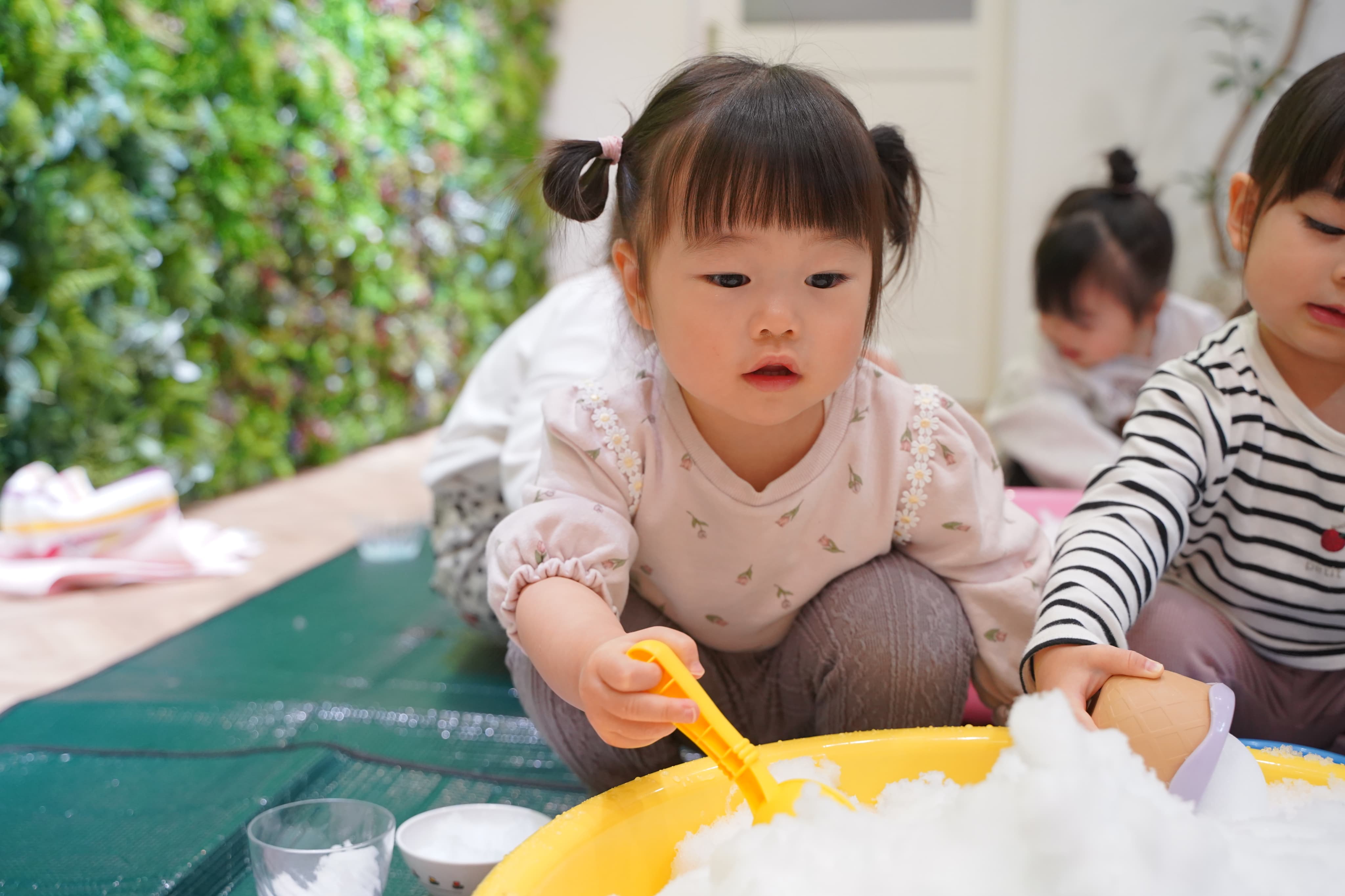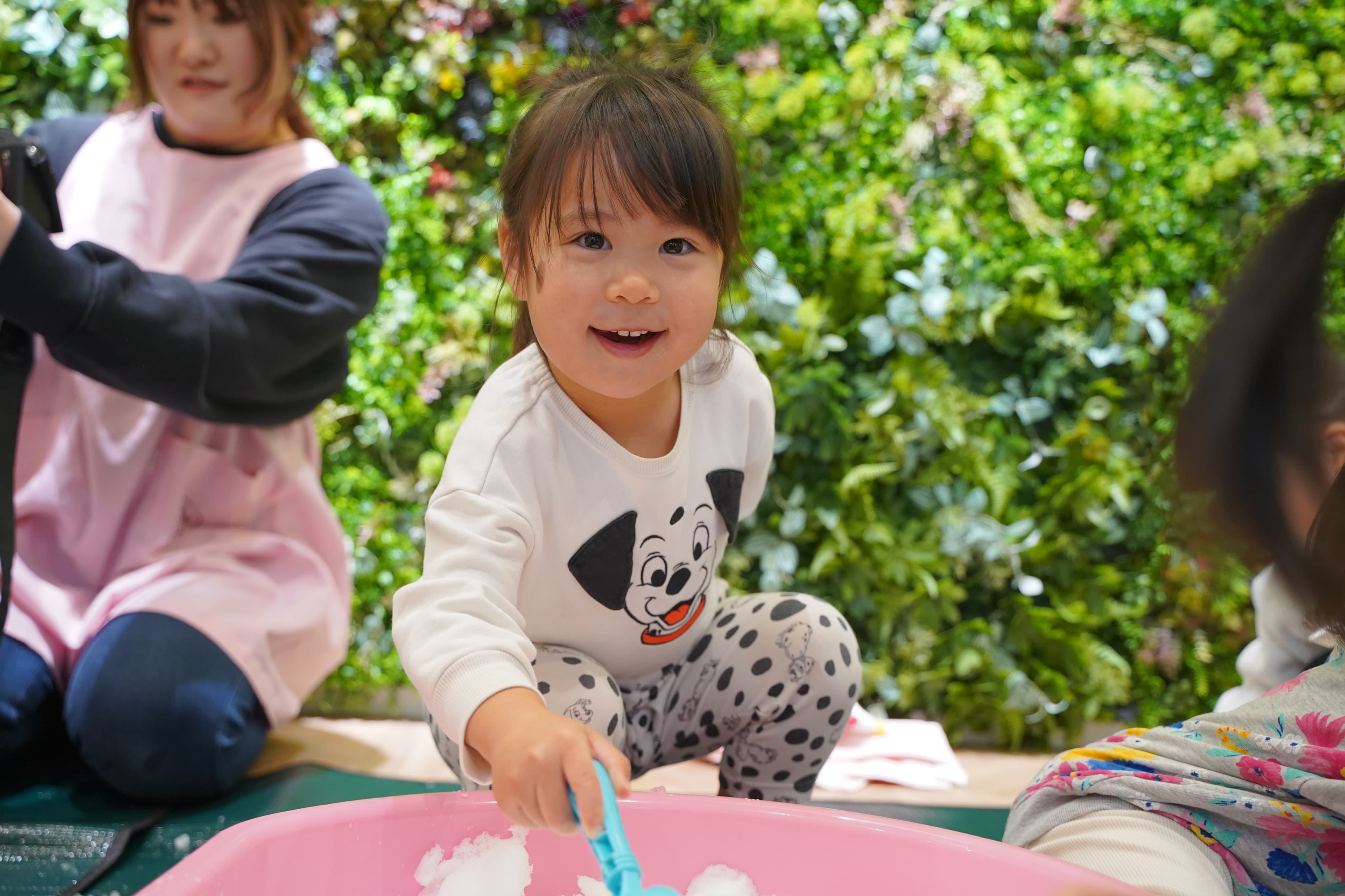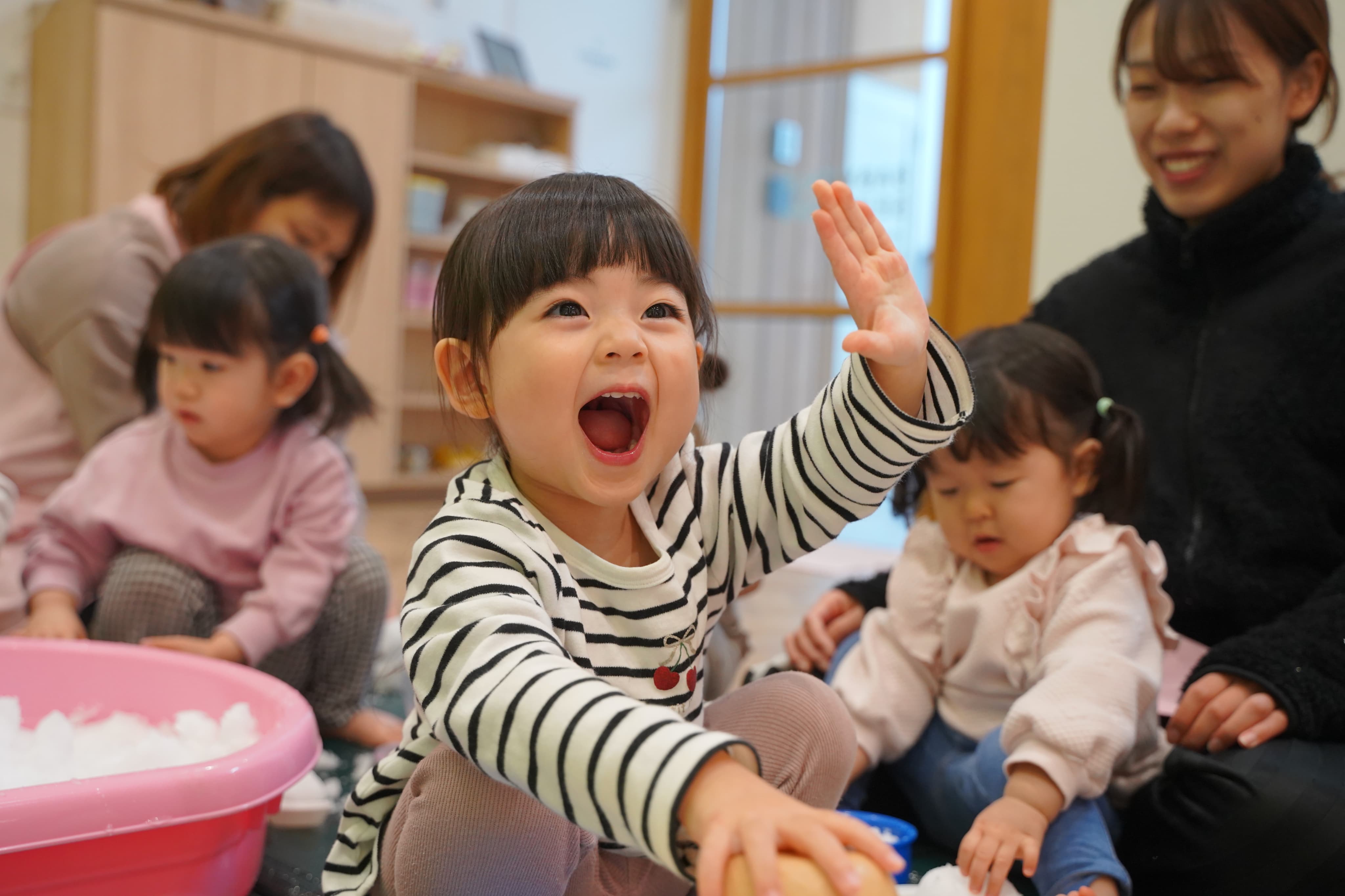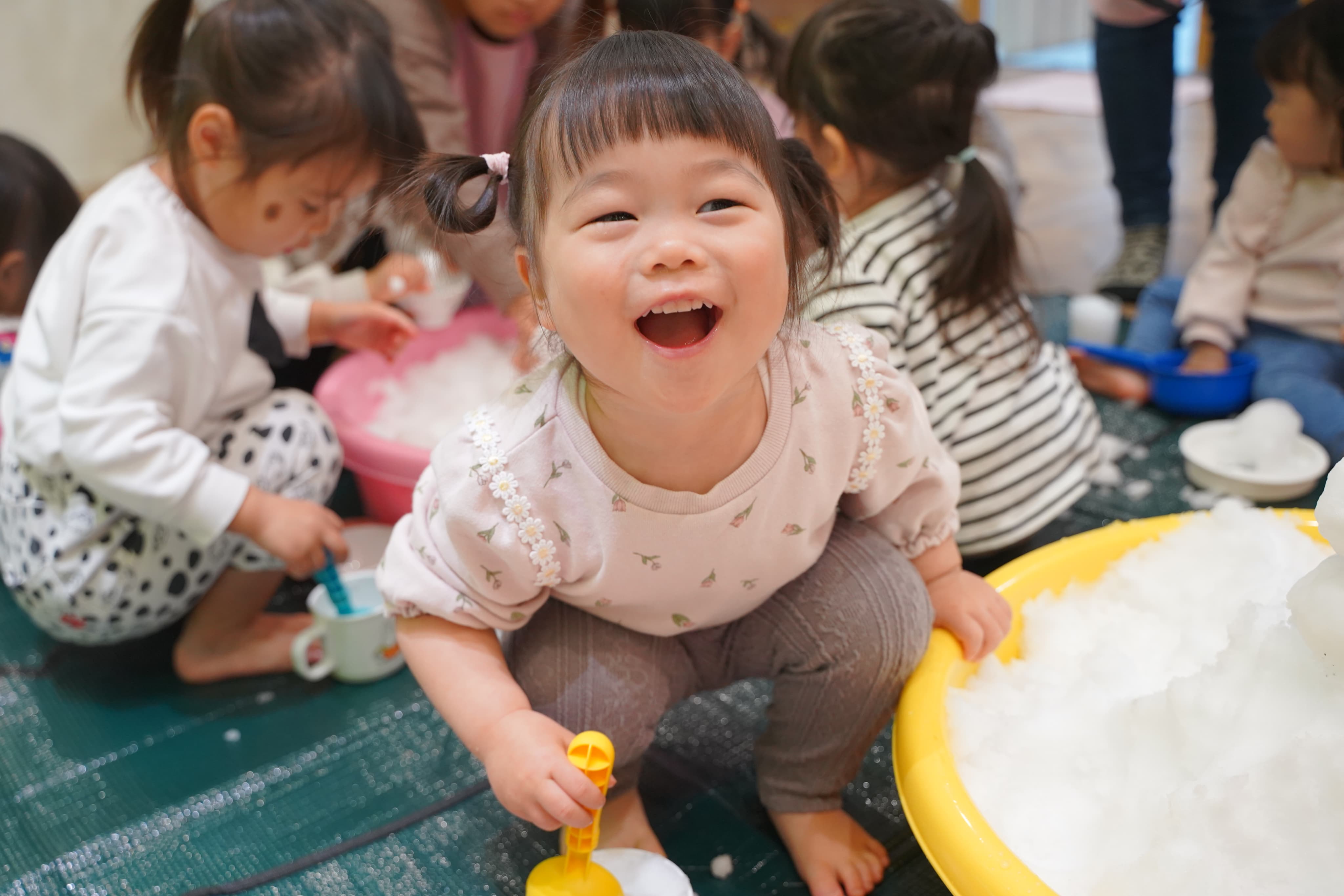「雪あったよ〜」「雪遊びする〜?」などと雪に興味津々の子どもたちだったので、