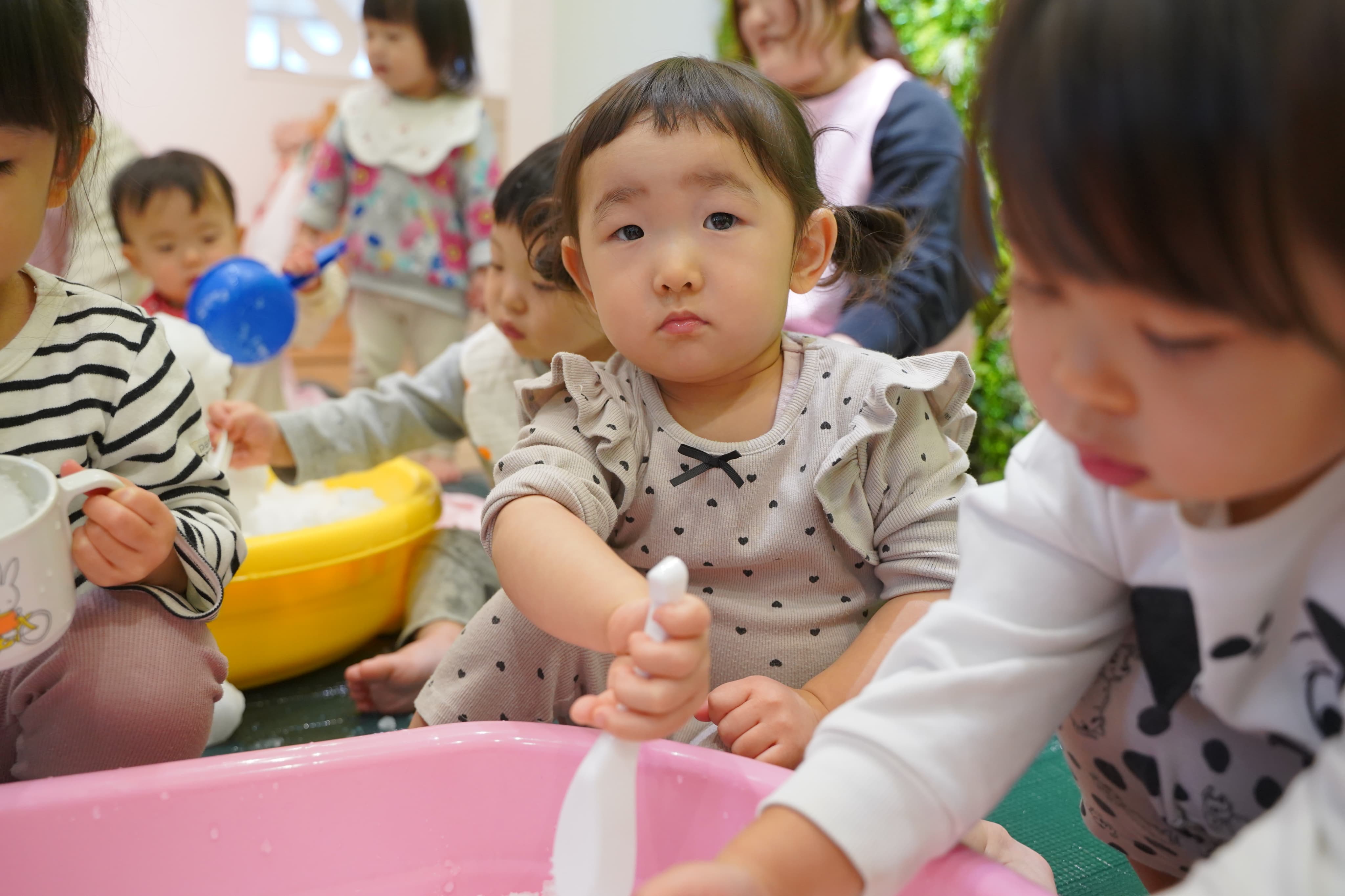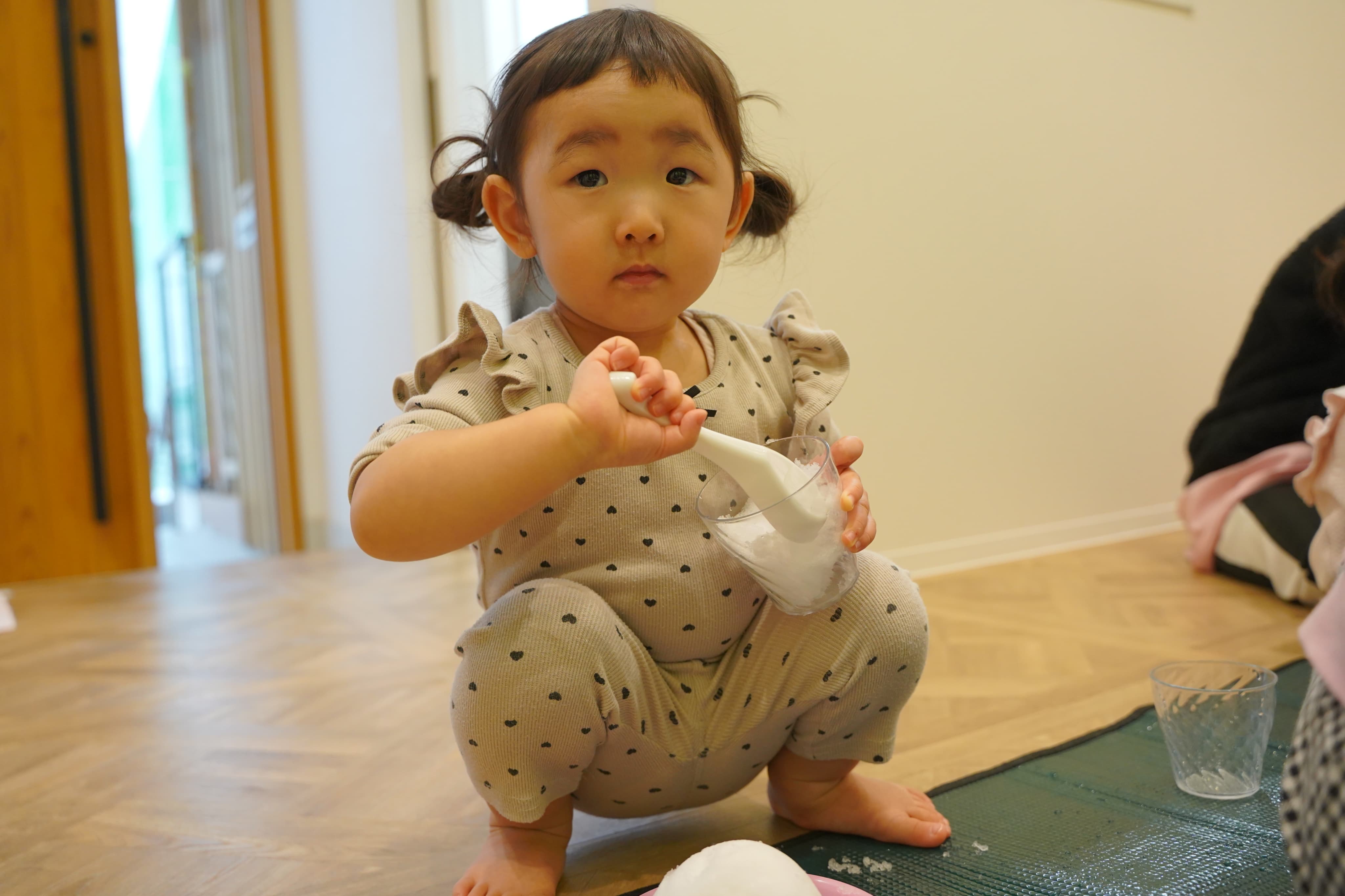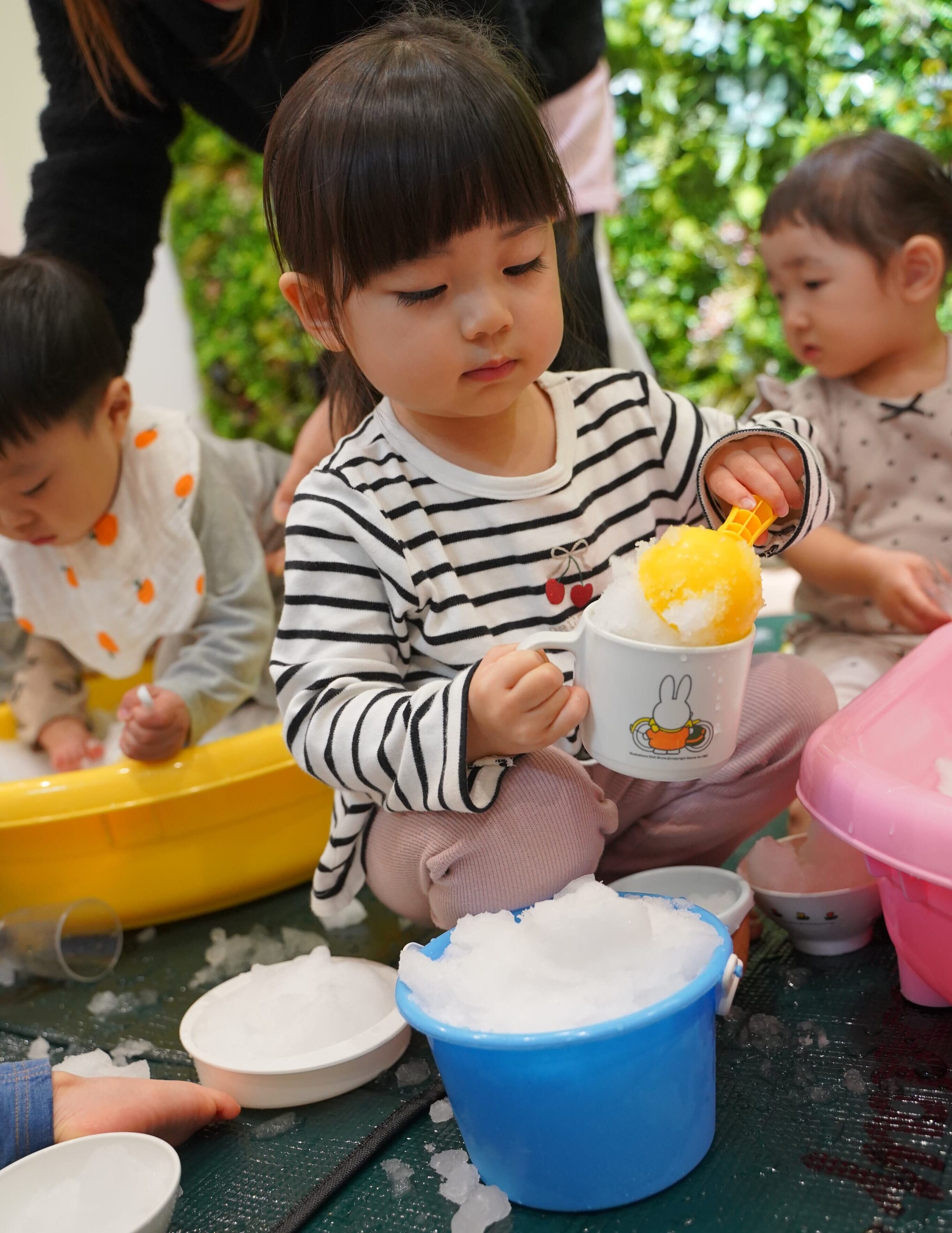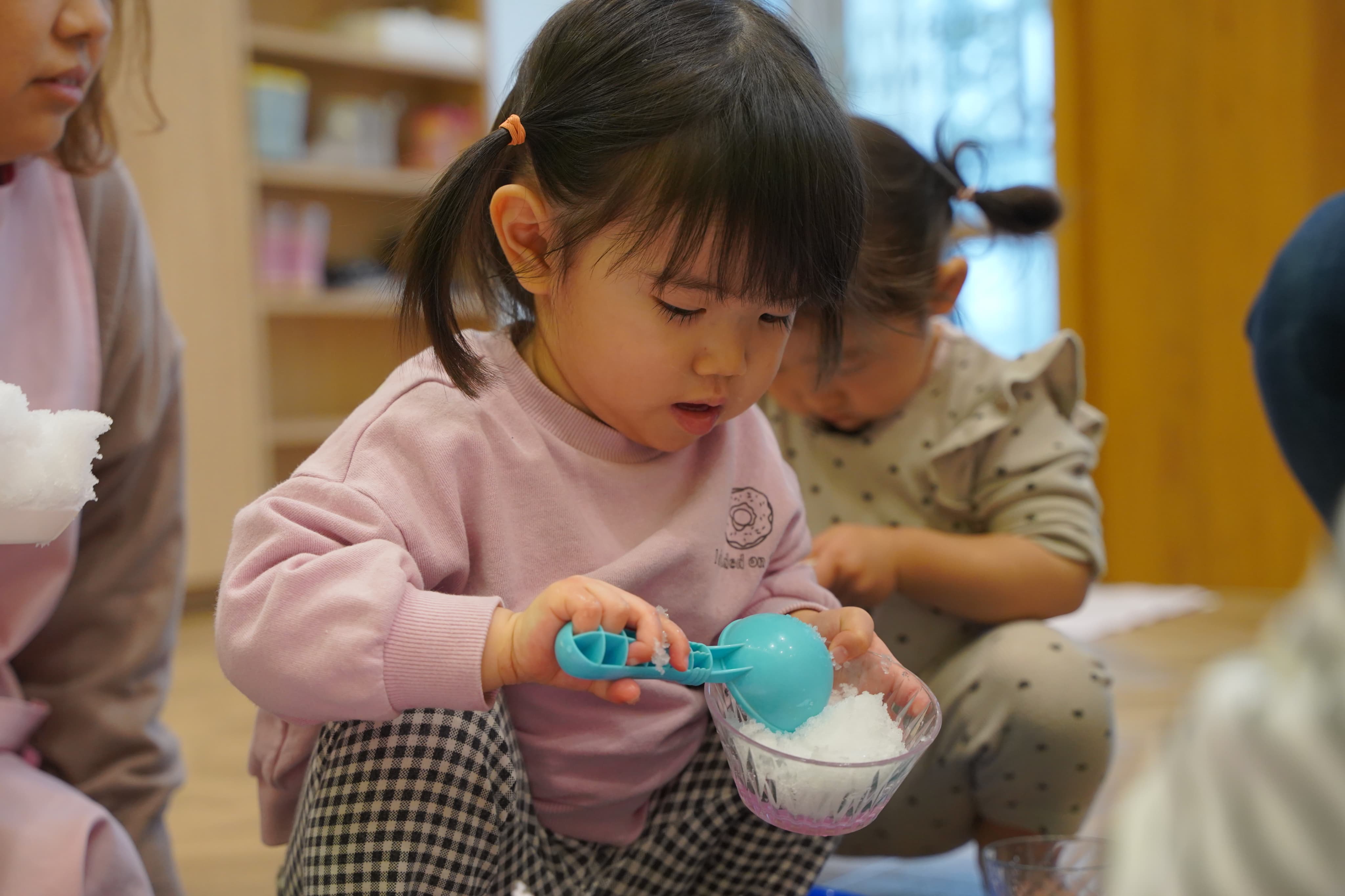 「雪あったよ〜」「雪遊びする〜?」などと雪に興味津々の子どもたちだったので、