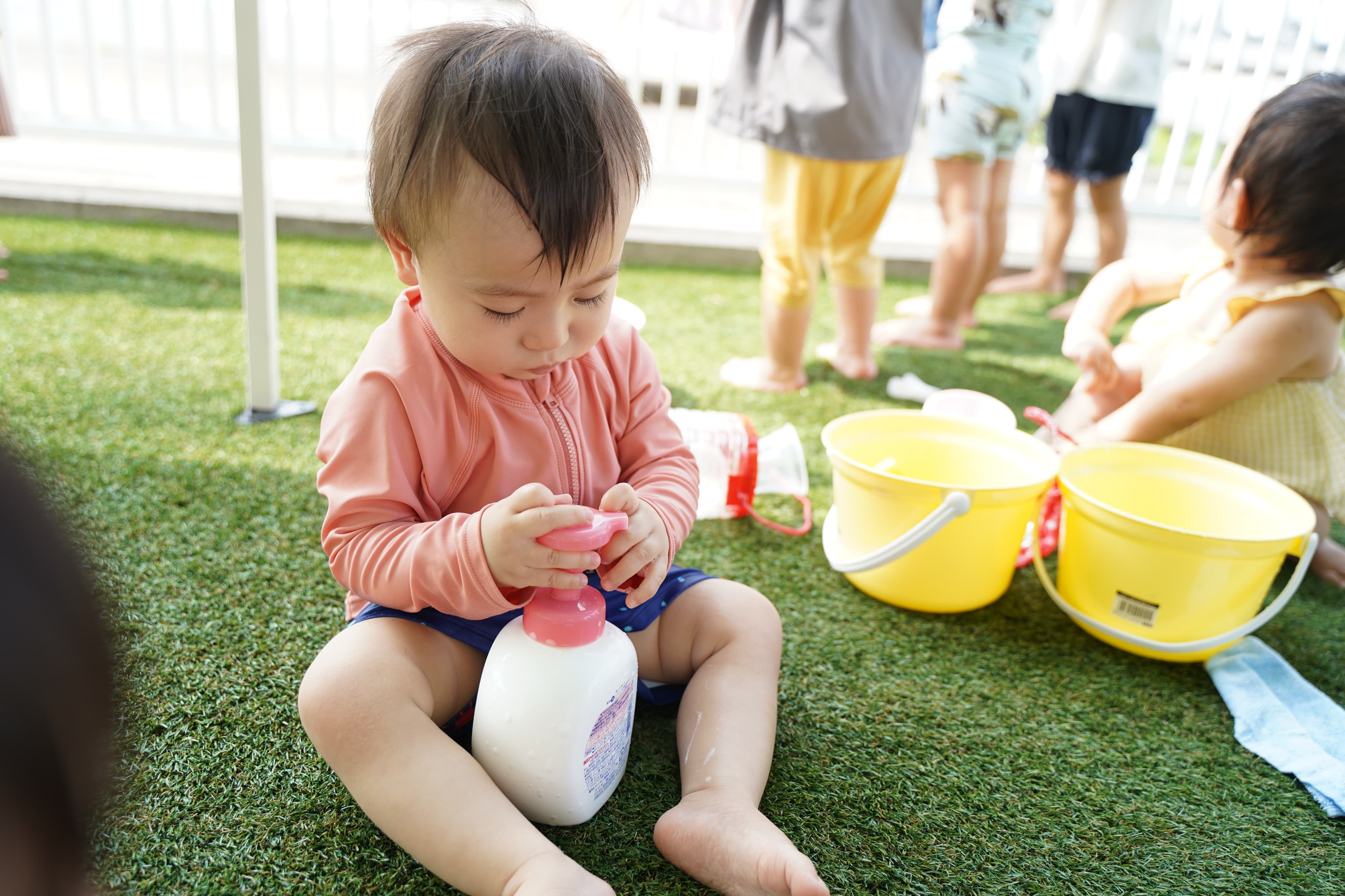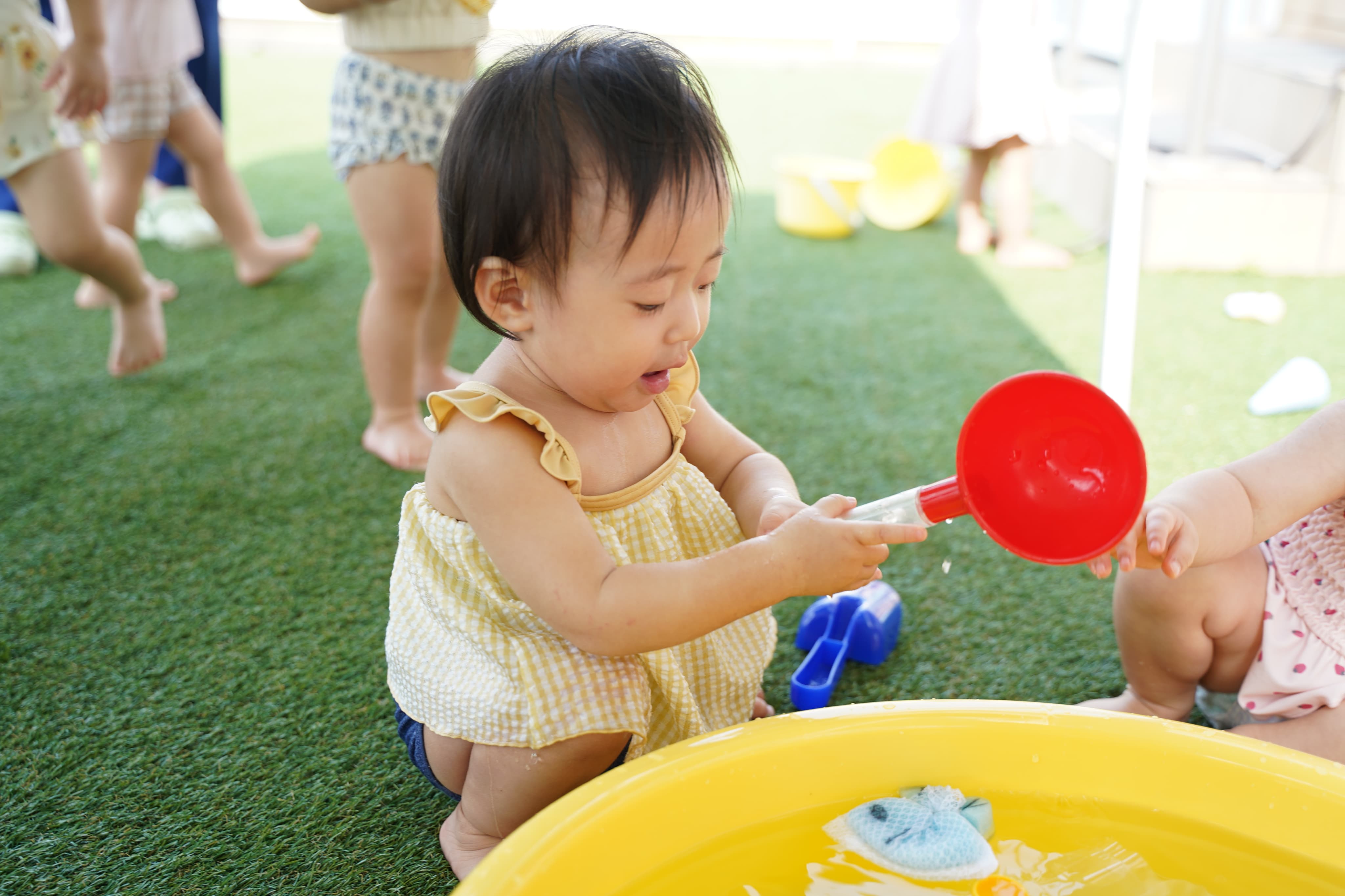 かわいい水着はこれで見納めになりますが、水遊びは9月も引き続き楽しんでいきたいと思います☺️