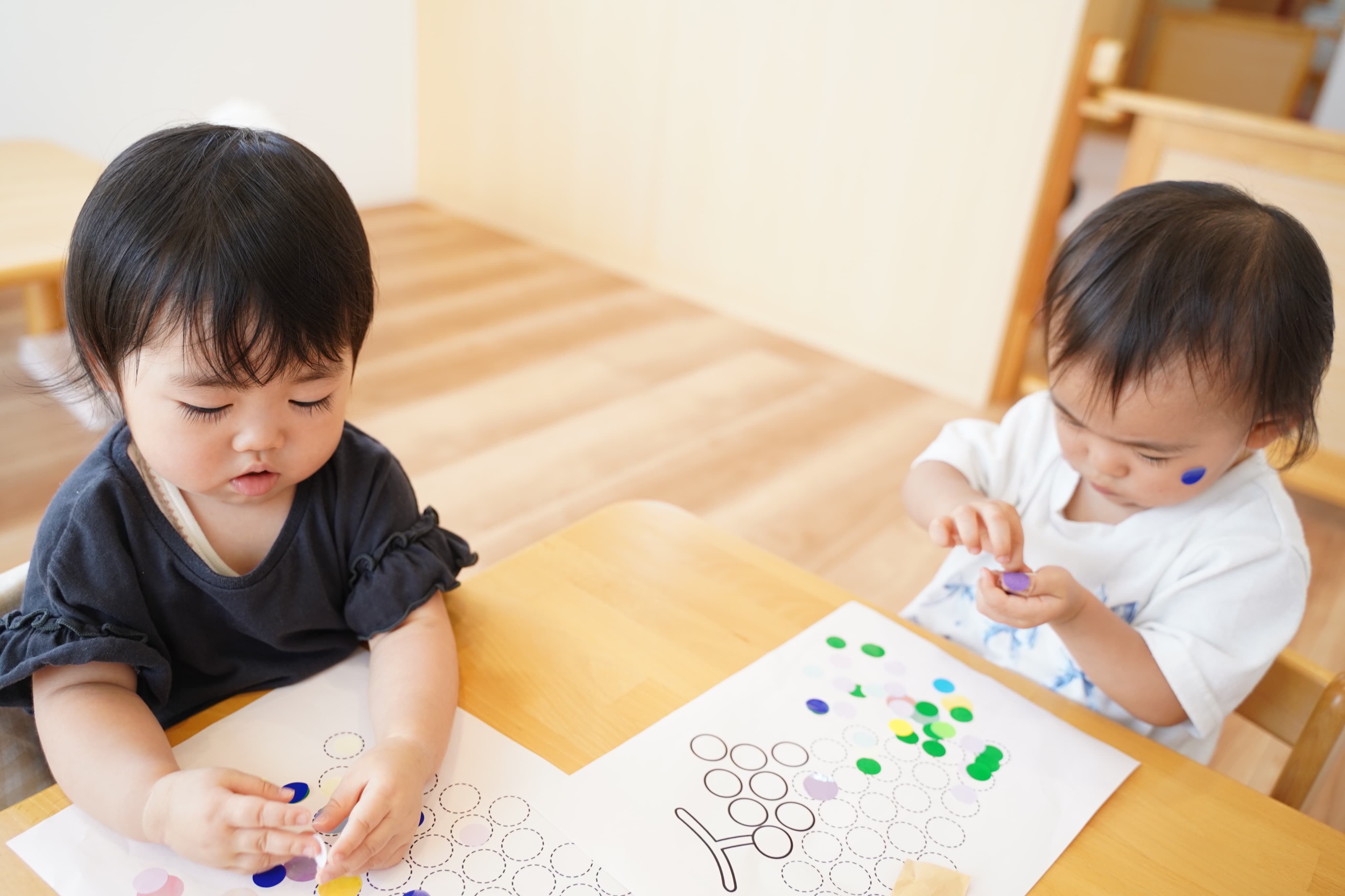 シール貼りは得意!😆 指先が器用になってきた2人で、今週はたくさんシール遊びを楽しみました♪