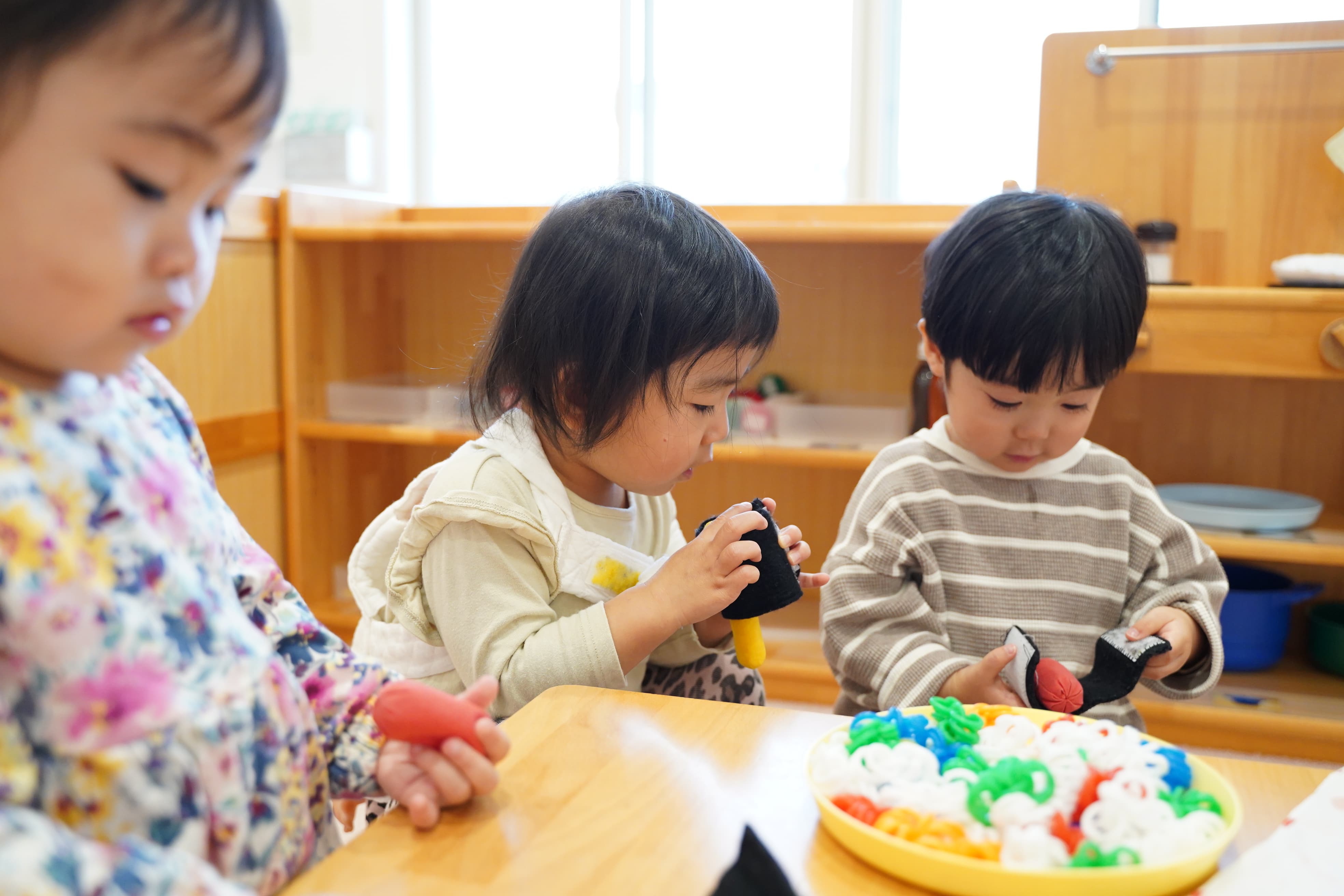 今日はままごとコーナー、積み木コーナー、机上コーナーでそれぞれ分かれて遊んでいたもも組さん🍑