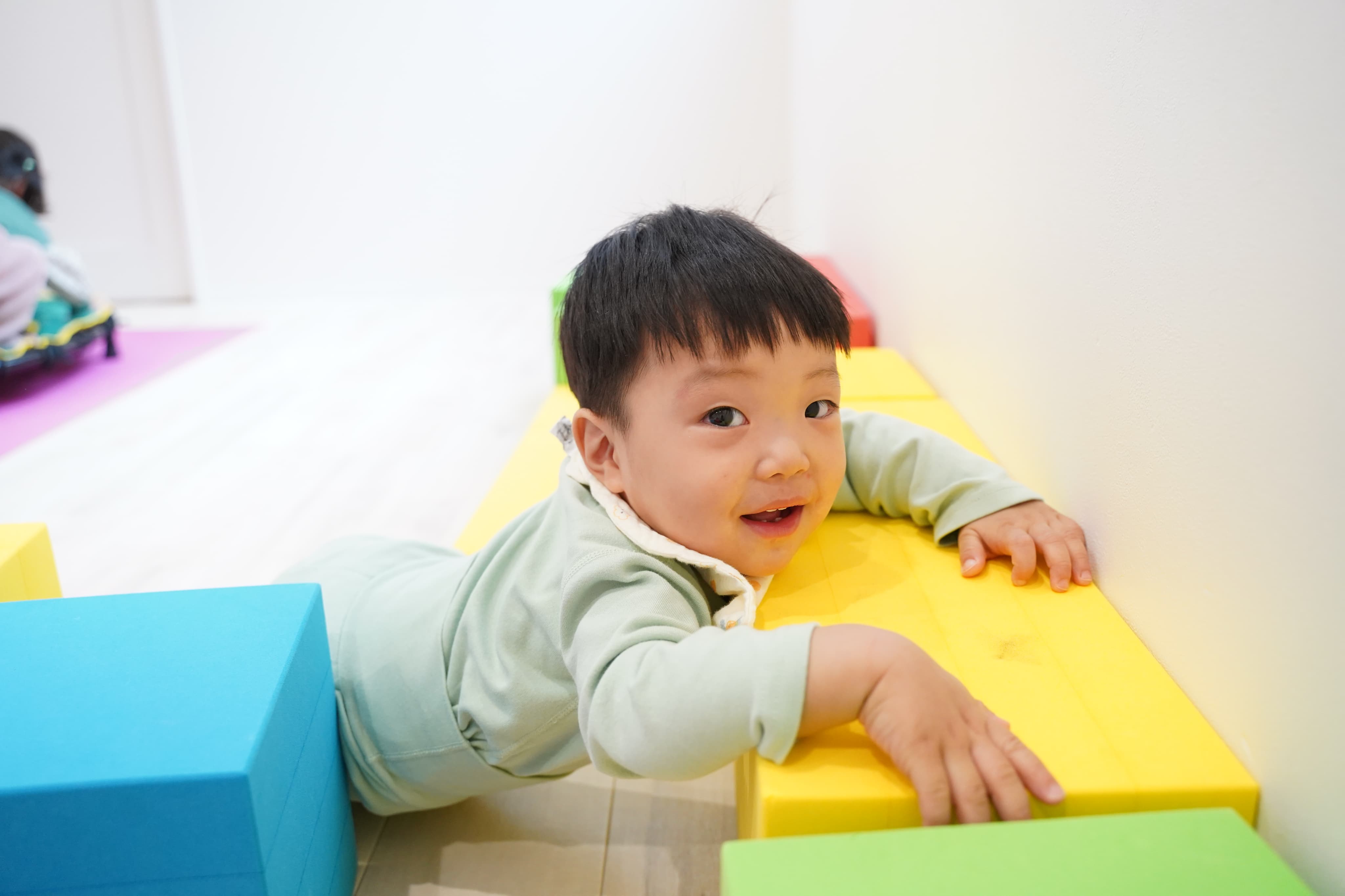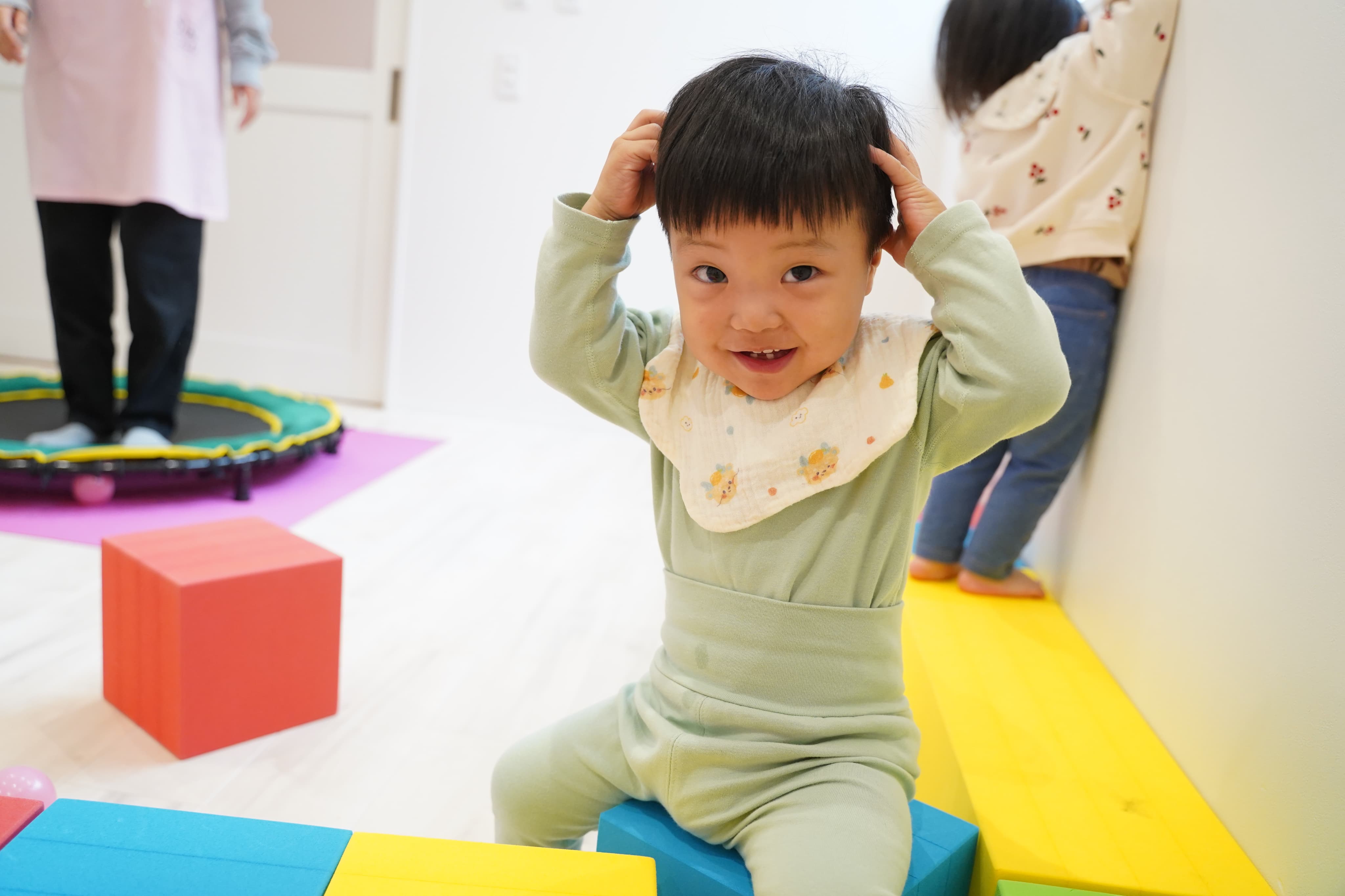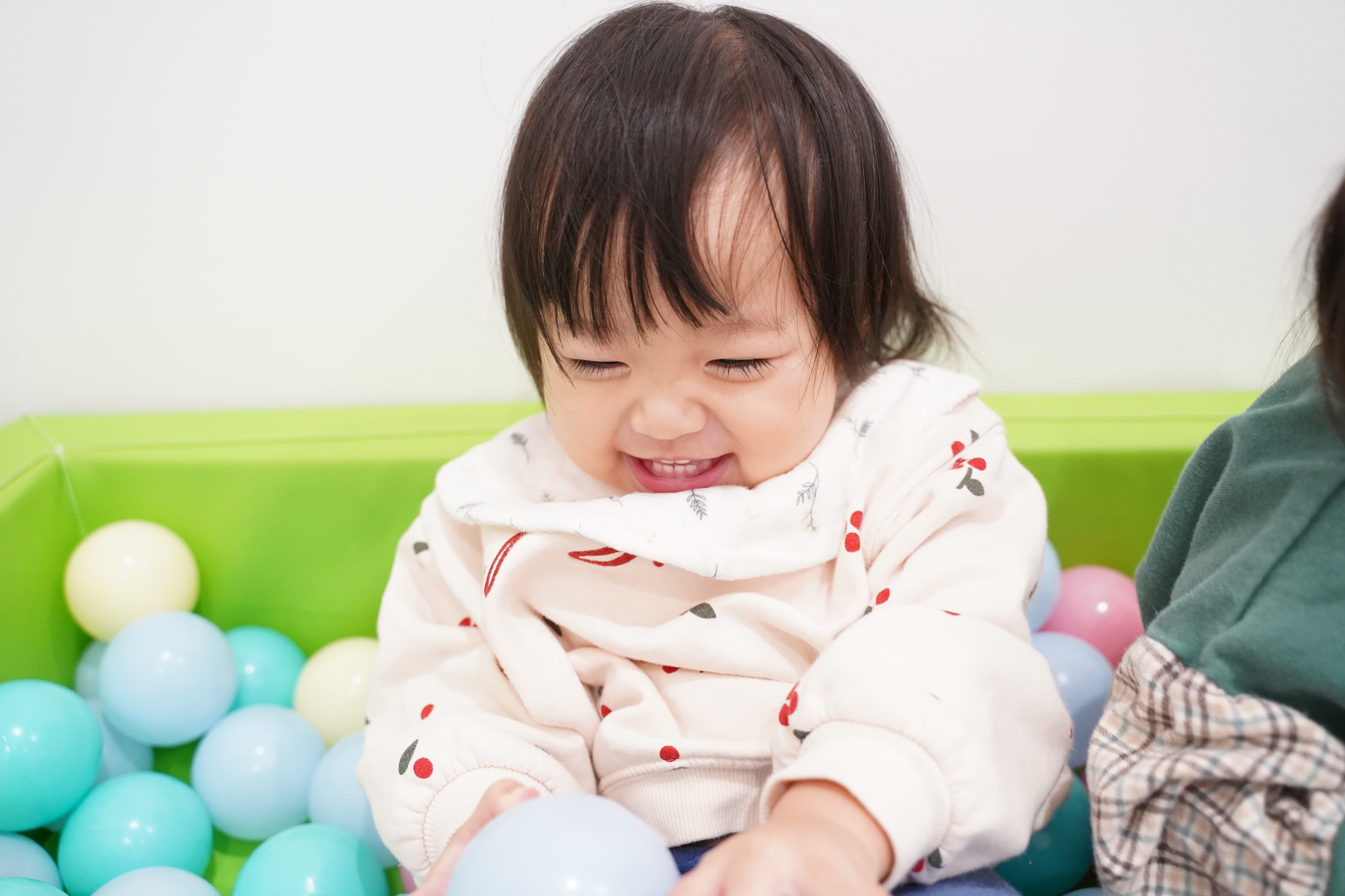 プレイルームではボールプールやトランポリン、ソフト積み木で遊びましたよ!