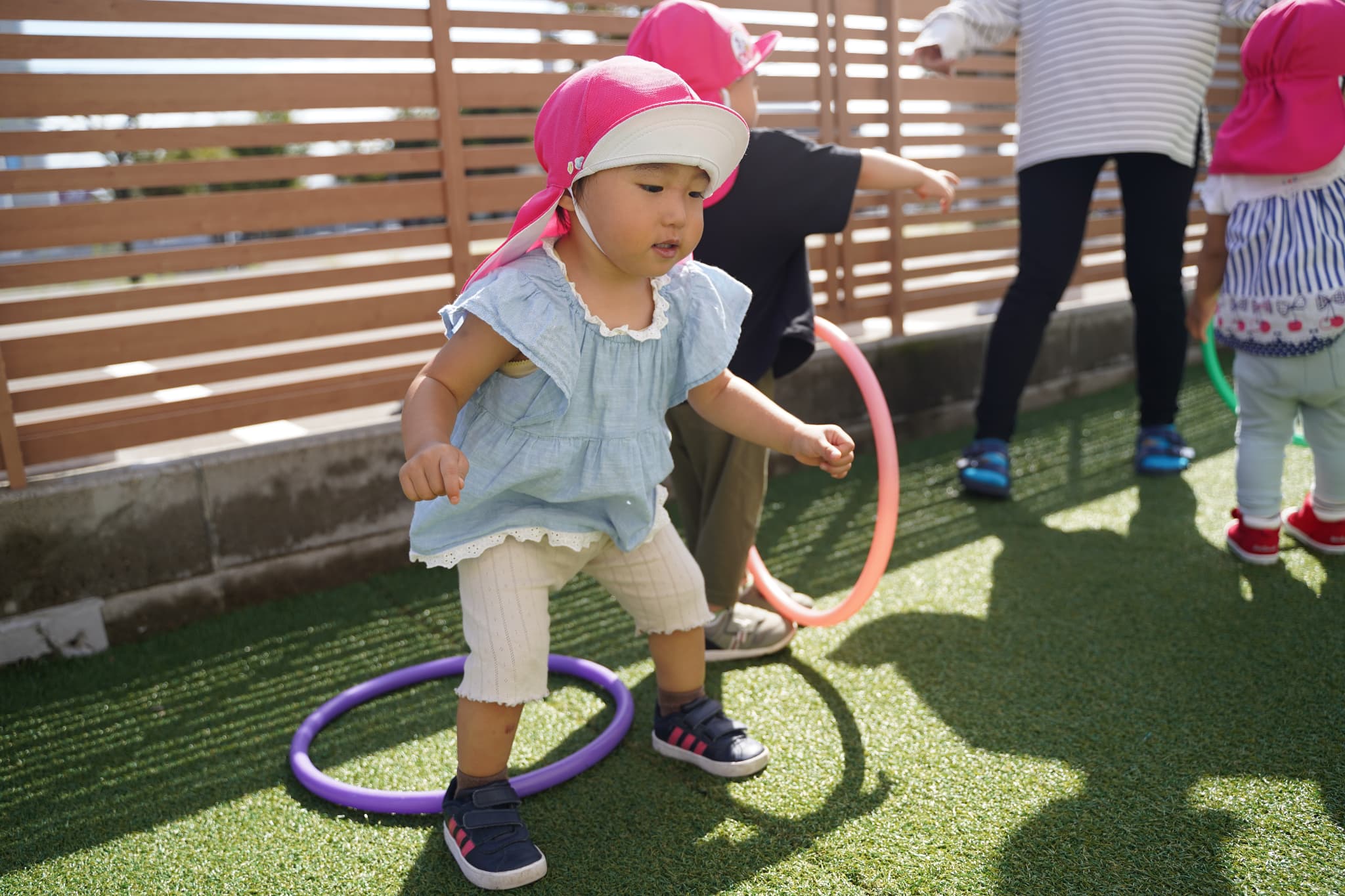 少し前までは、フラフープを手に持って歩くだけで満足していましたが、色んな遊びをすることが出来るようになっている姿にビックリさせられました😳また、体も上手に動かせるようになり、活発に動く姿がたくさん見られています👀✨