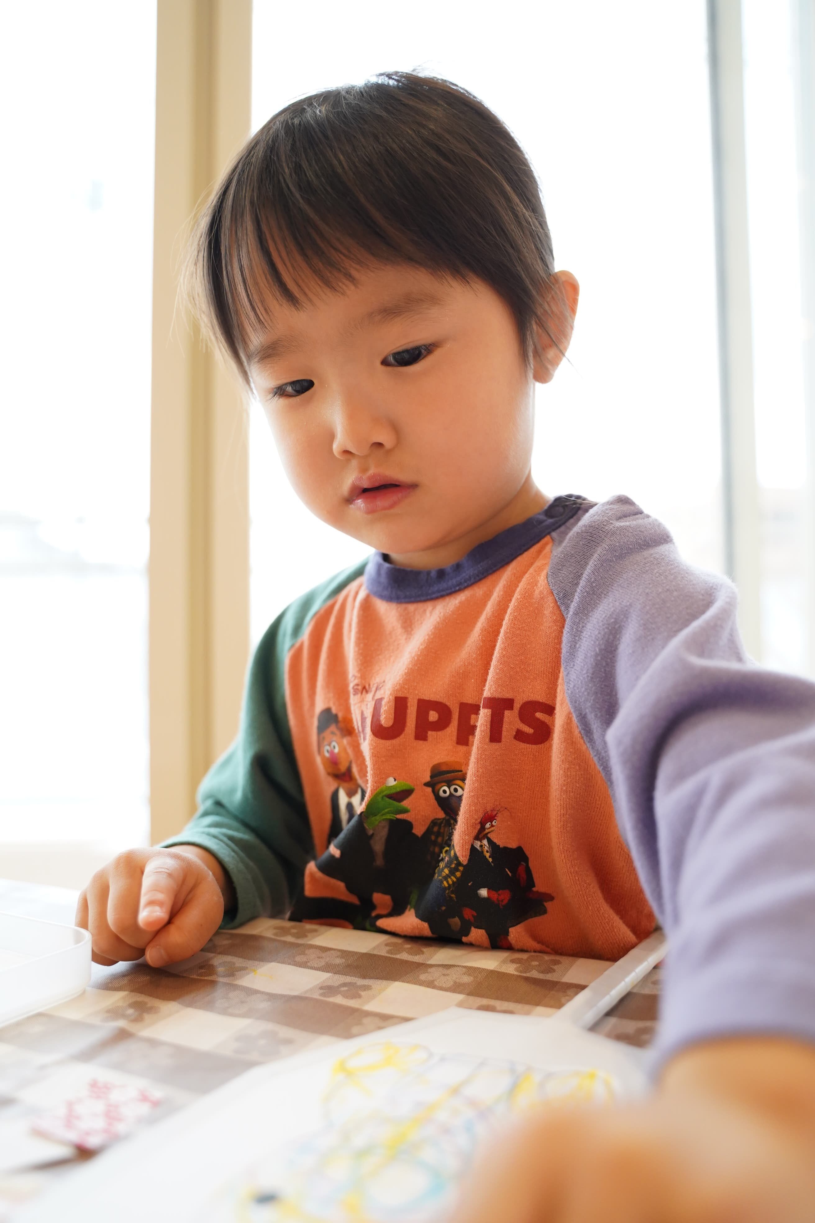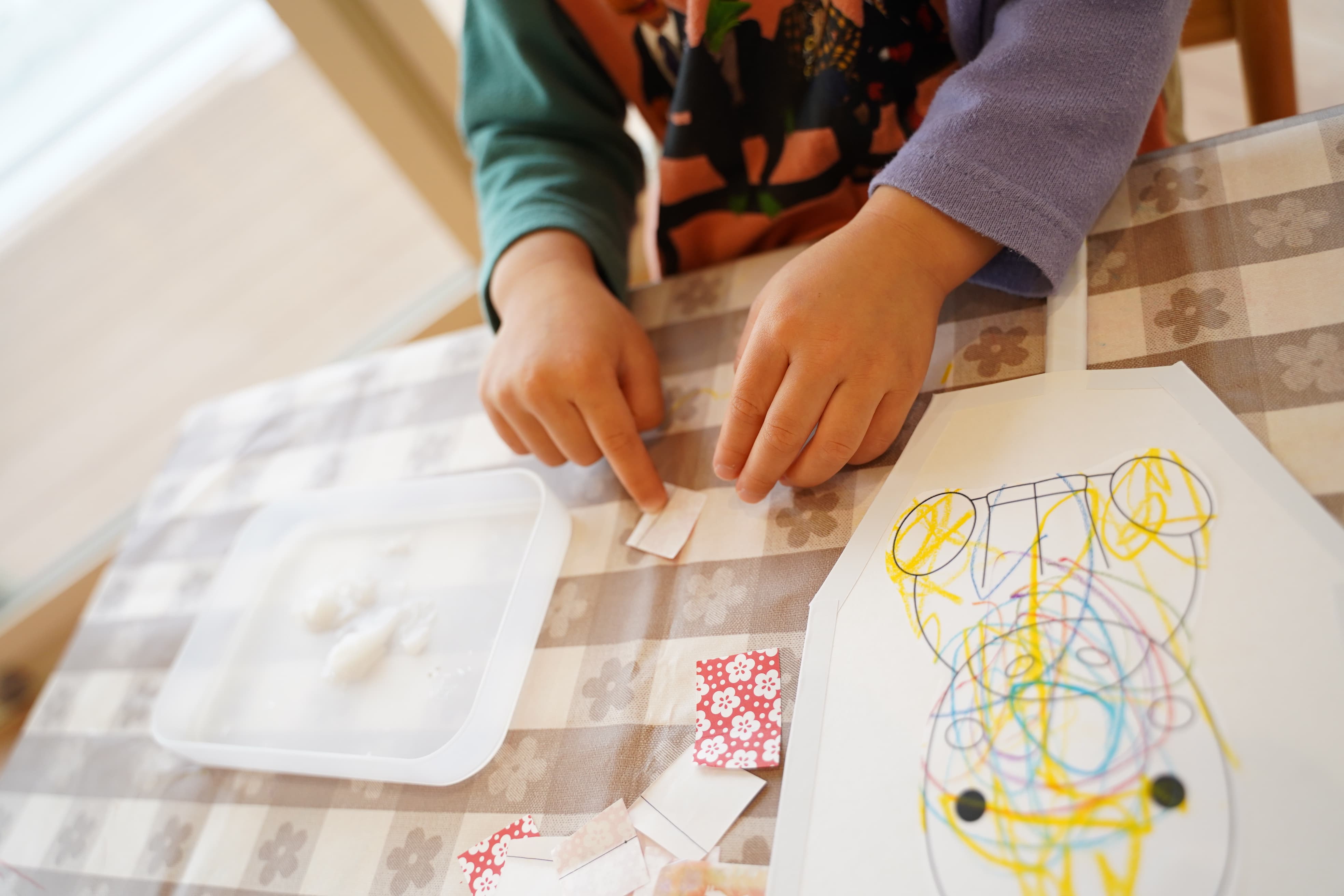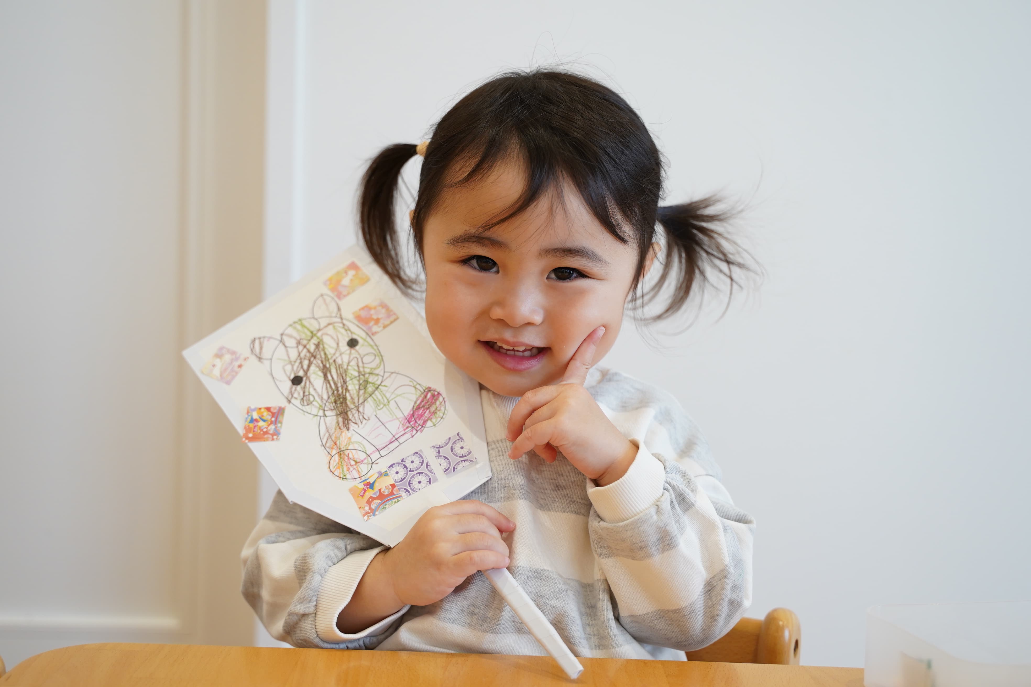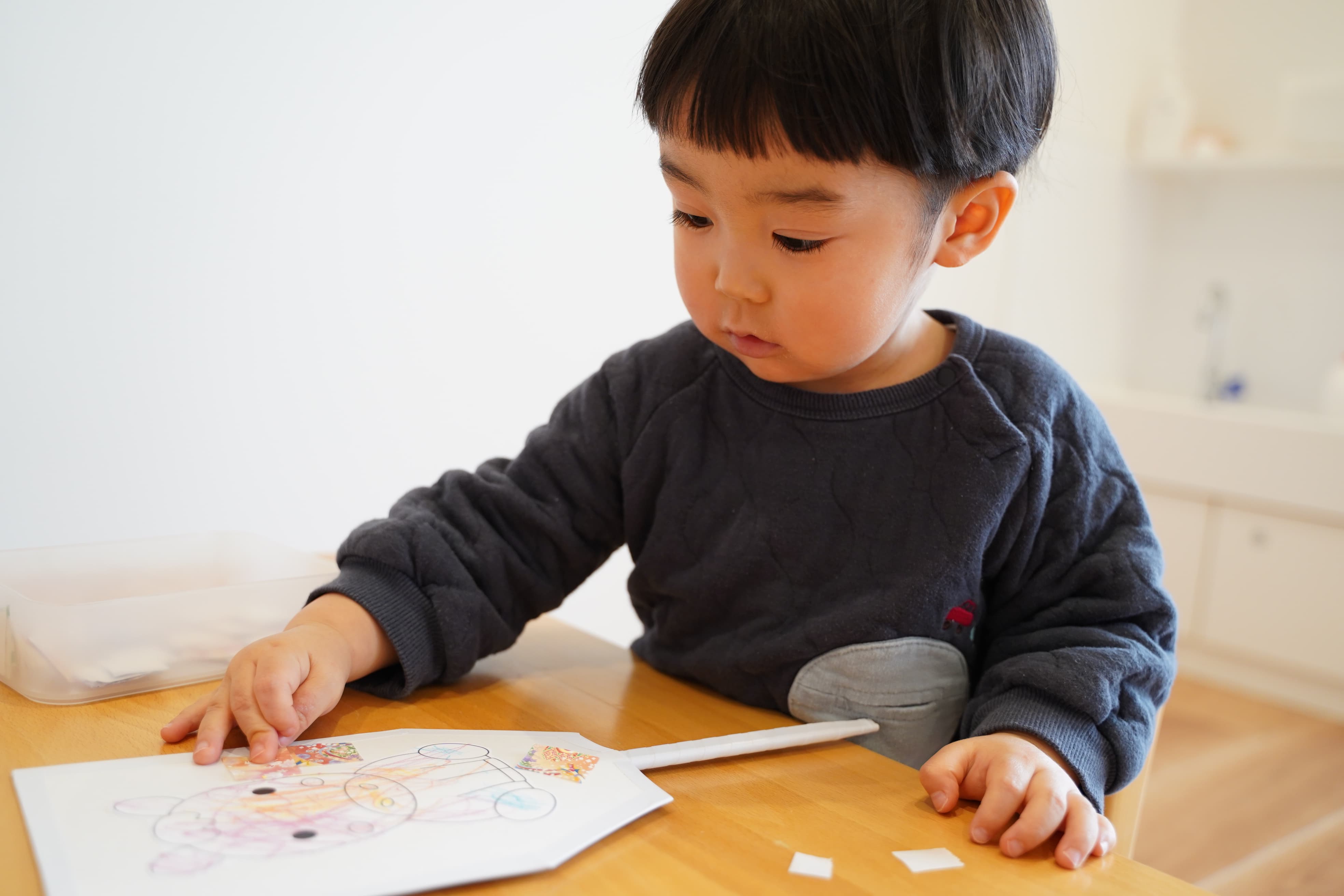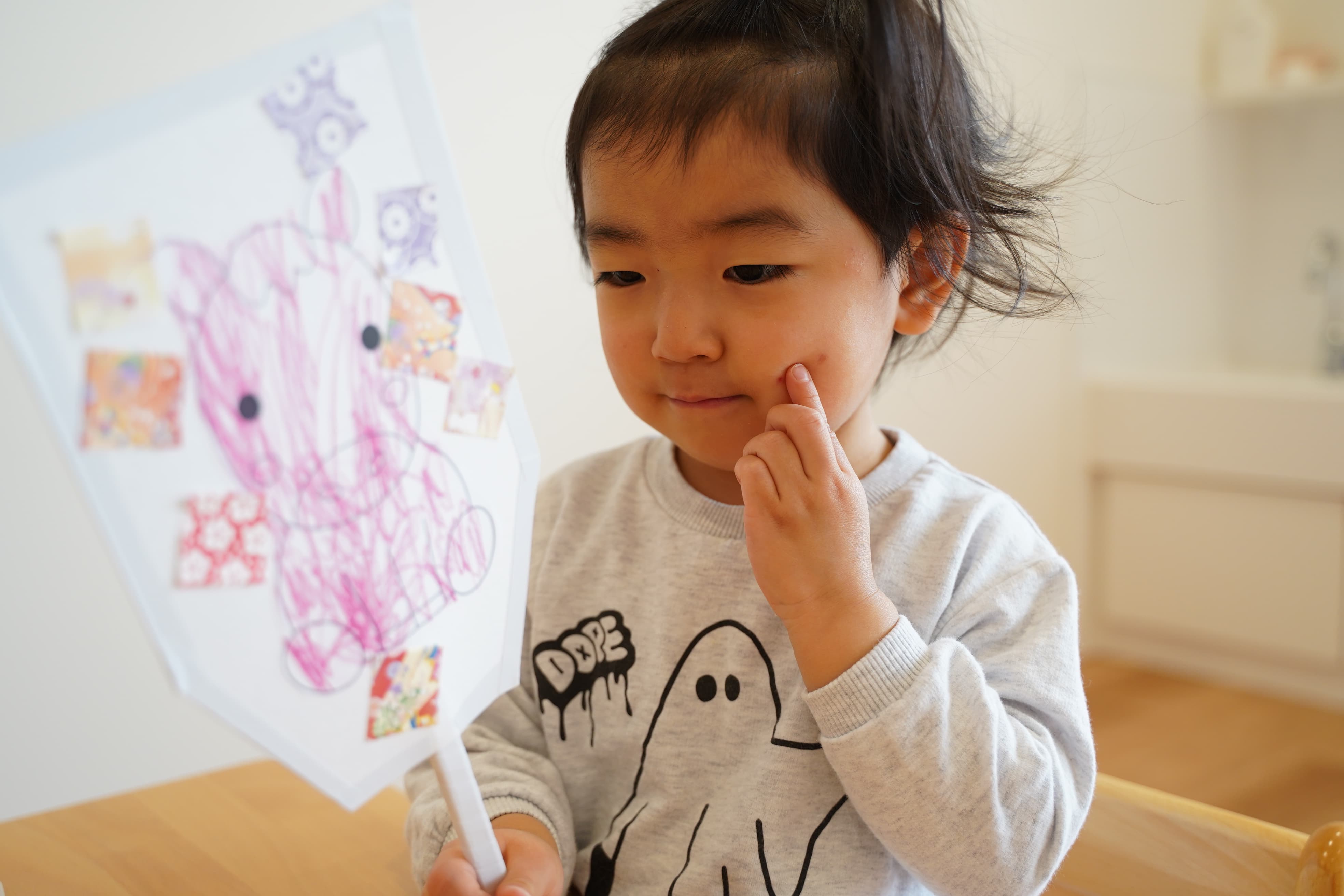 1歳児のお友達は昨日塗ったお馬さんの周りに千代紙で素敵な模様を✨