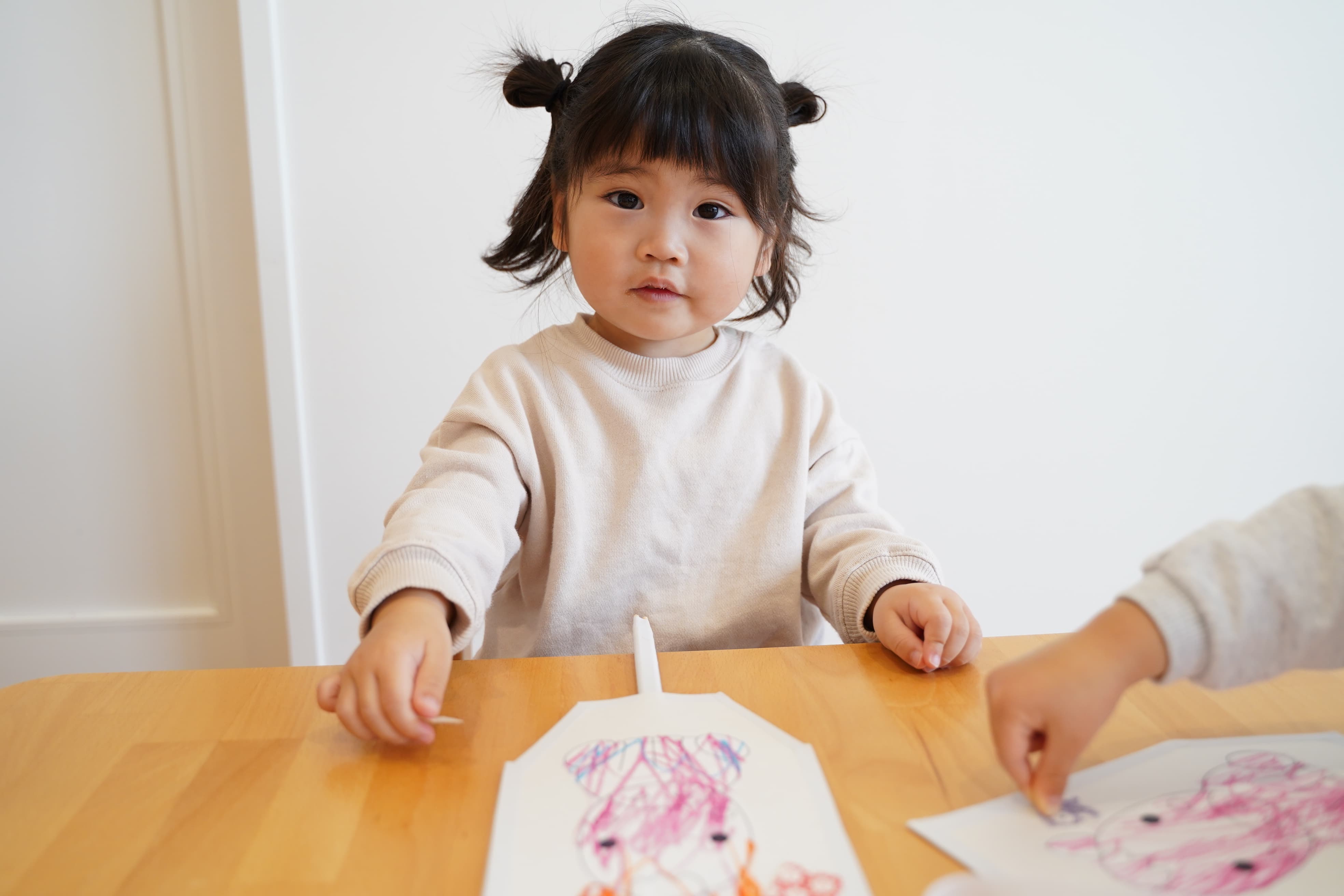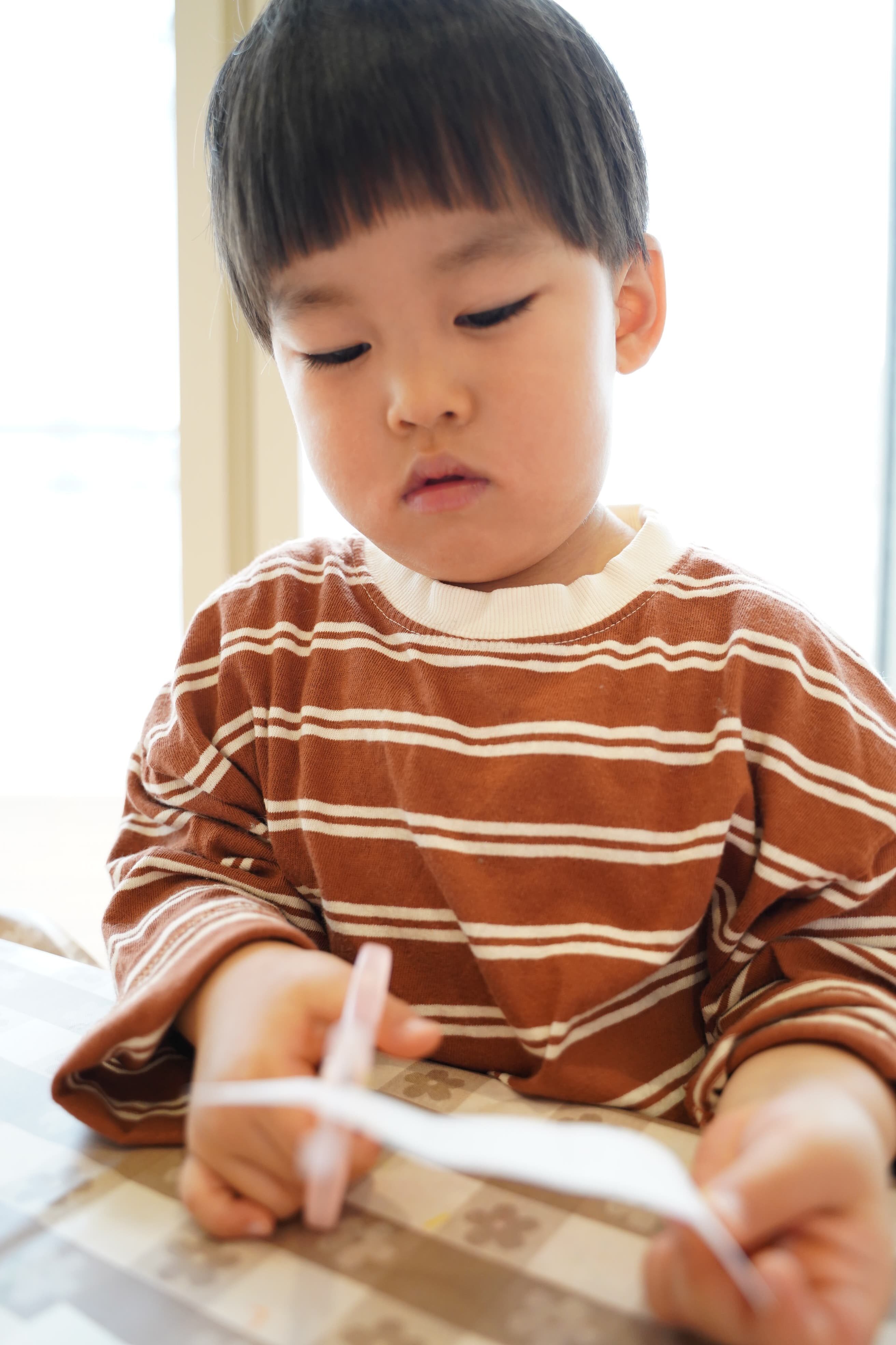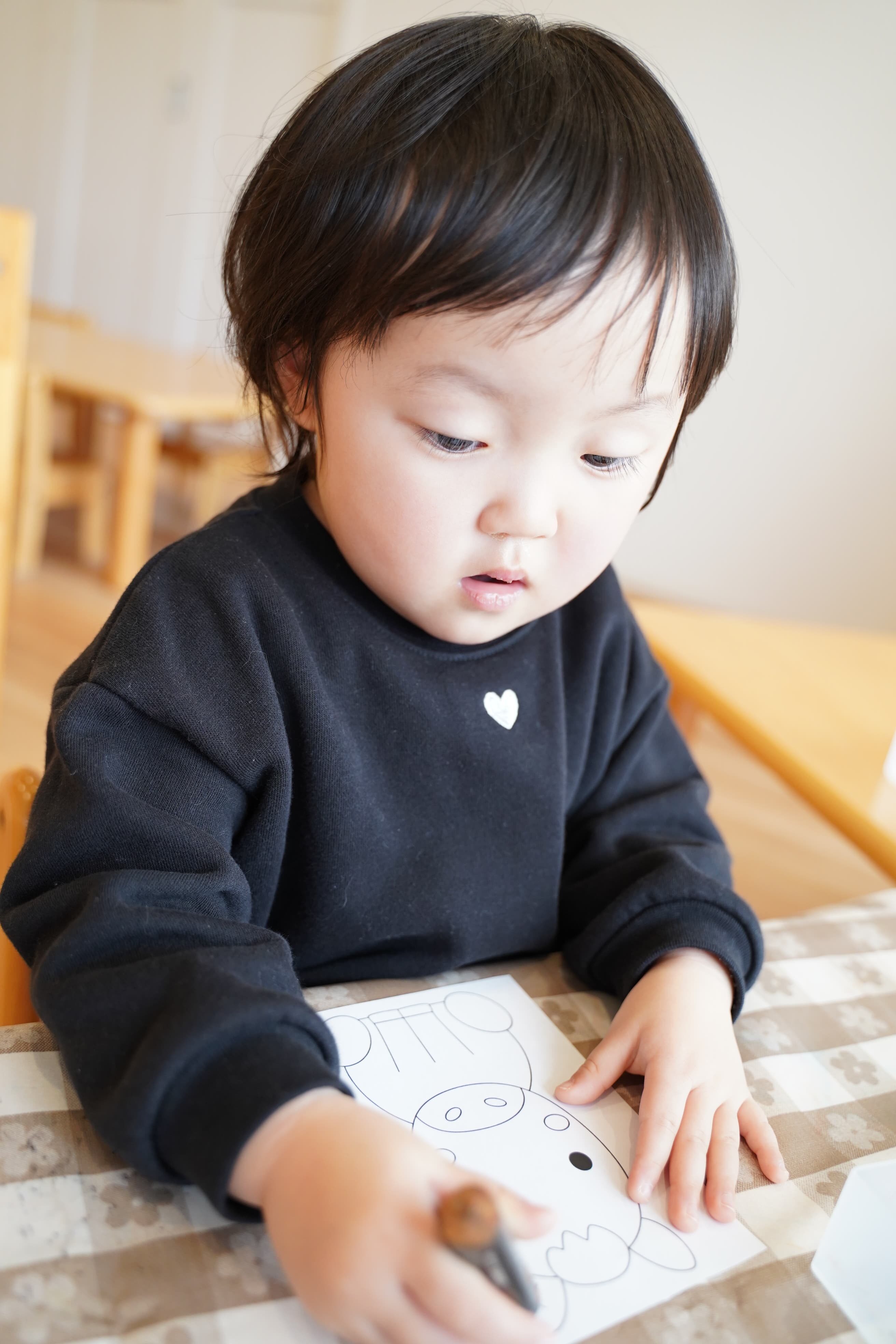 2歳児さんはぬりえからスタートし、はさみのりも使って作りました👊