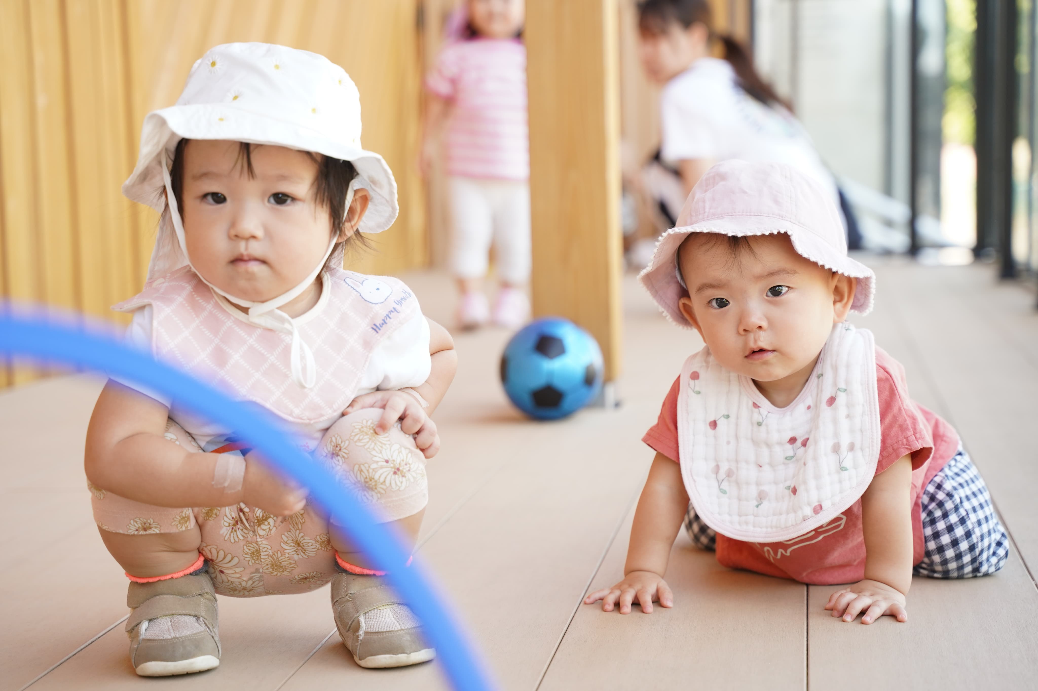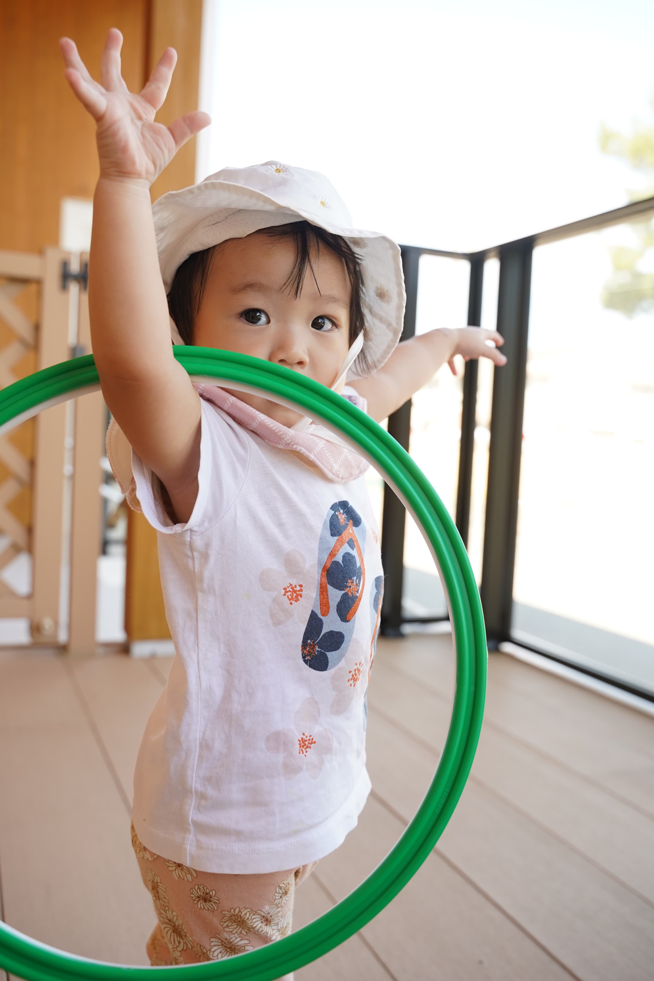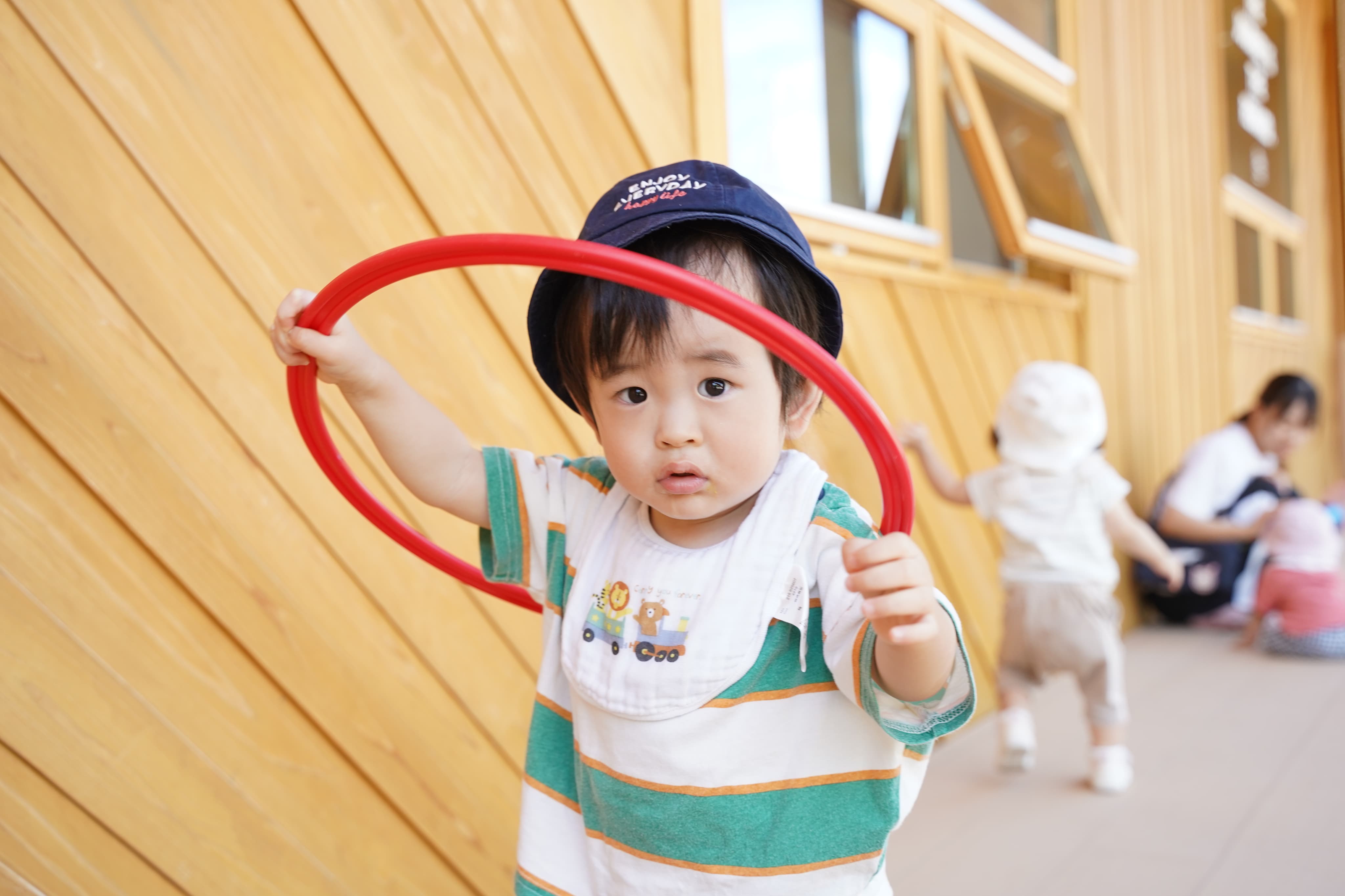 テラスではもも組さんと一緒にフープやボールを使って遊びました◎