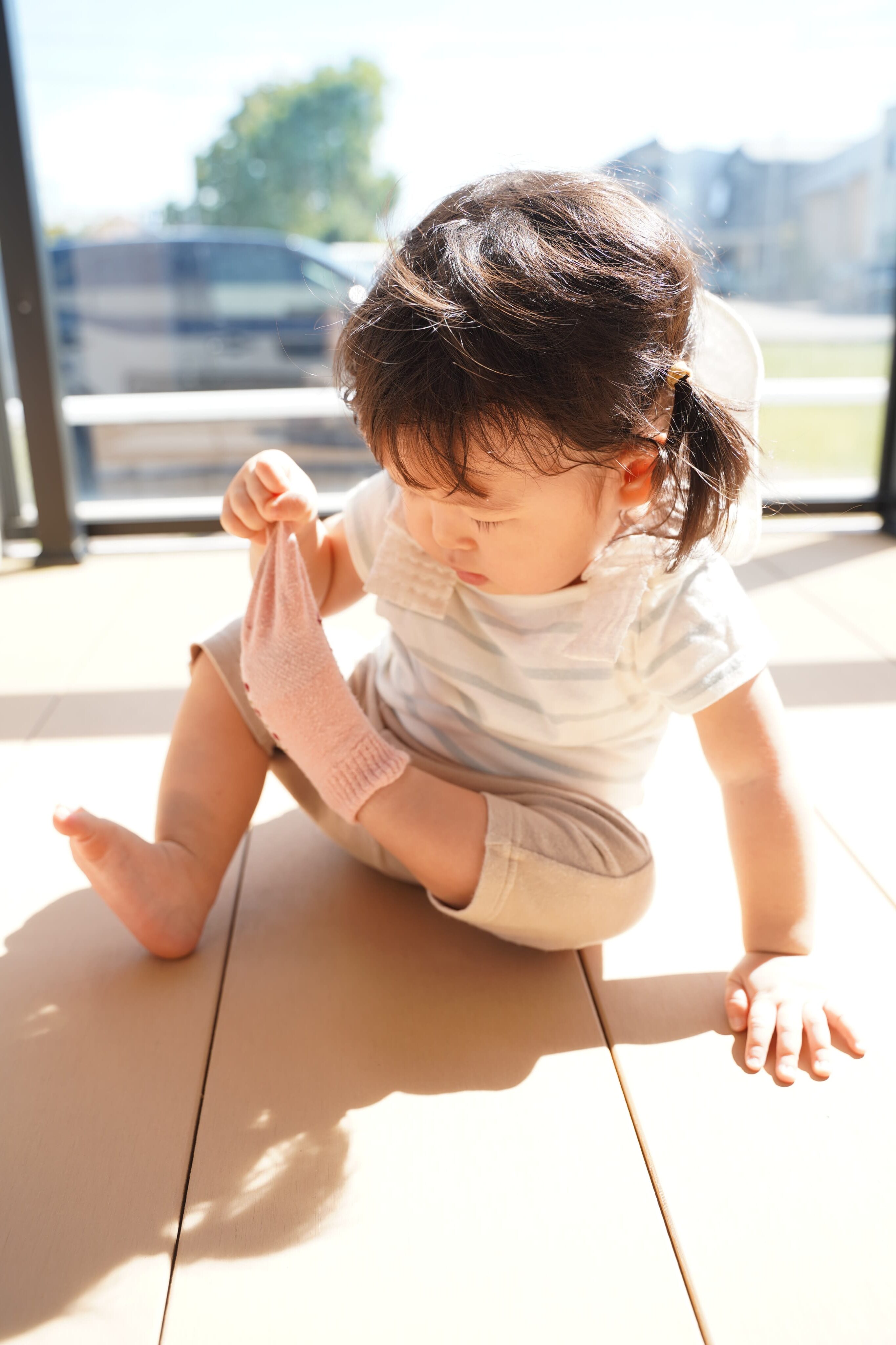 ズックと靴下を自分で脱ごうと頑張っていました!✨