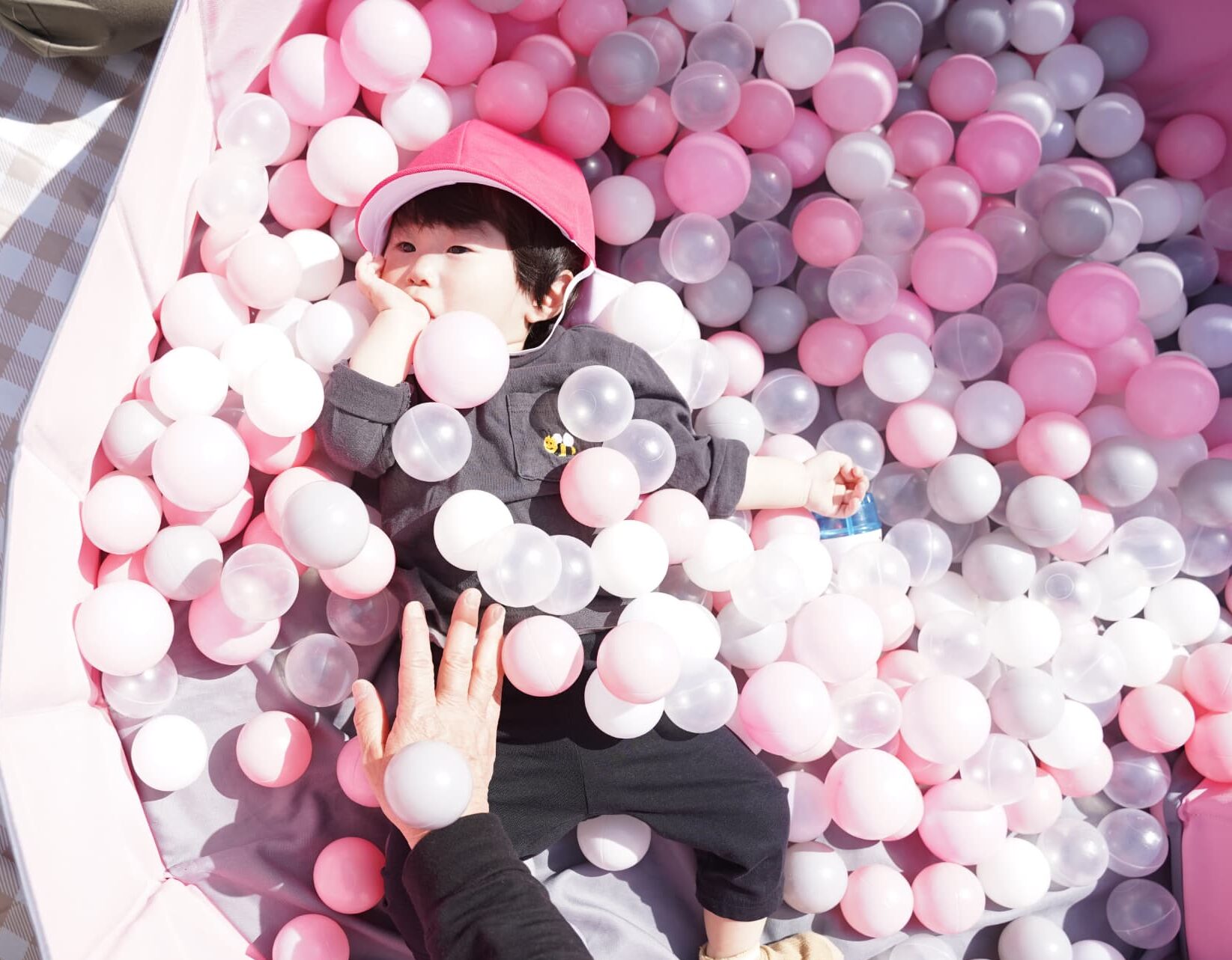 えいっ!と砂場に出してみると、お山みたいなのができたよ✌️
