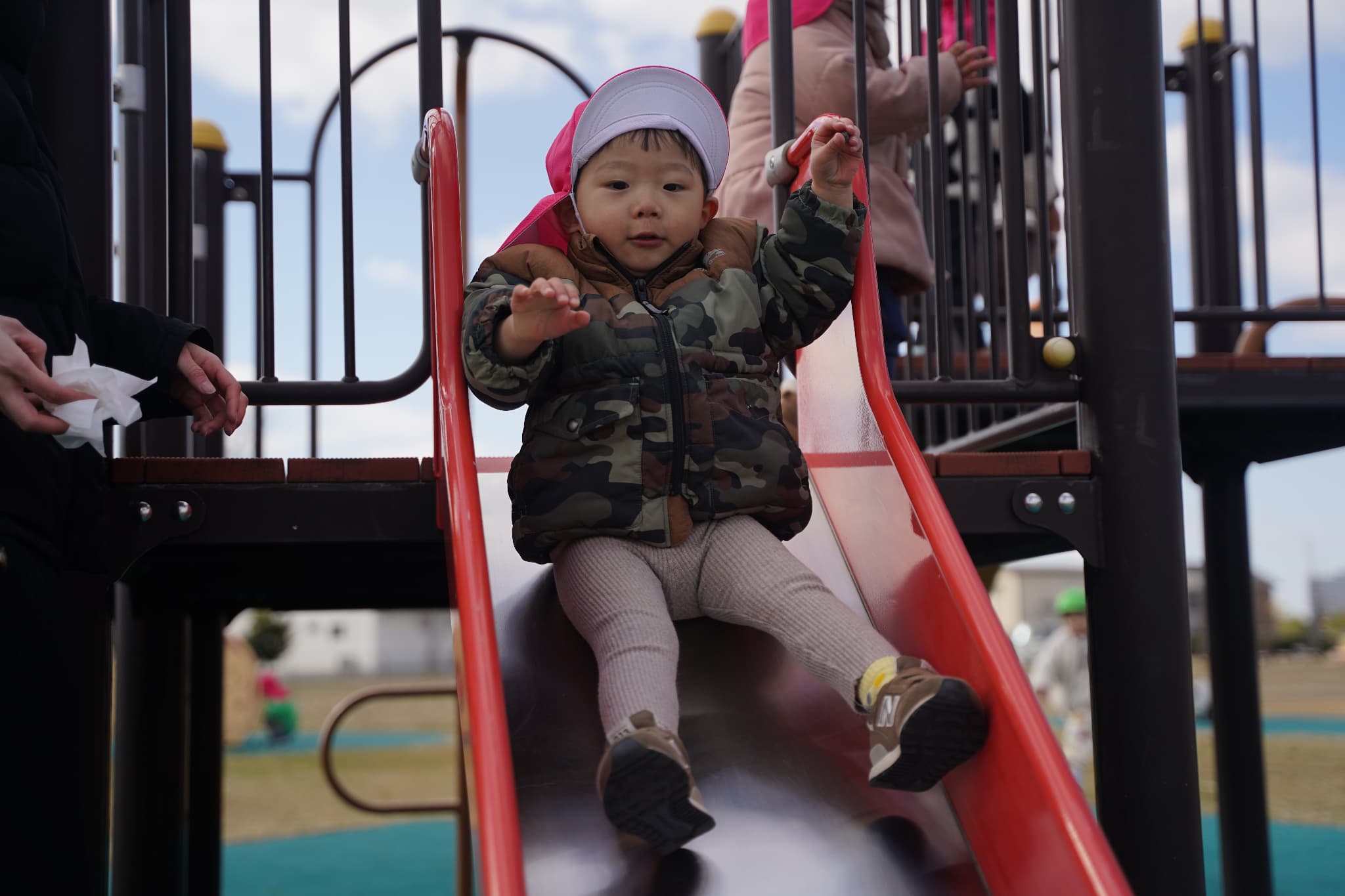 2種類の滑り台にも楽しそうに滑って遊びました🛝