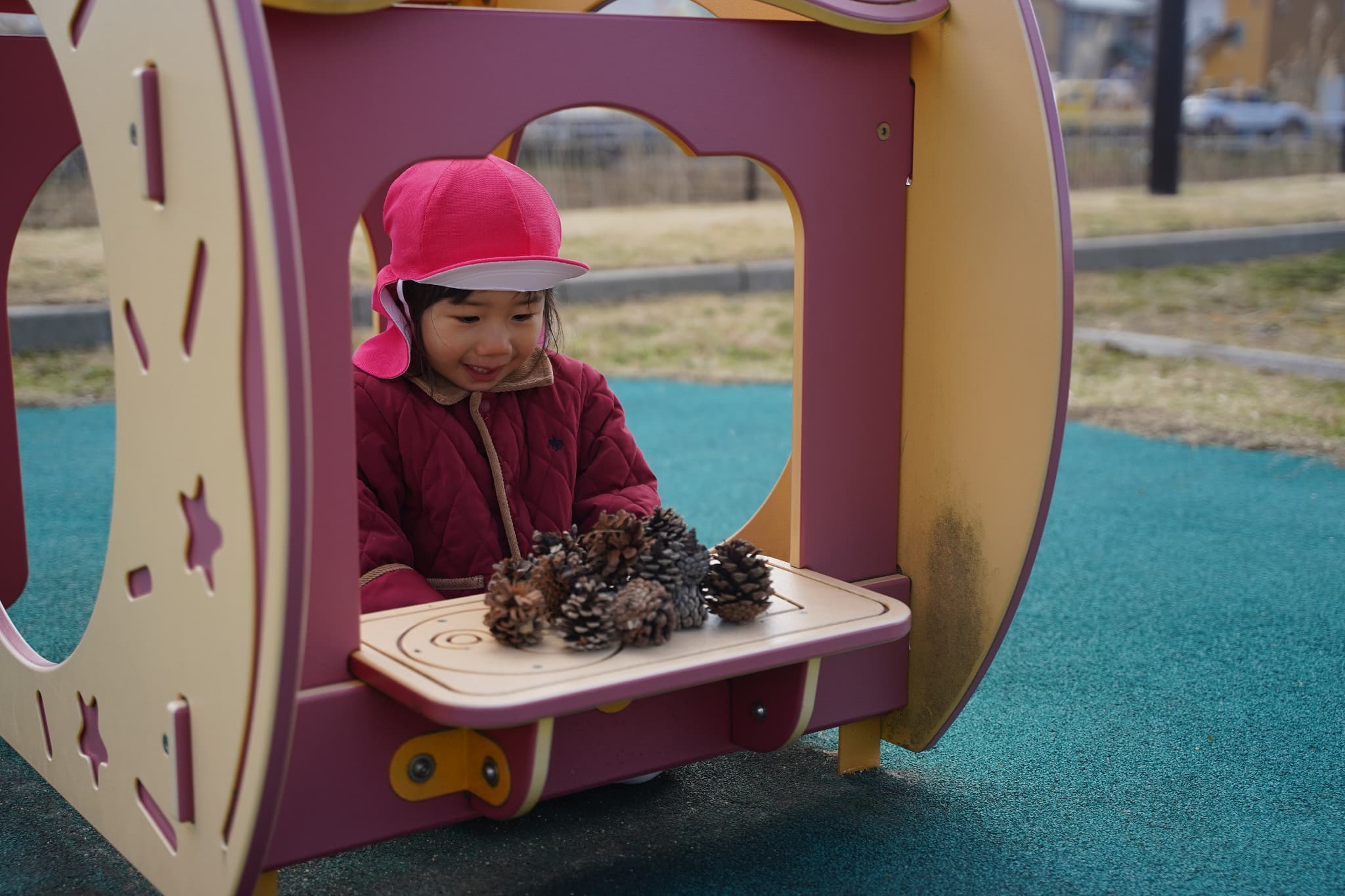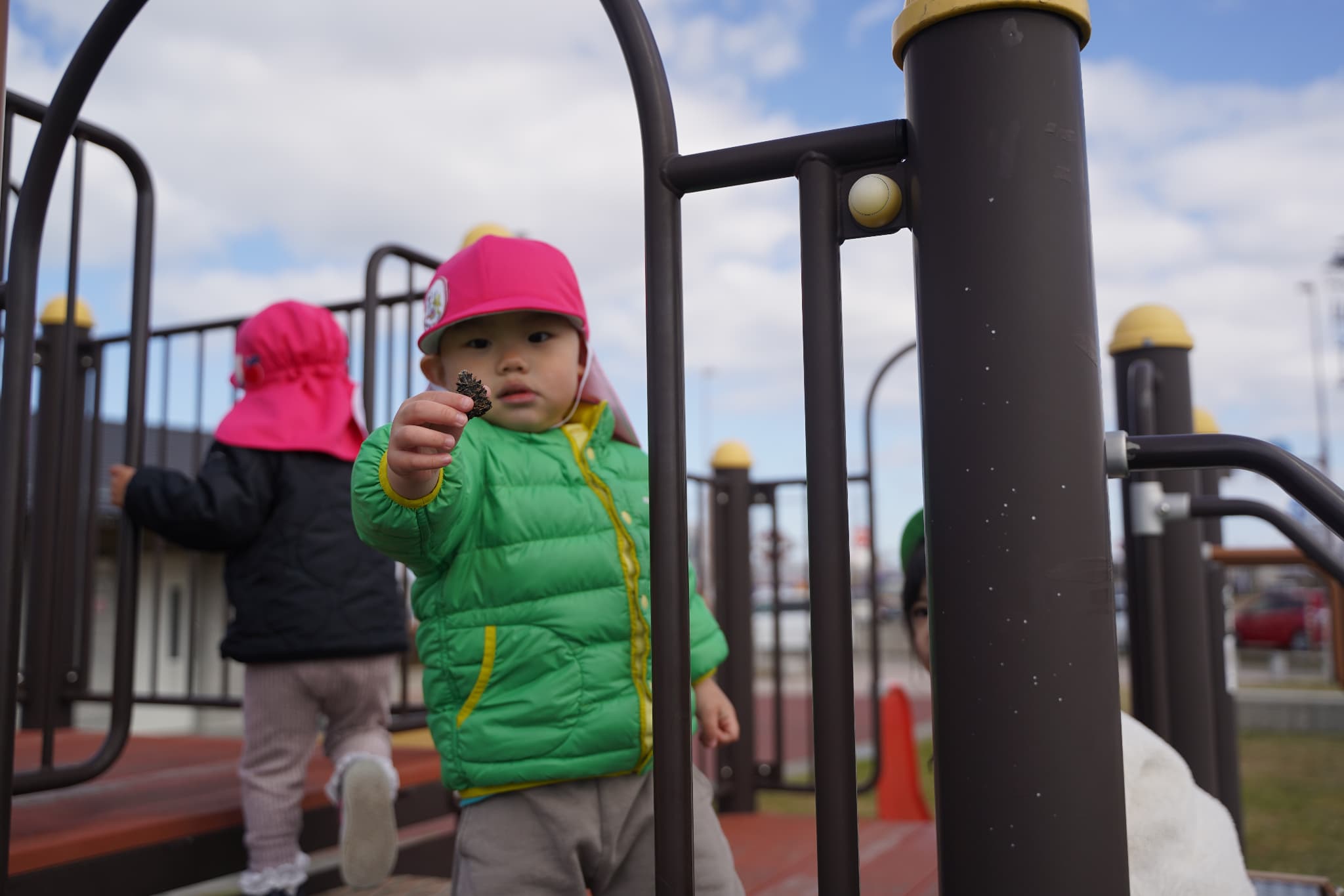 しばらくすると、お友達が松ぼっくりを持ってきてくれて