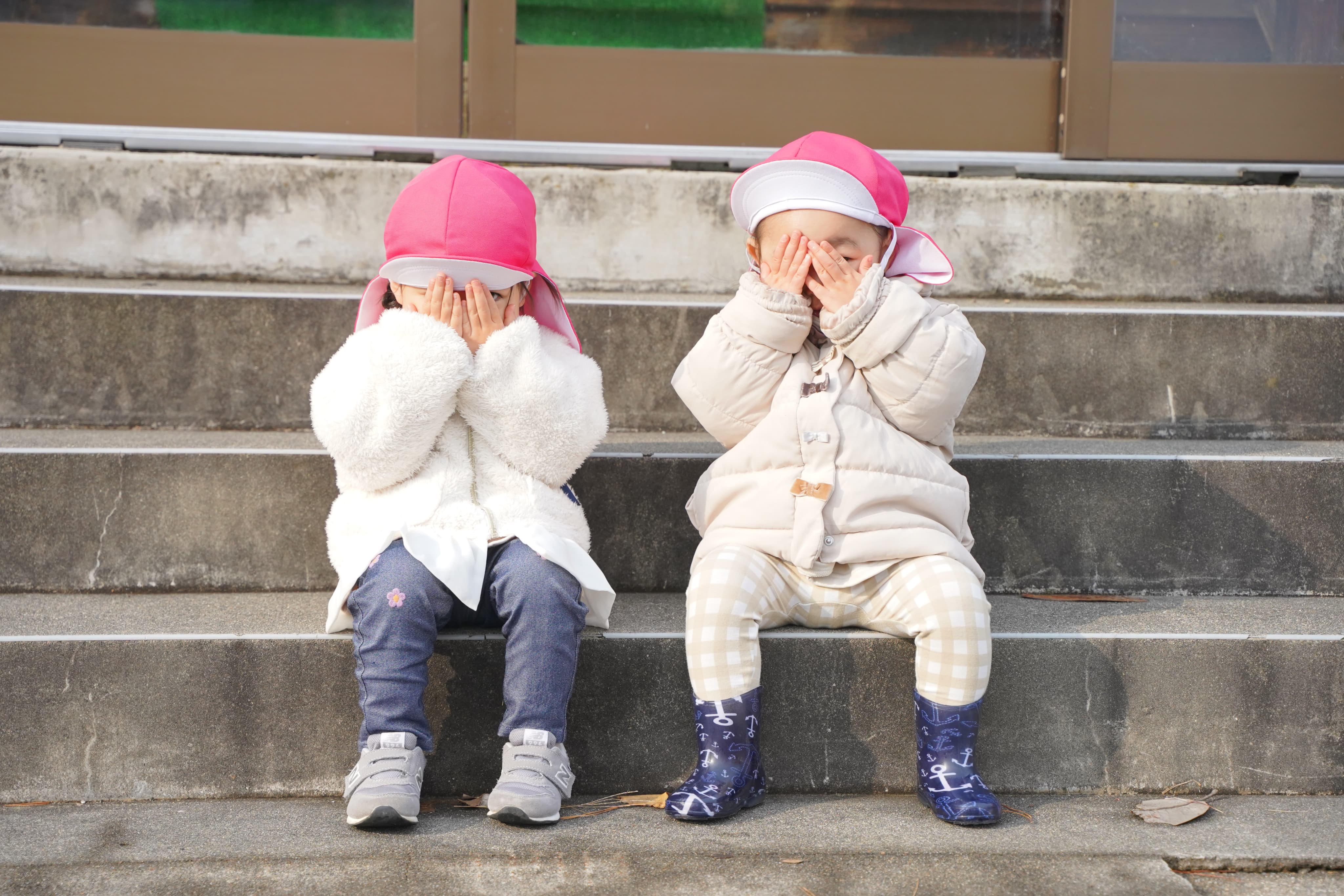 顔を隠して「もーいいかーい」と言っています🫣