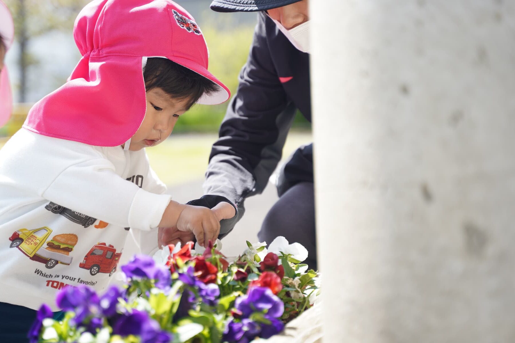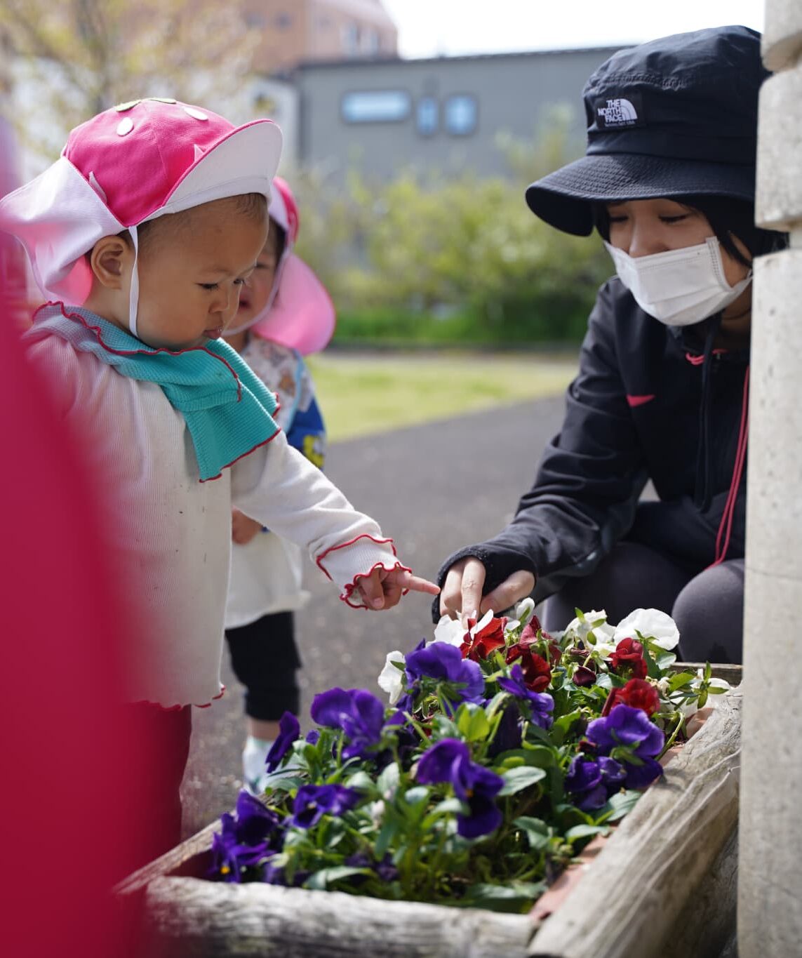春のお花が咲いていて興味津々に見ている場面もありましたよ🌼