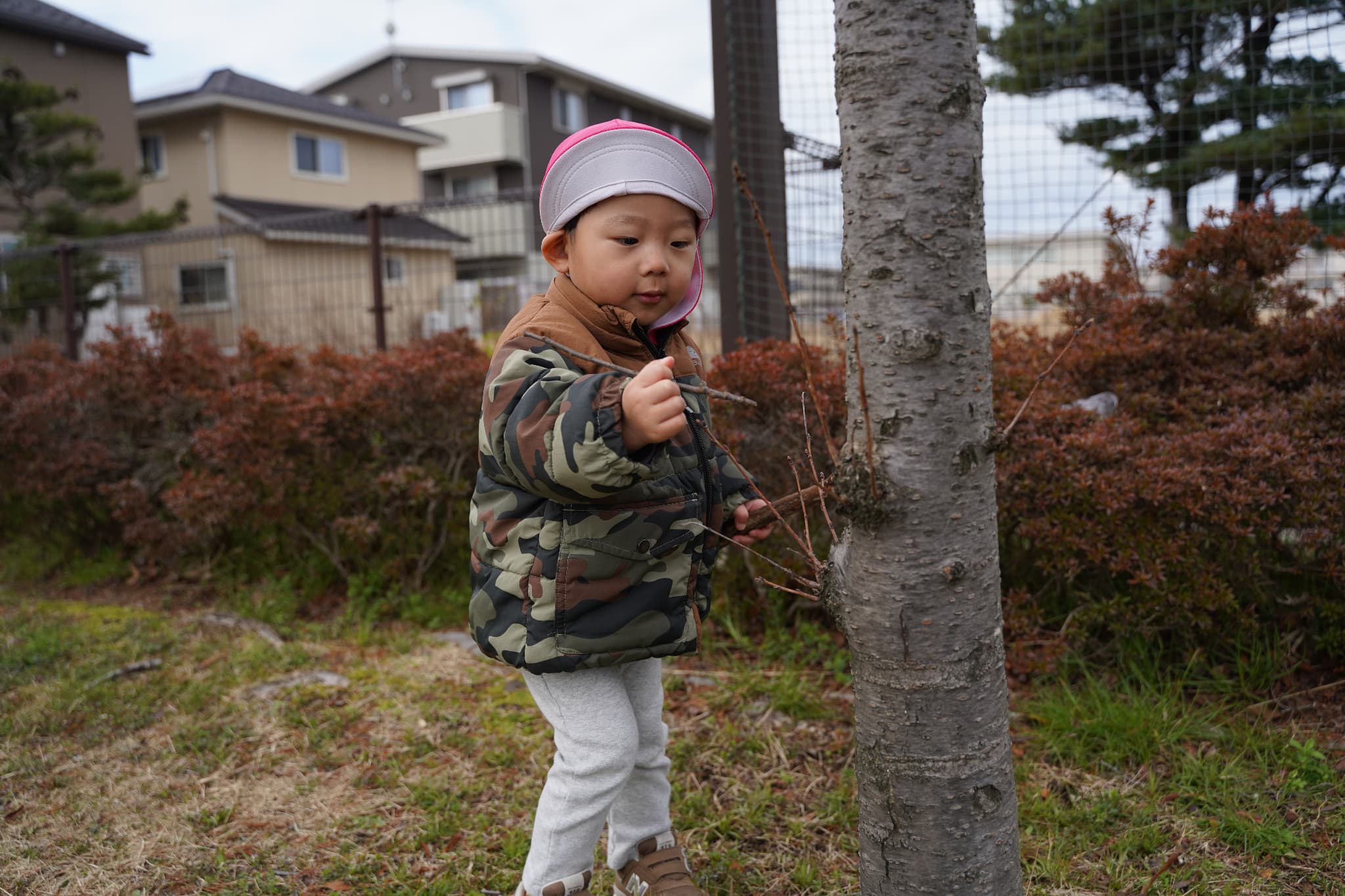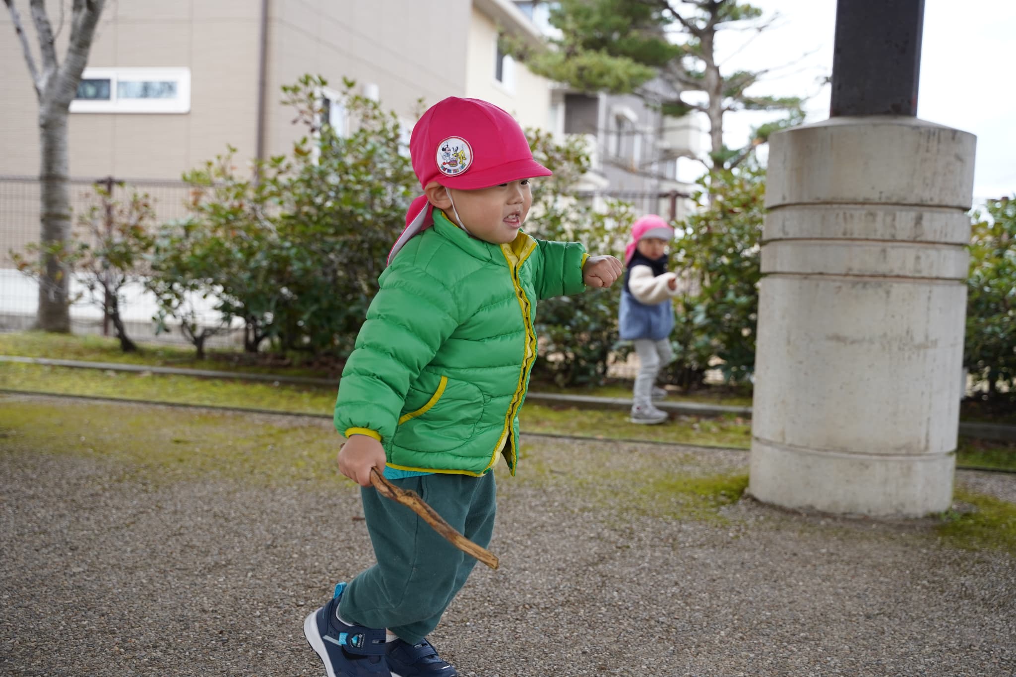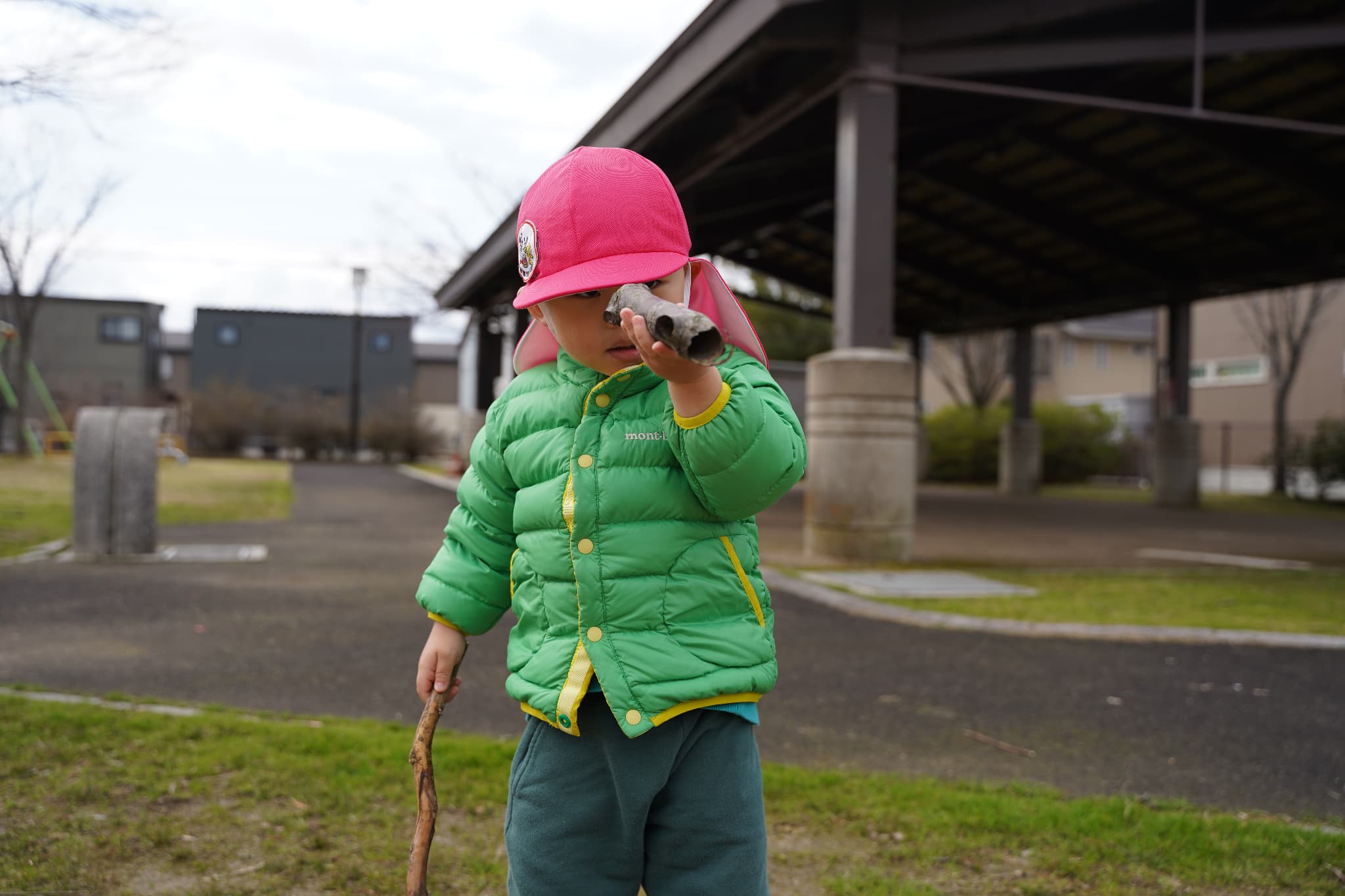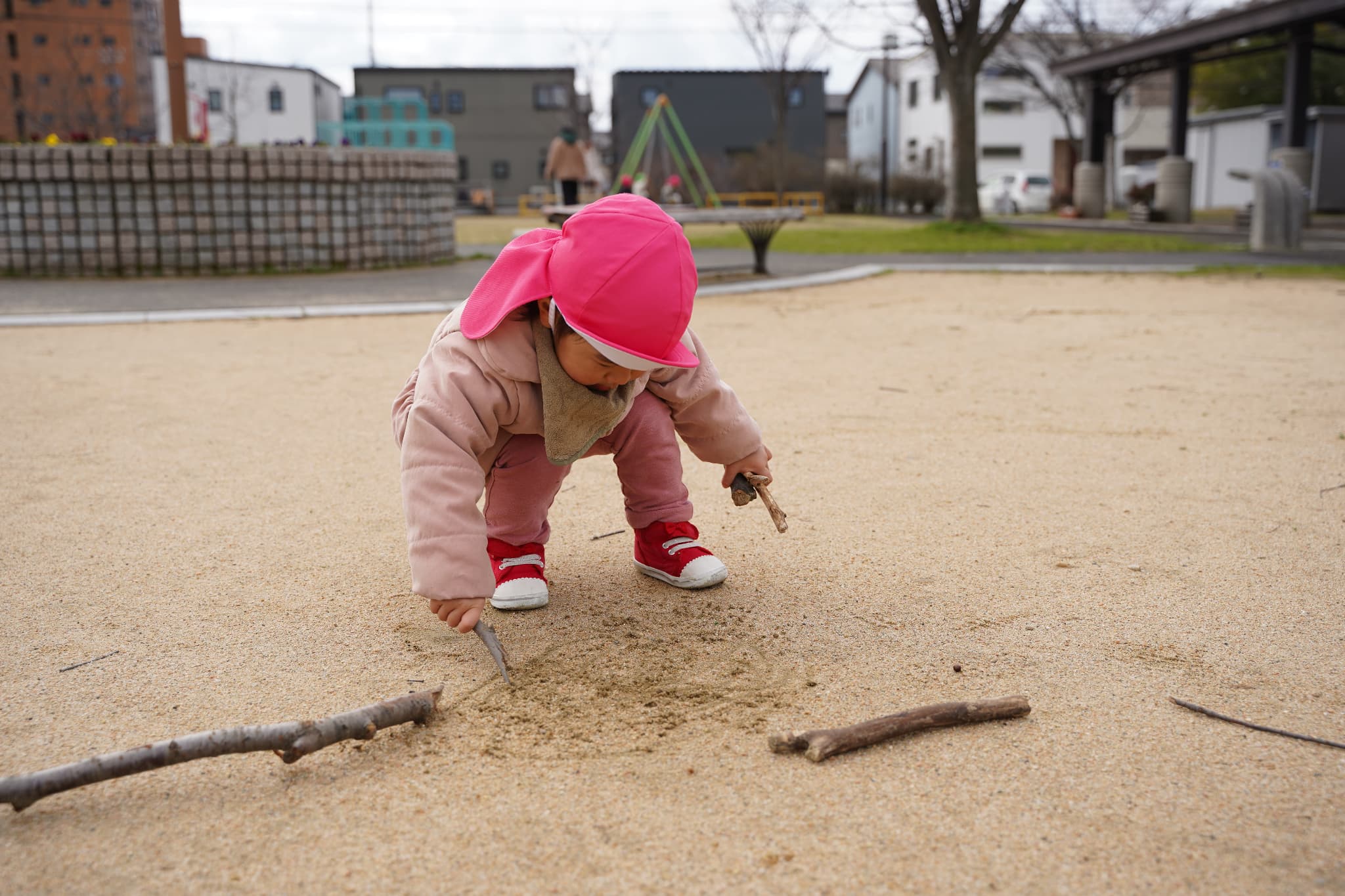 公園に着いてすぐ木の枝探しを始める子ども達。