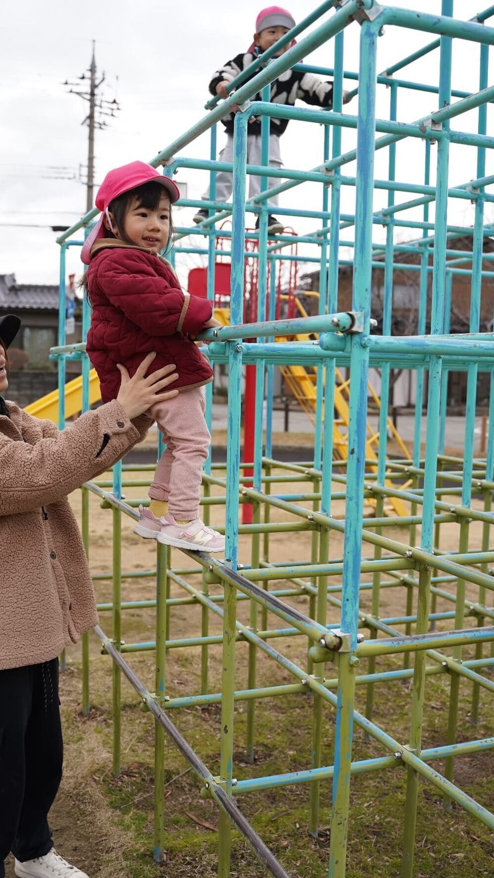 ジャングルジムのこんなに高くまで登れることにびっくり😳