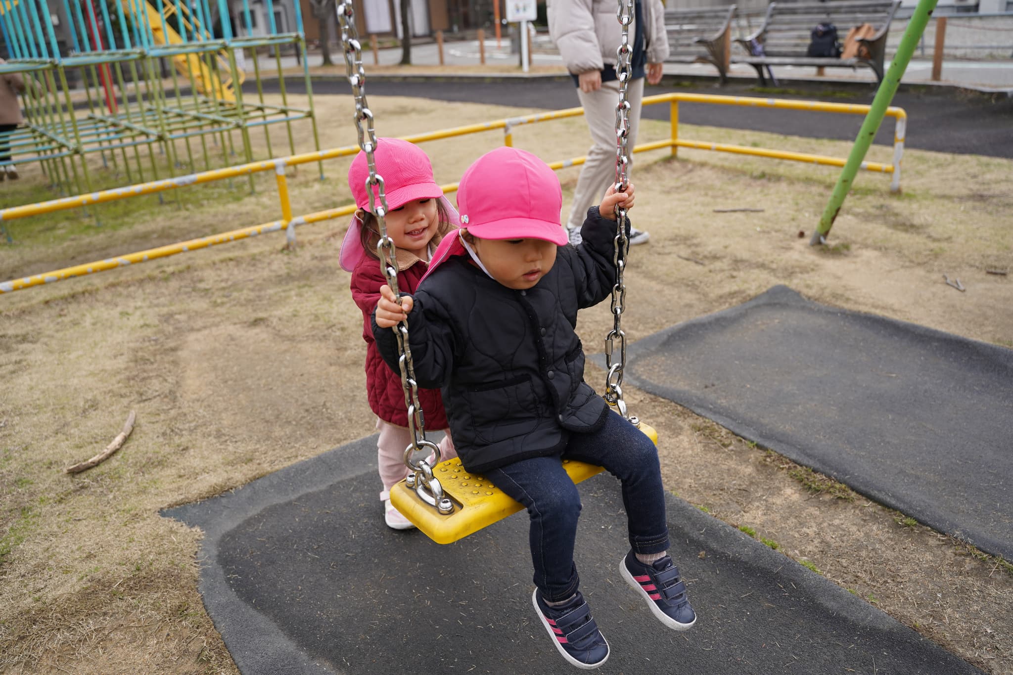 ブランコを押し合う姿もありました♡