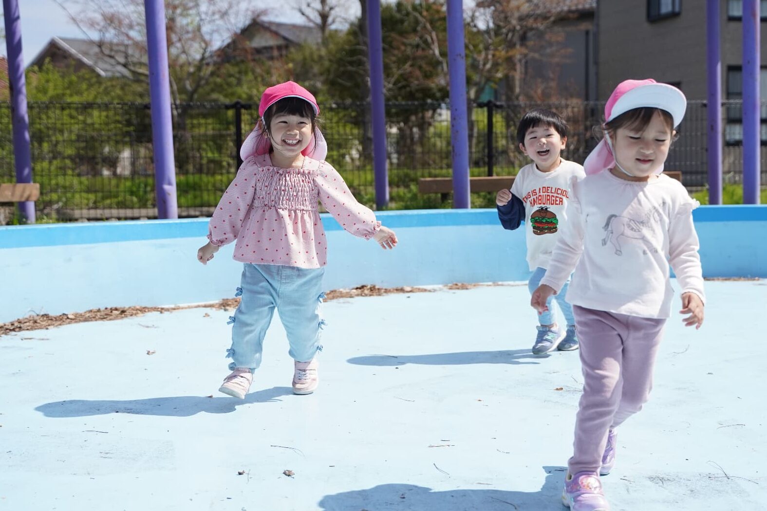 公園についてすぐ、プールの中でかけっこが始まりました!