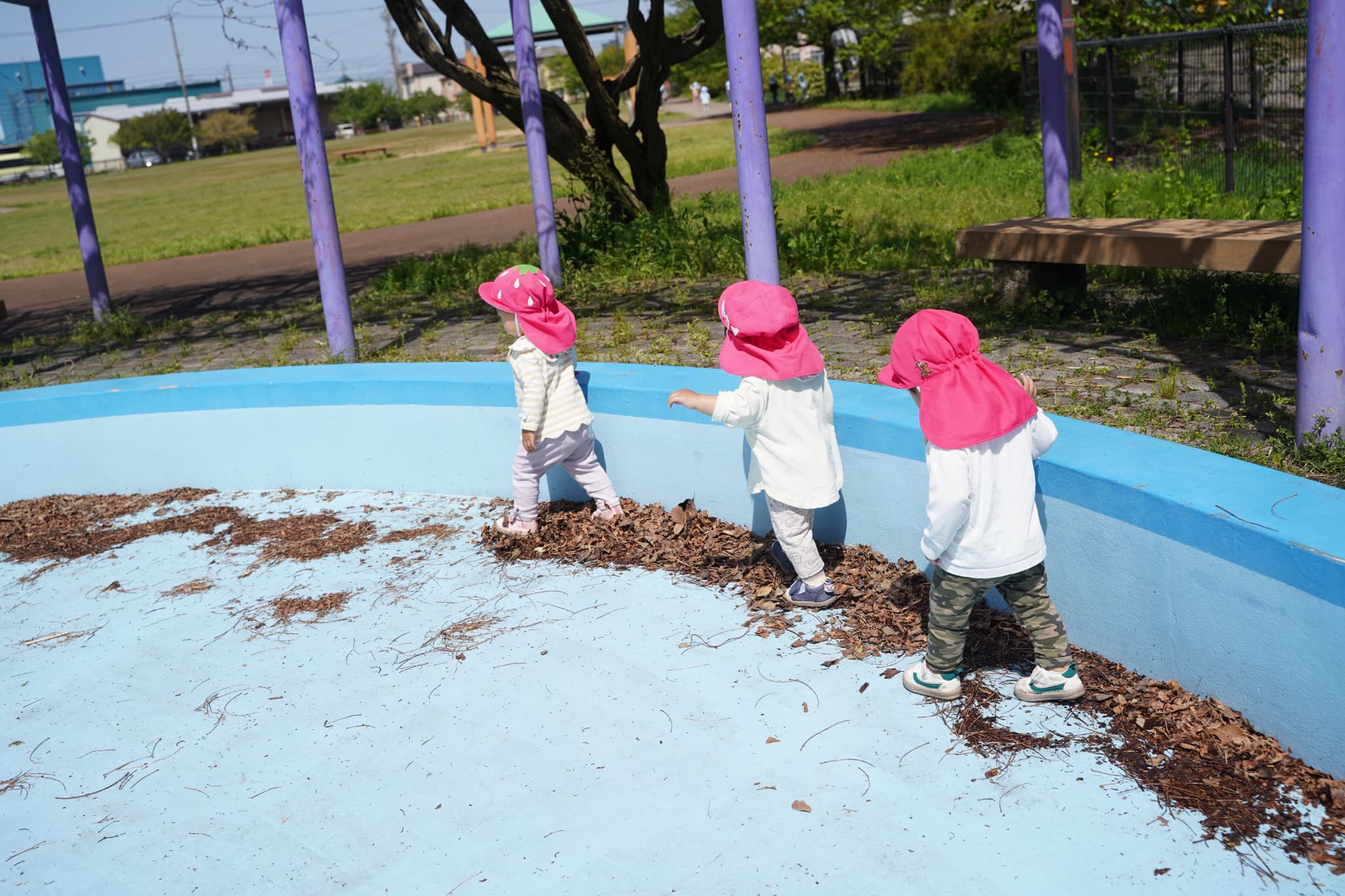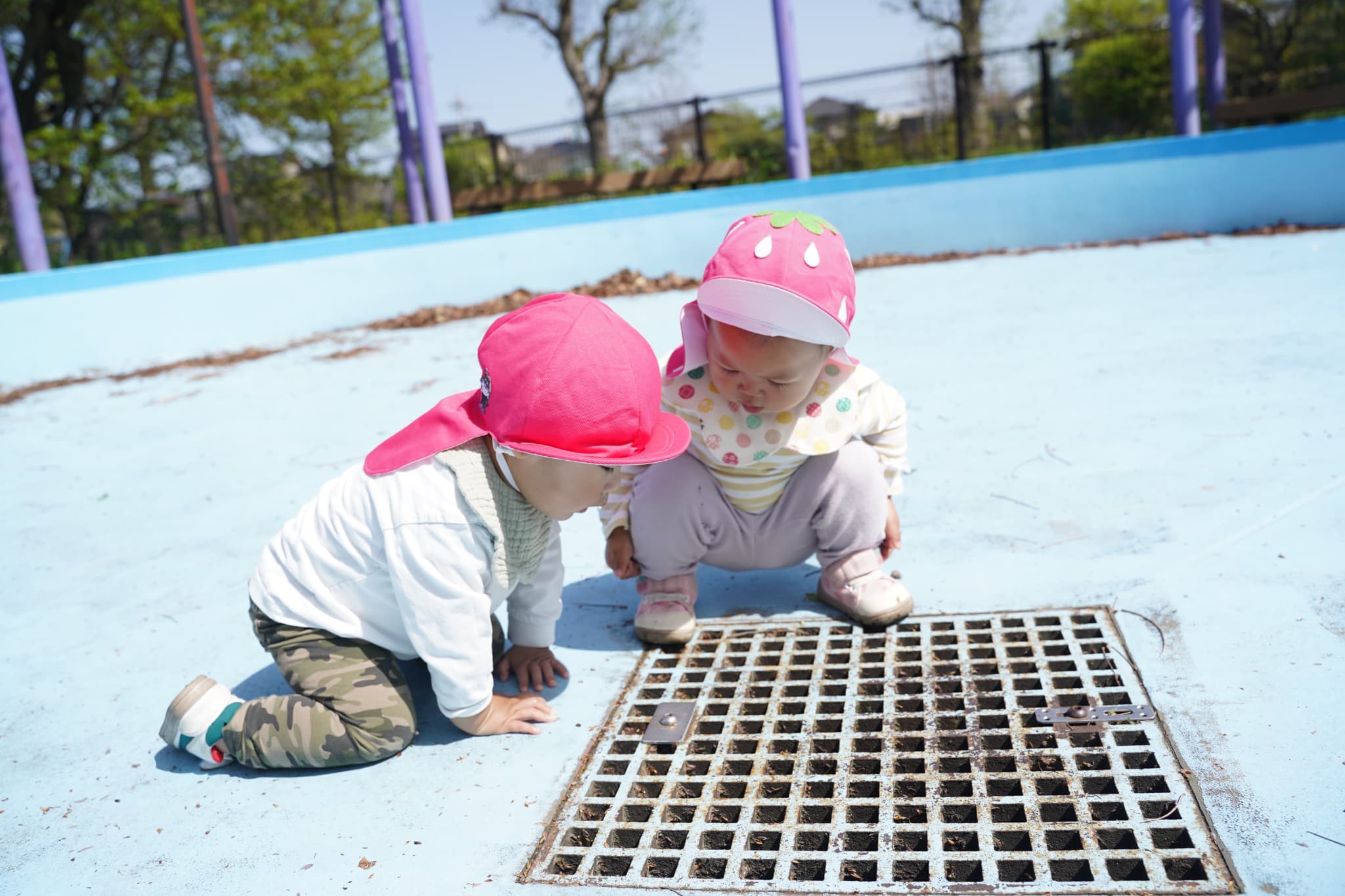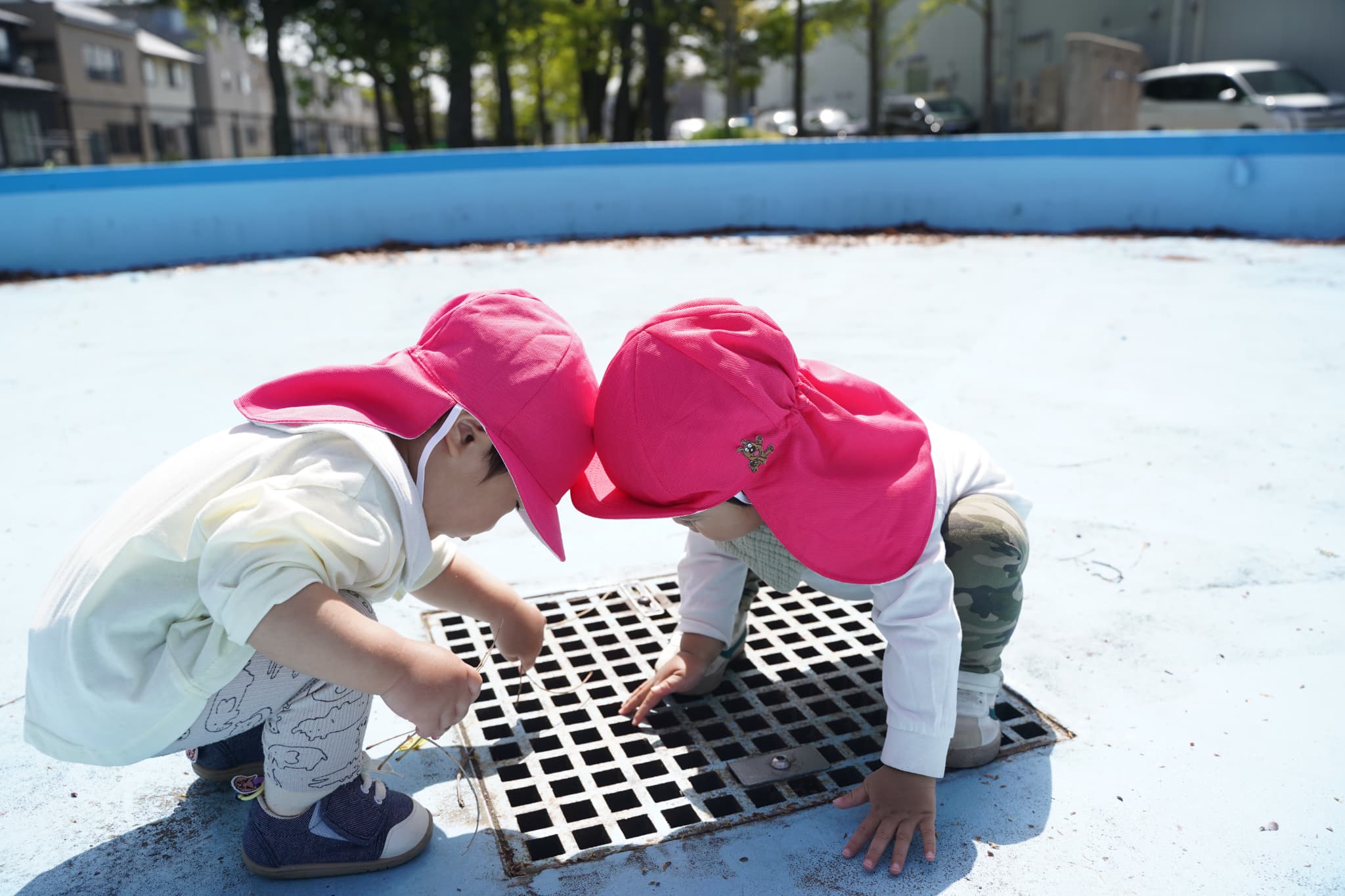 すぐに溝の中に葉っぱや気の棒を入れるのが楽しくて夢中になっていましたよ👀