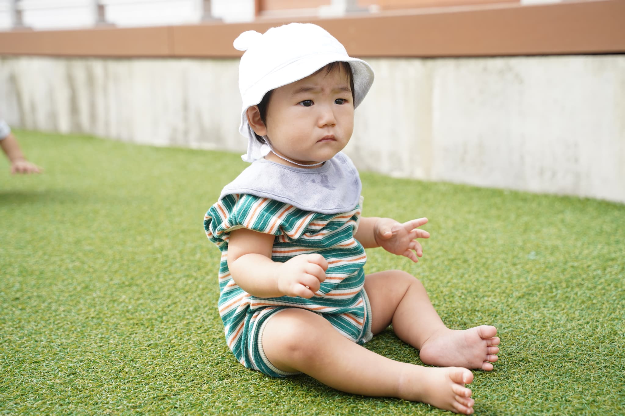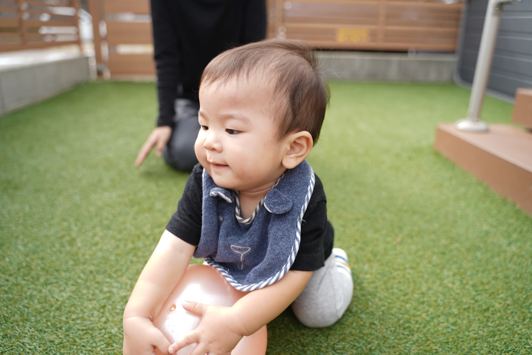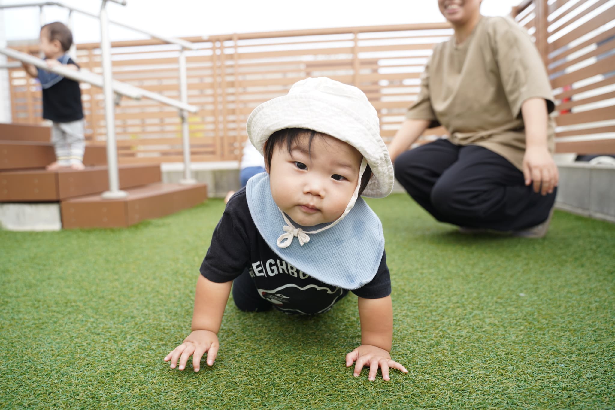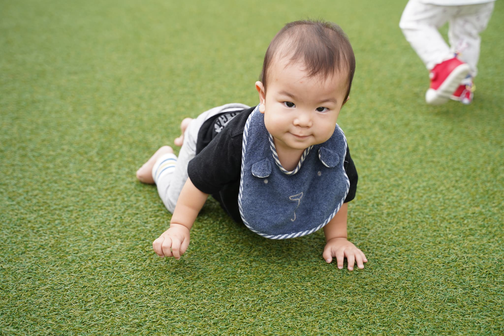 芝生の上もひっちゃらでハイハイで動き回っていました🤗