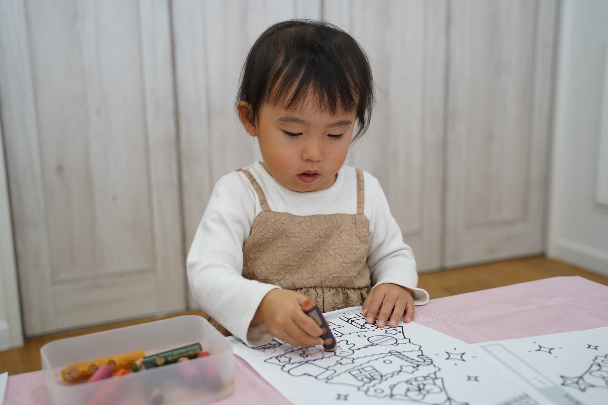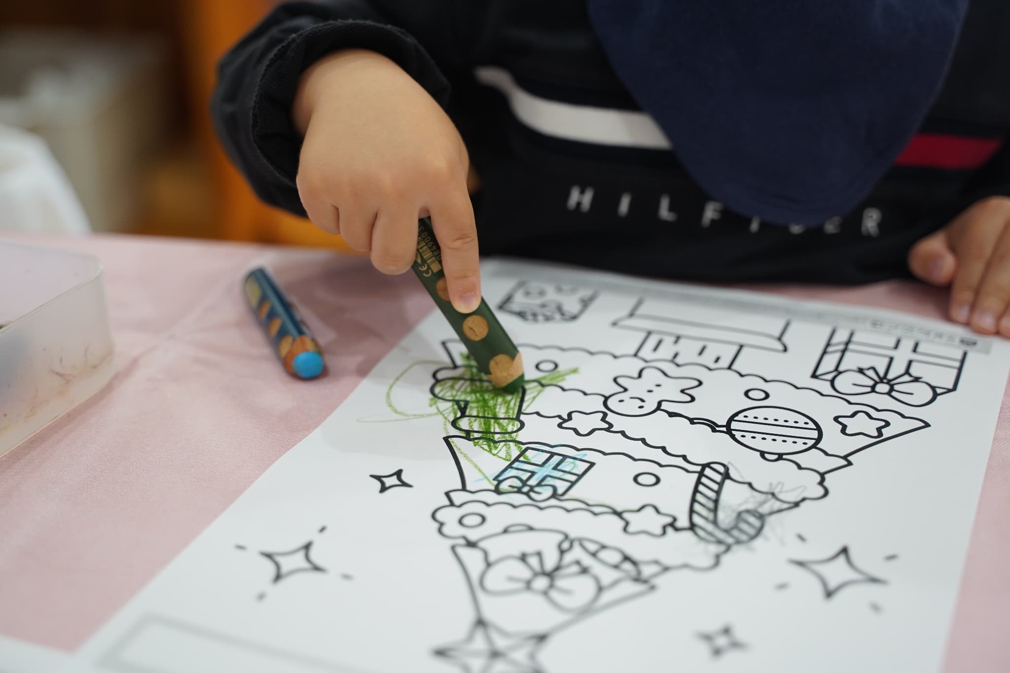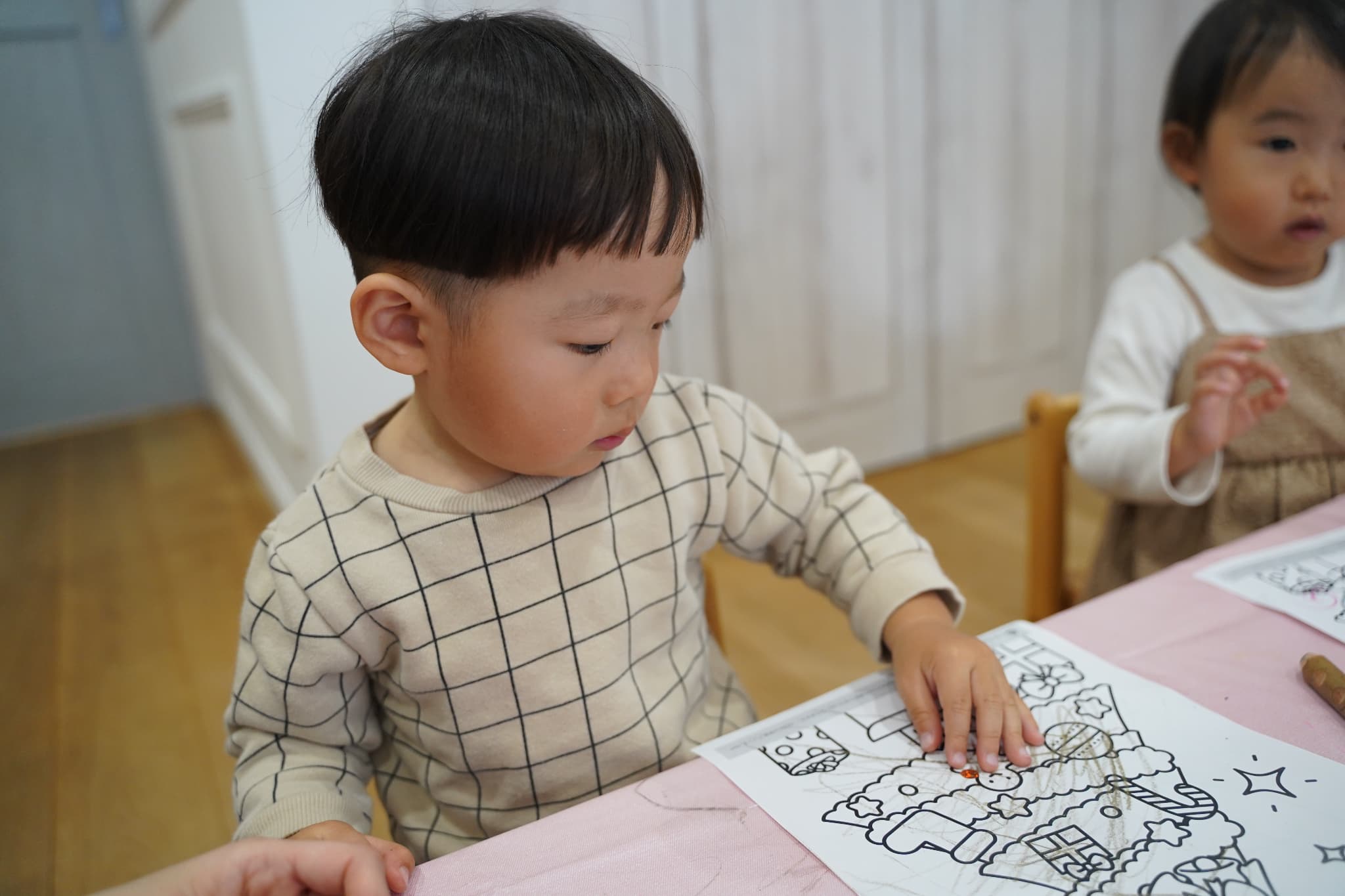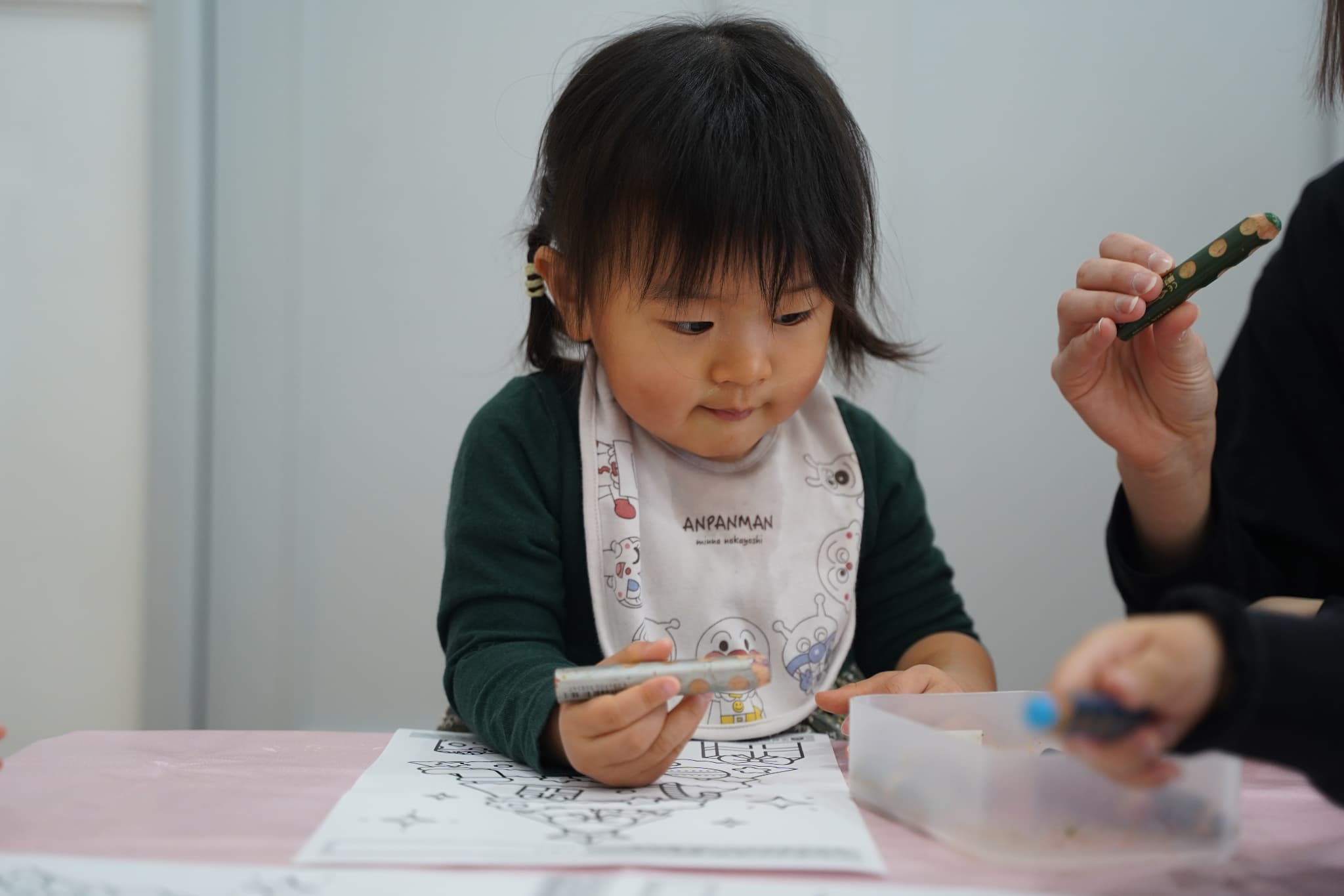 しばらくクレヨンで塗り絵を楽しんだ後にシールも用意しました。