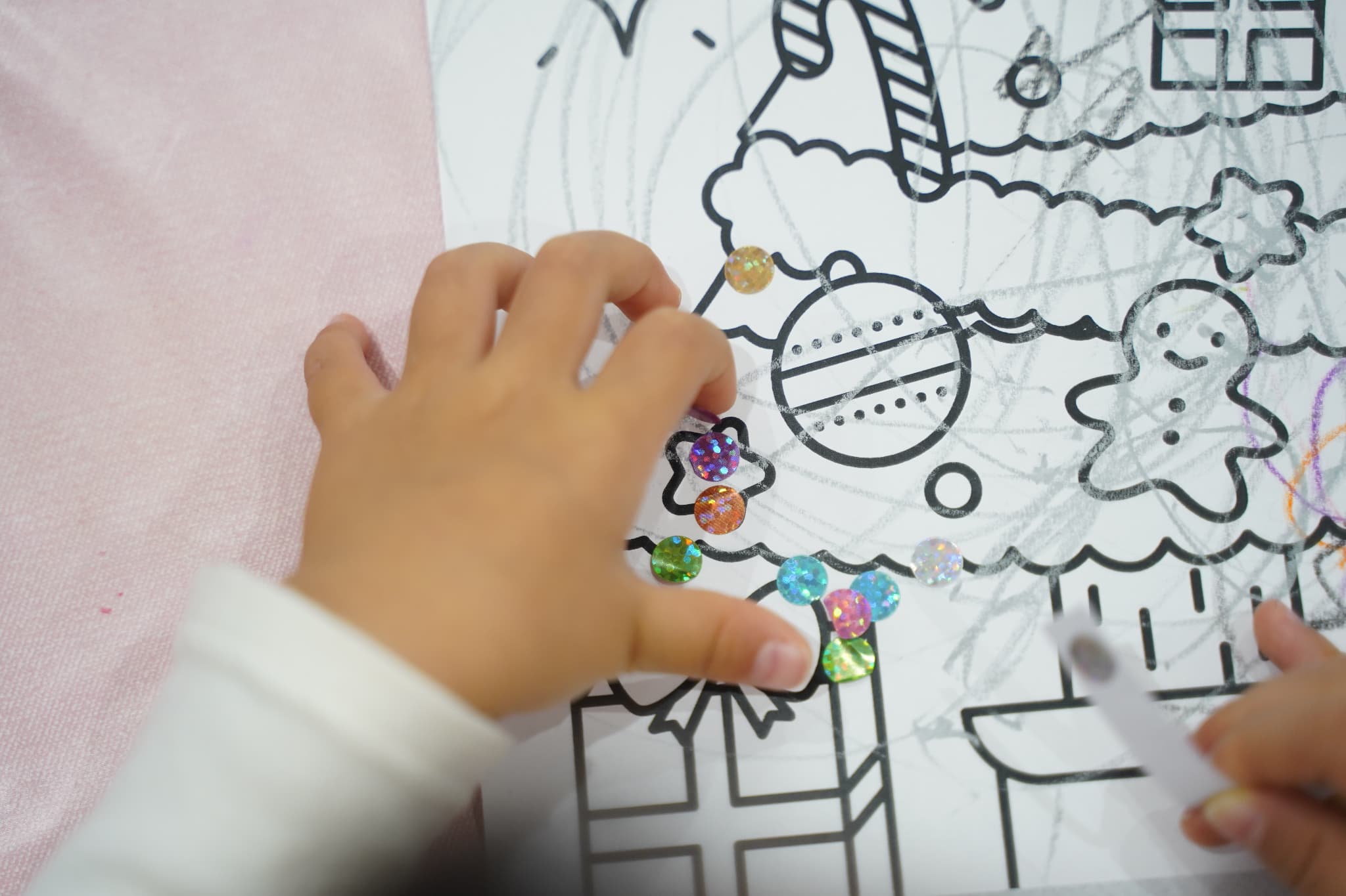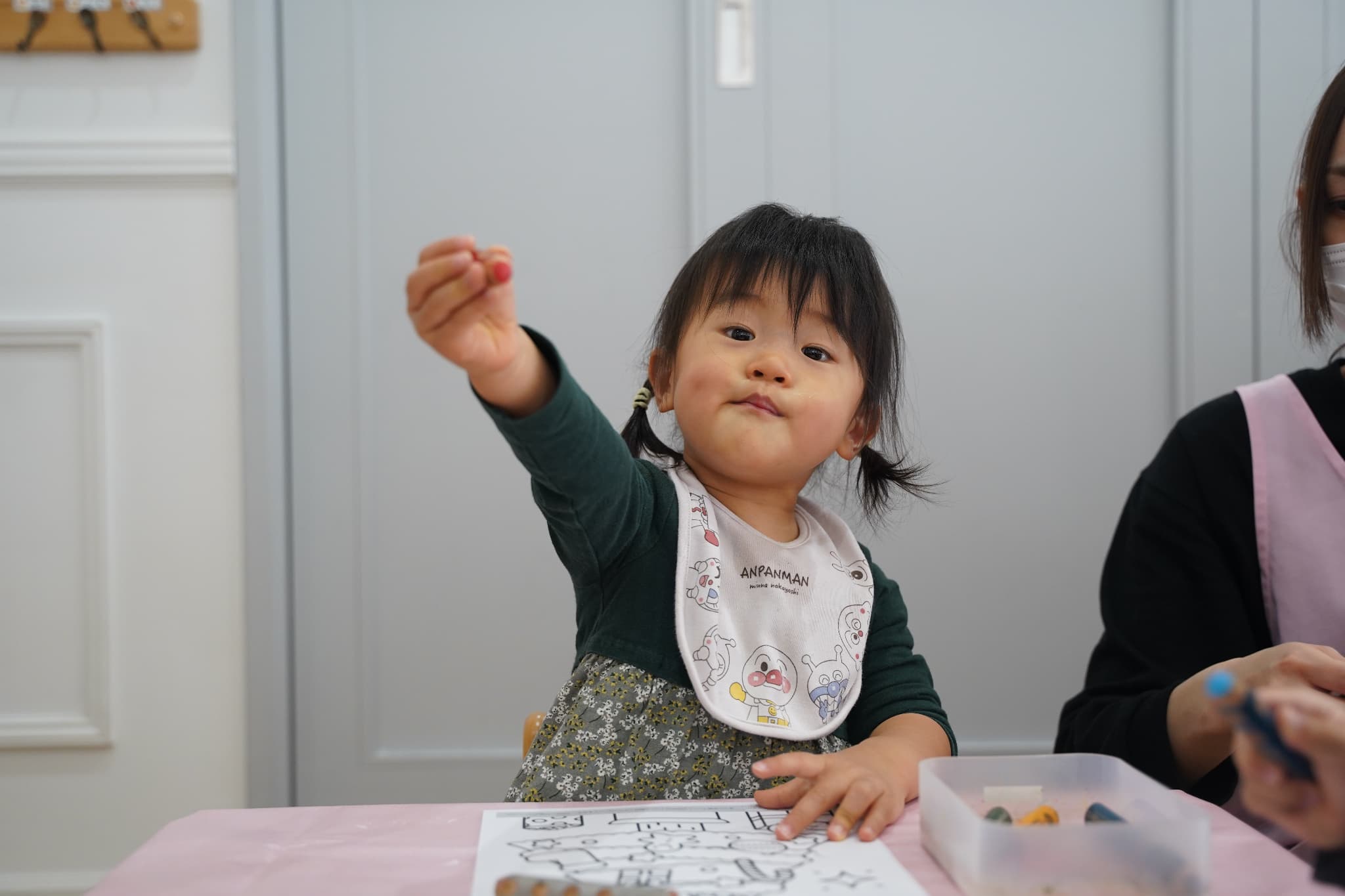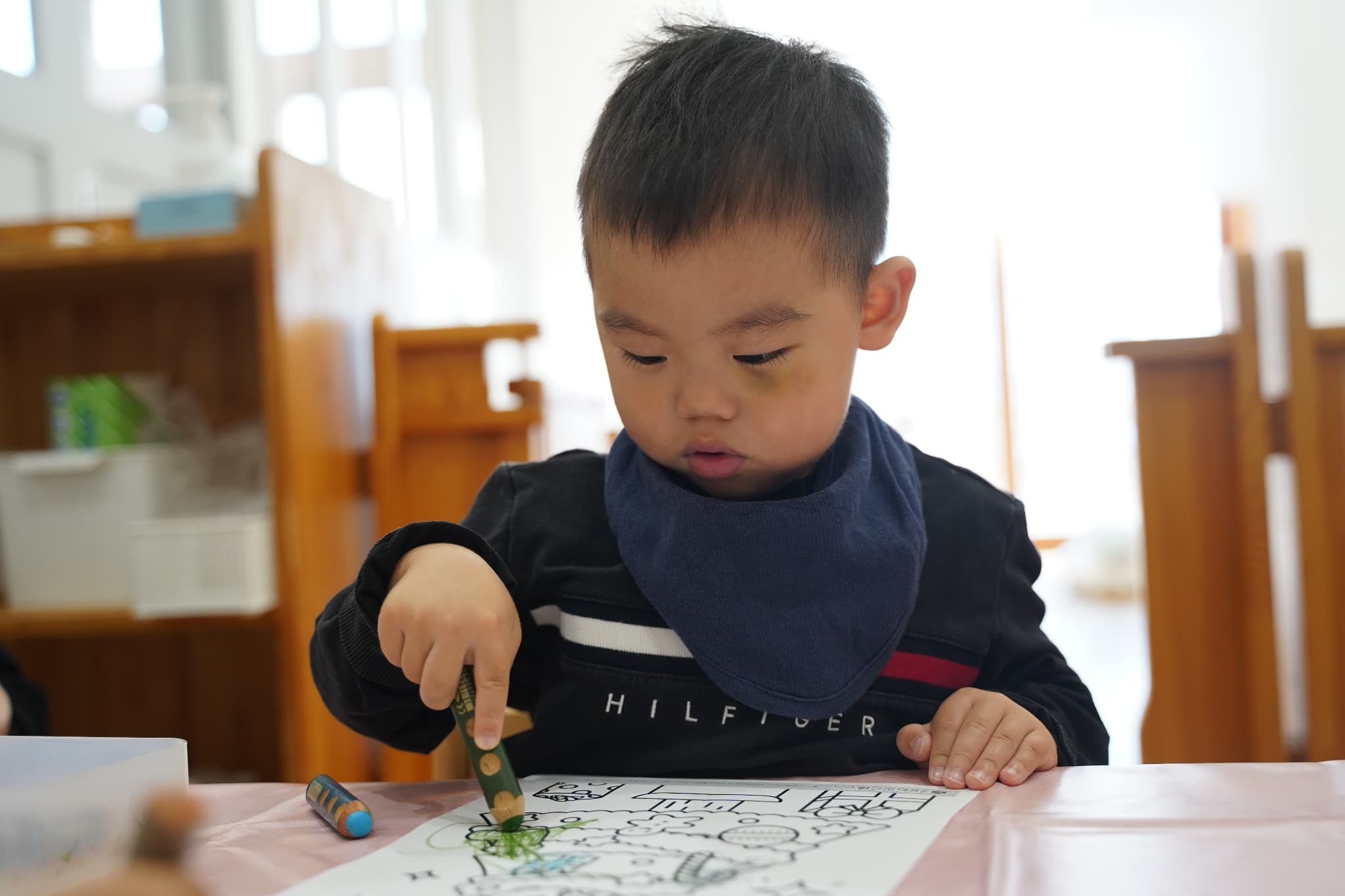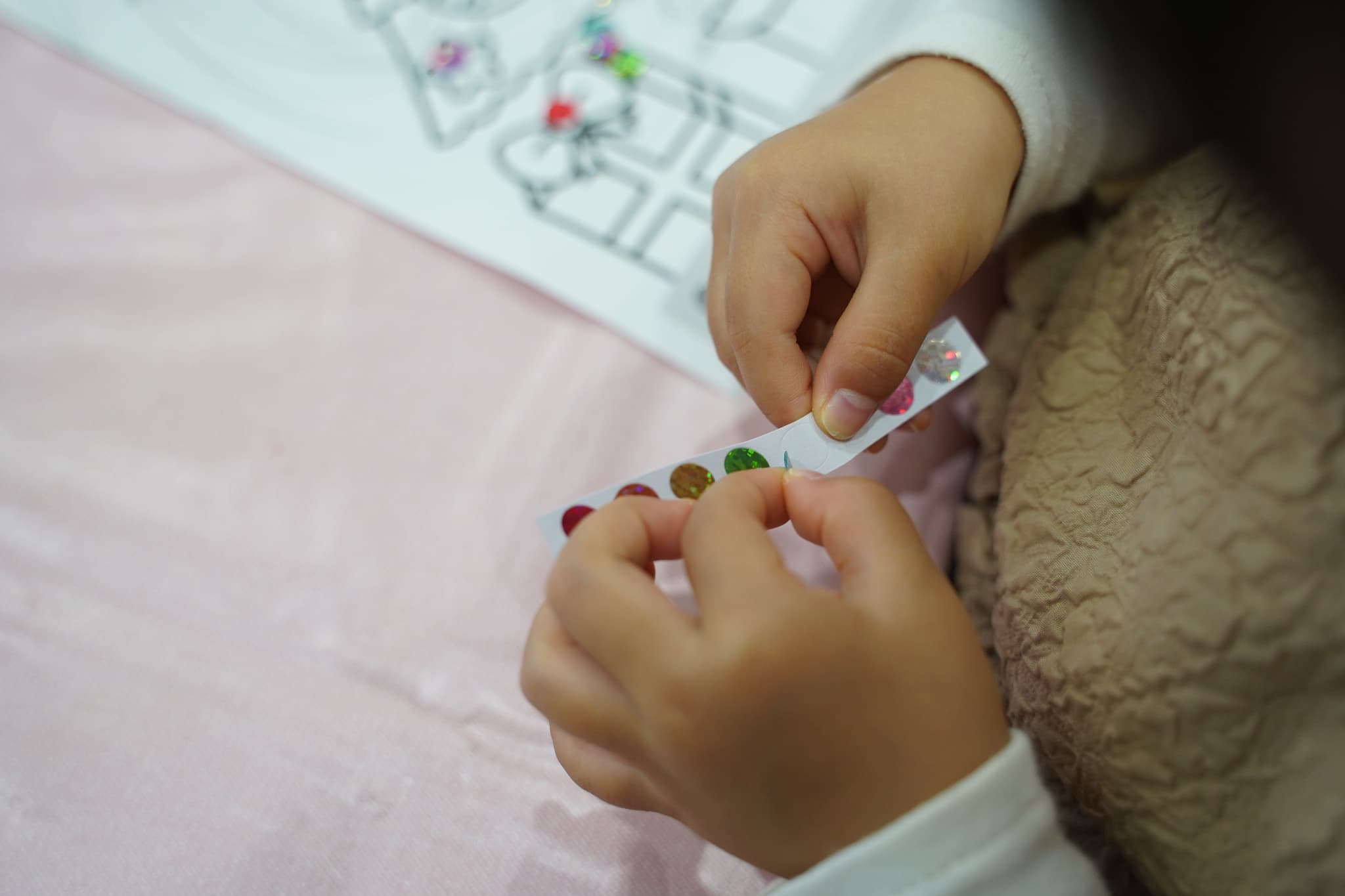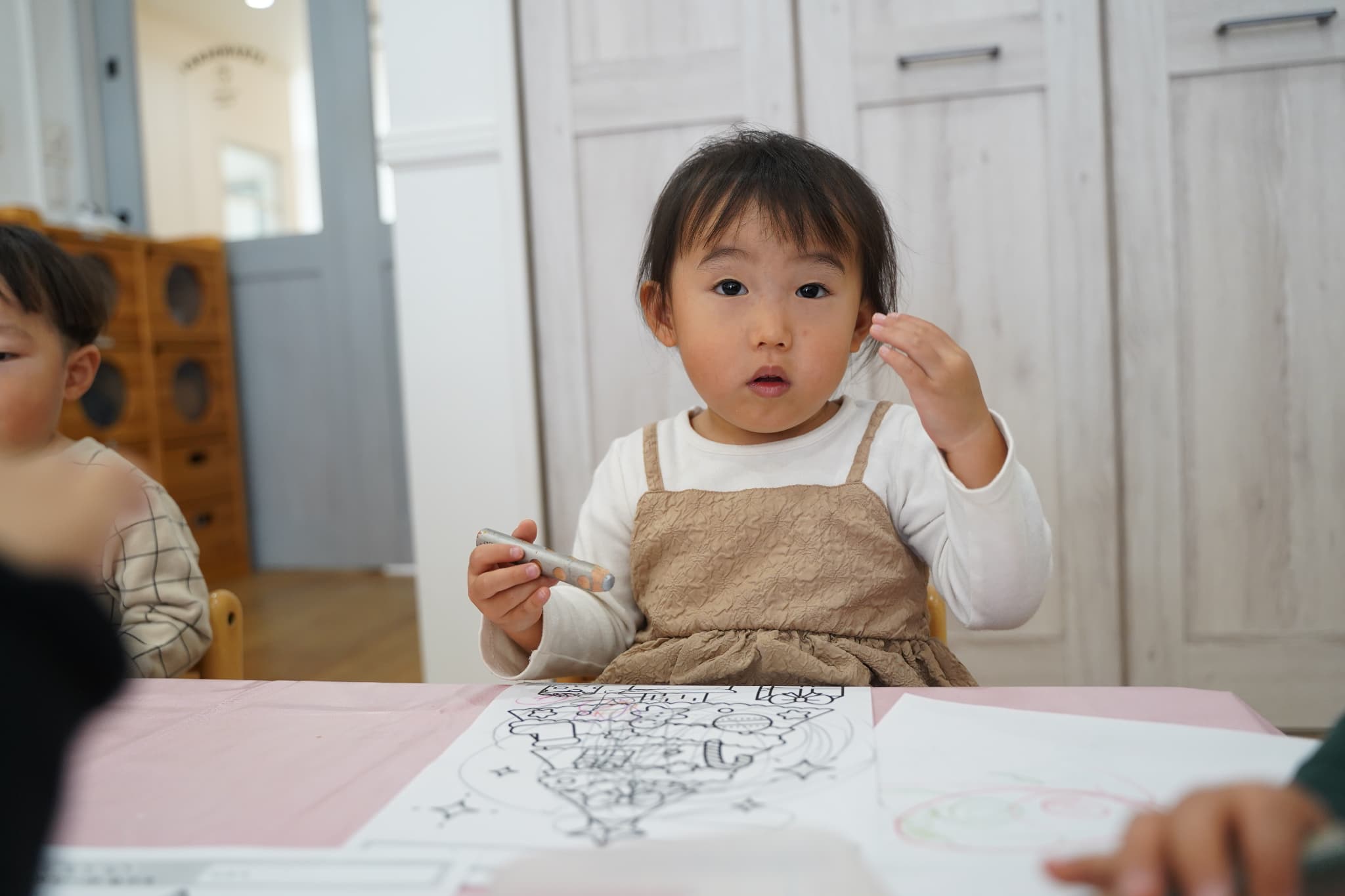 しばらくクレヨンで塗り絵を楽しんだ後にシールも用意しました。