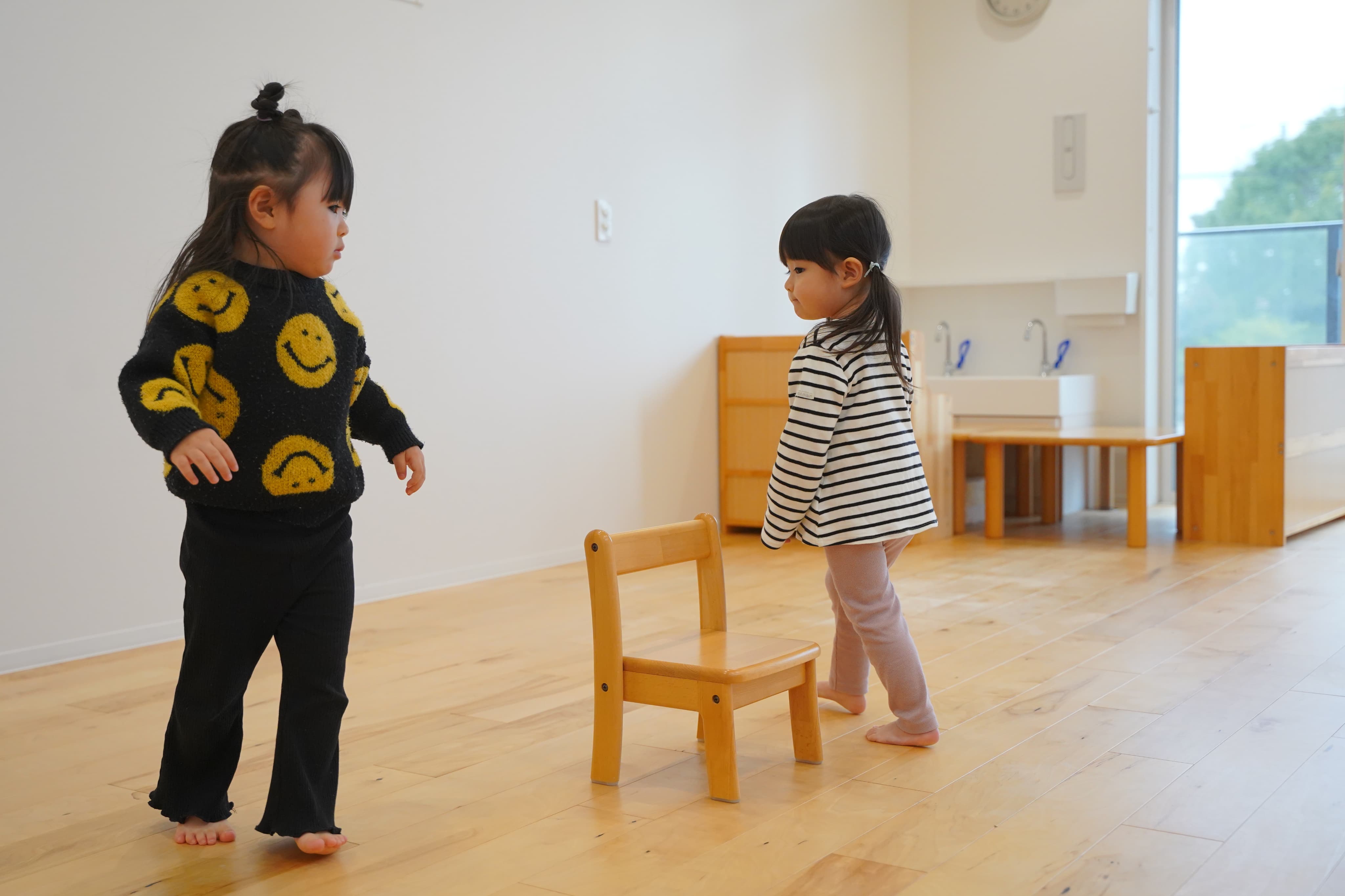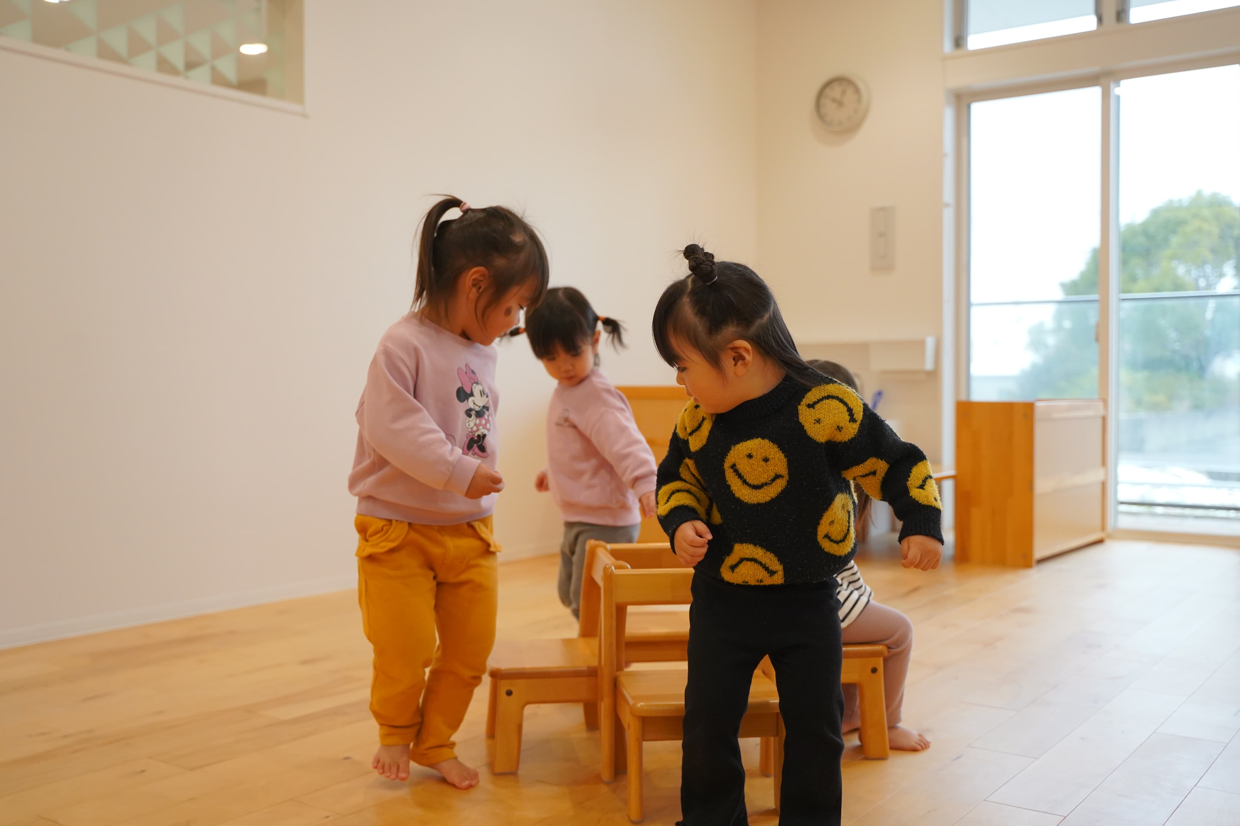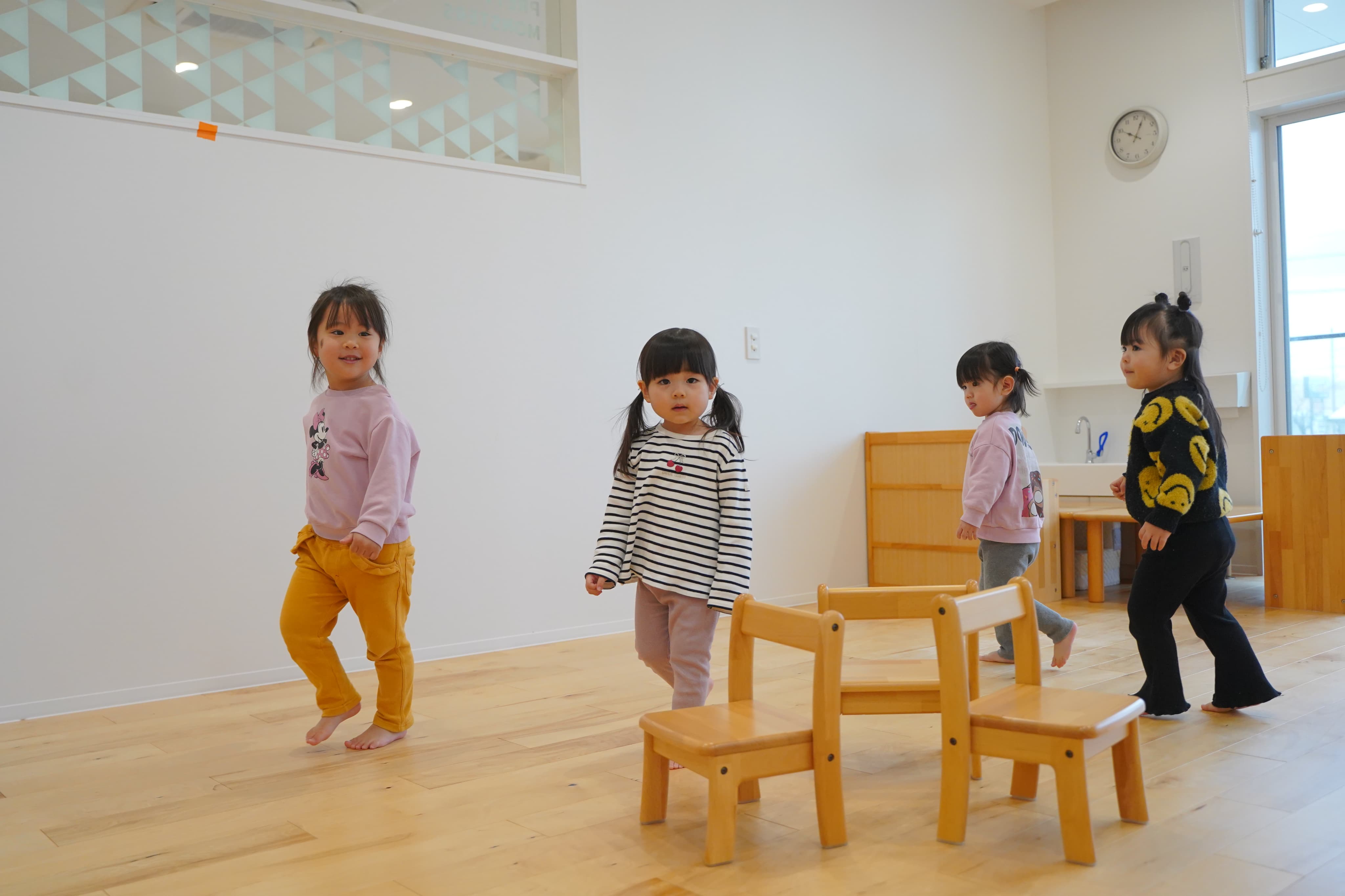 音楽が止まると近くの椅子に向かうみんな💨