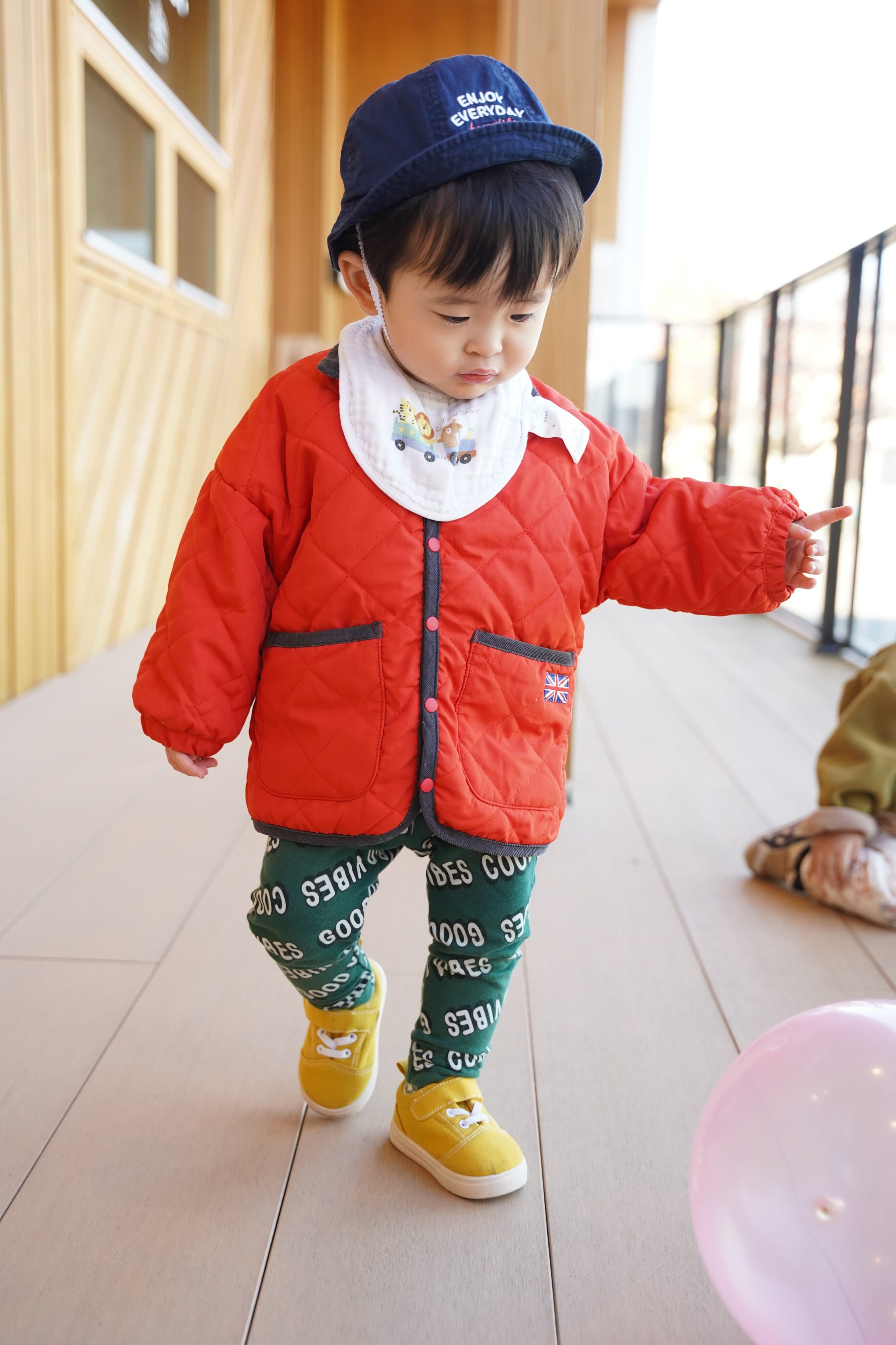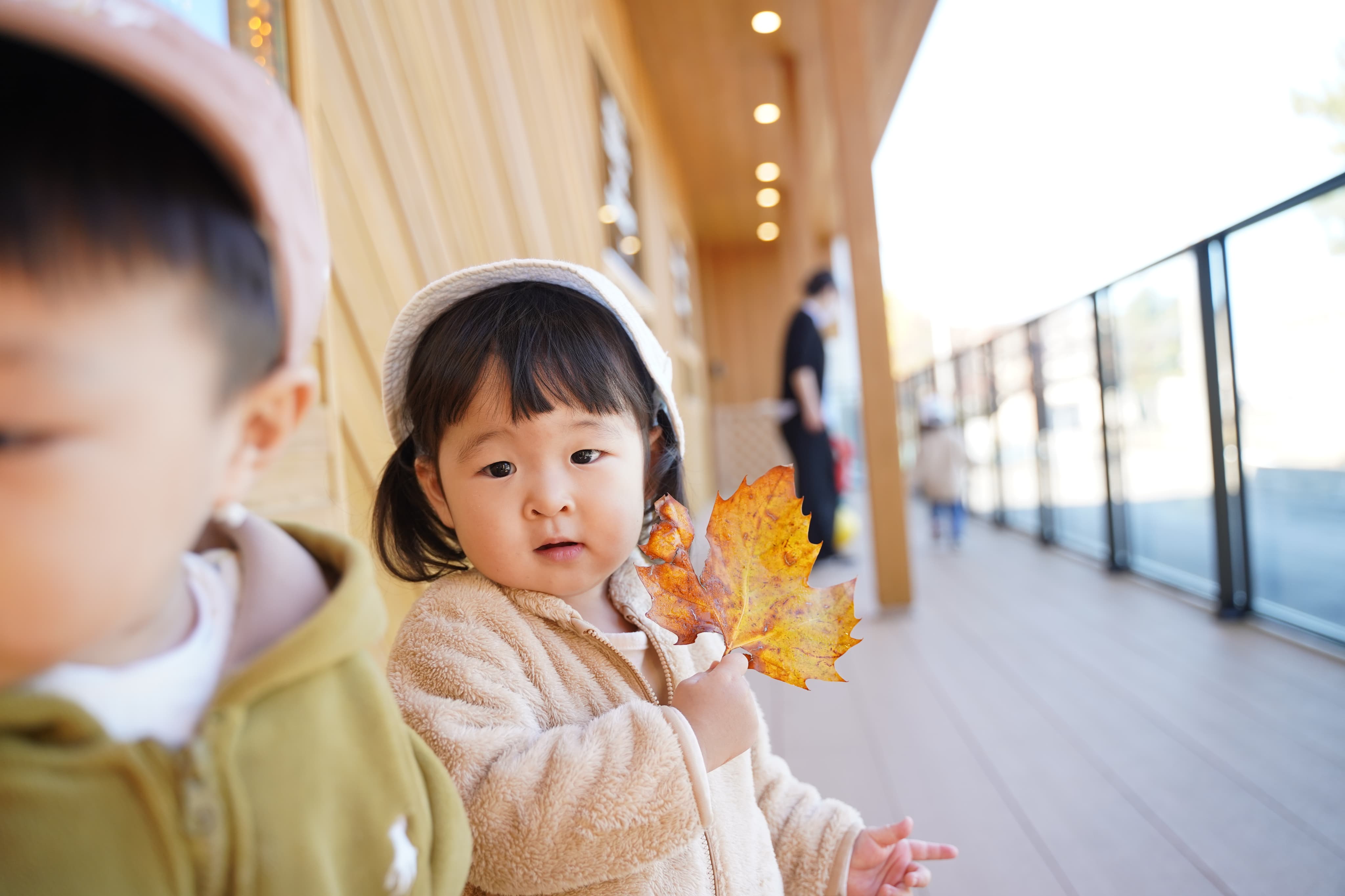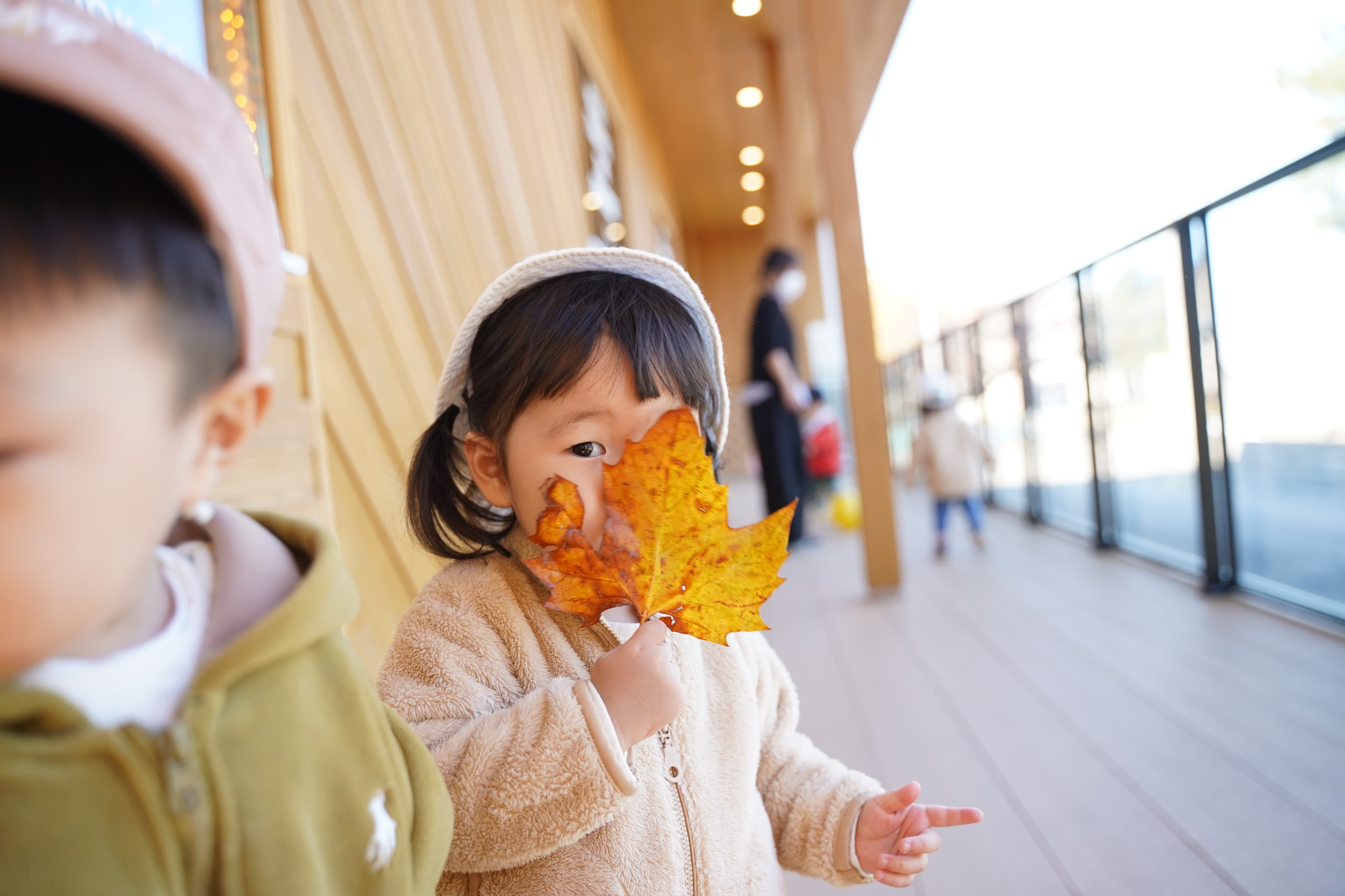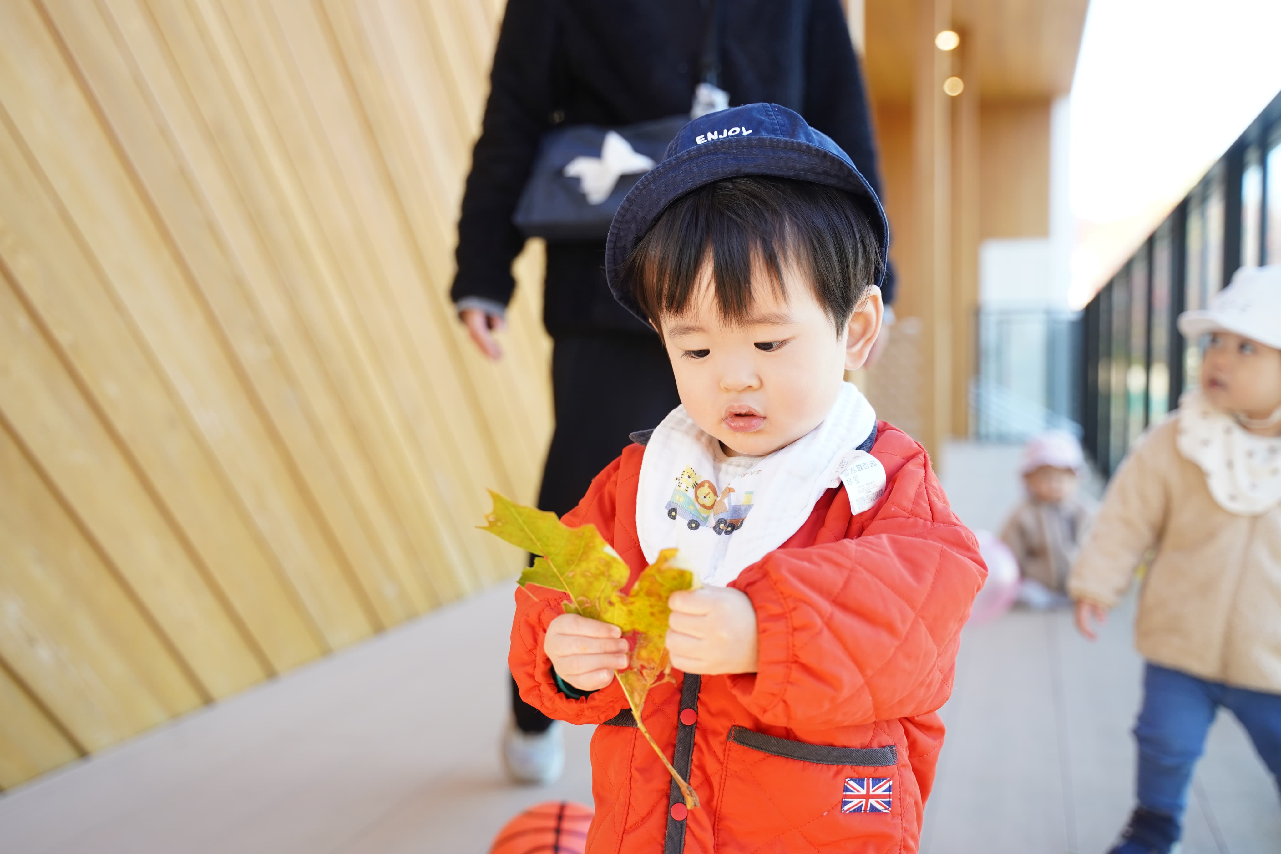 テラスで遊んでいると、前の道に大きな葉っぱが落ちているのを発見💡