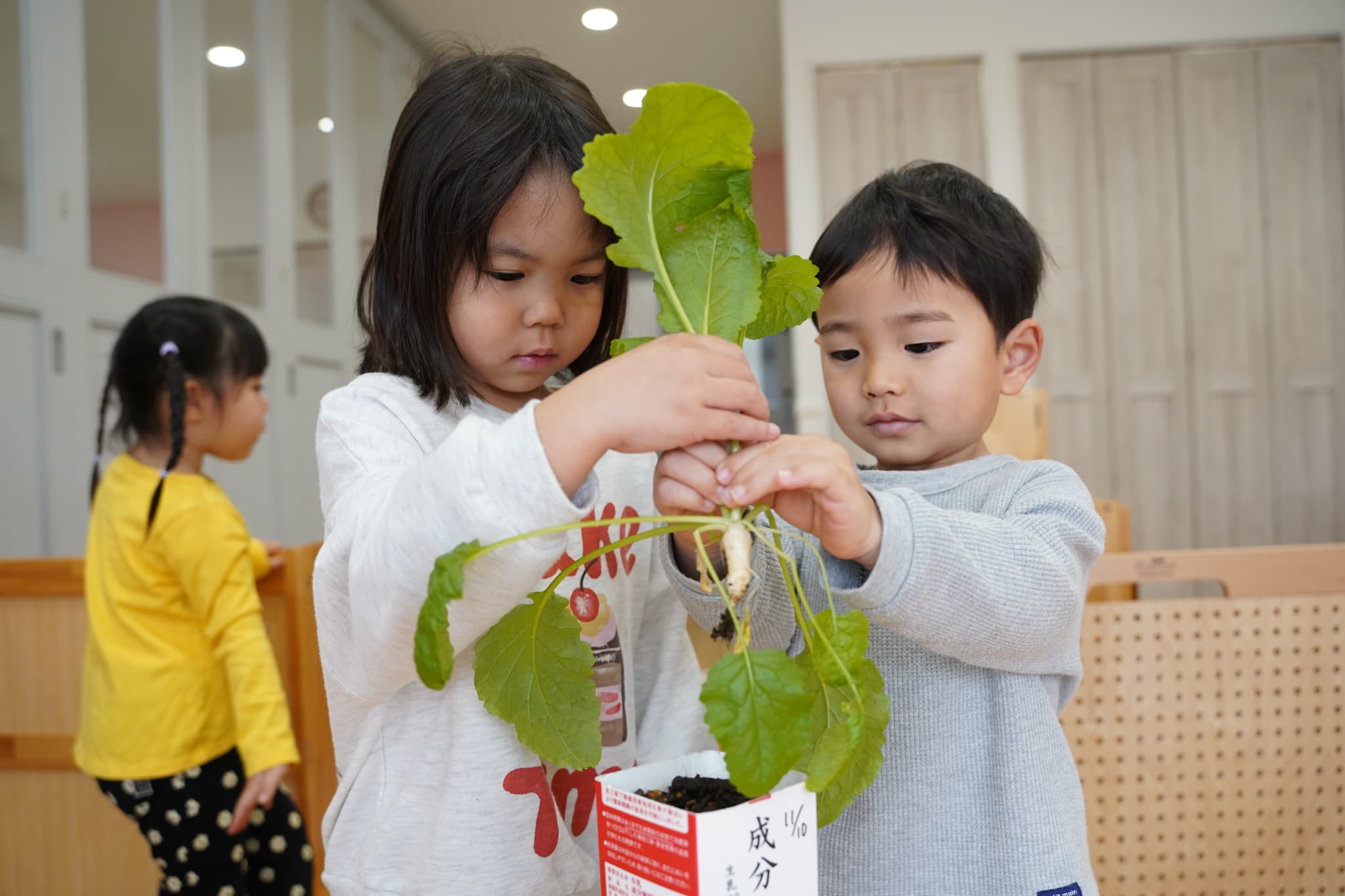 朝から蕪の変化に気づき、葉っぱを今日も観察する子どもたちでした☺️