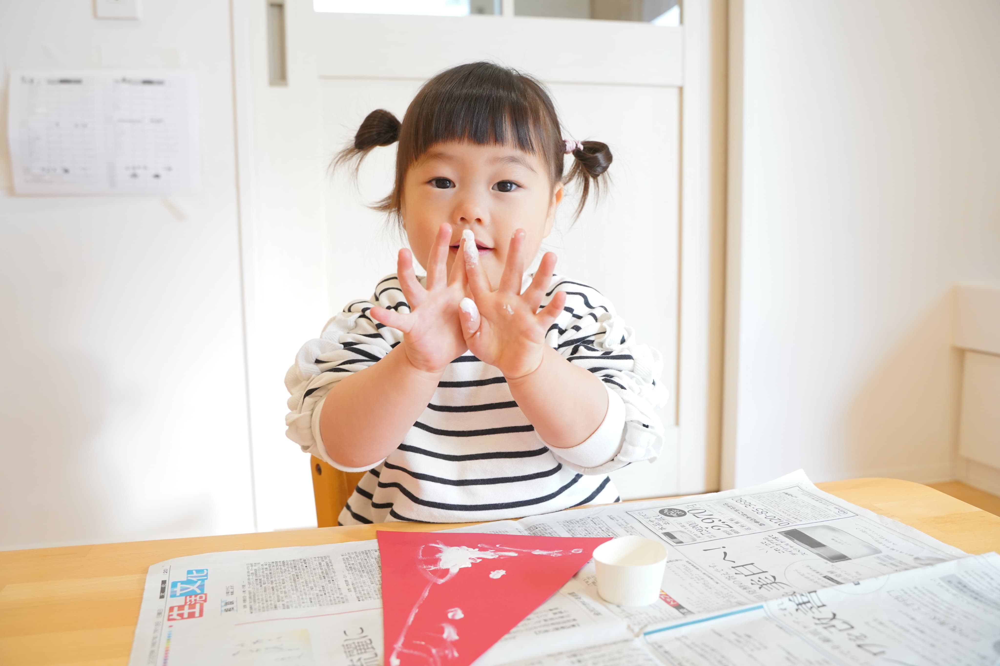わたしは、昨日同様クリスマス製作で指スタンプをしました🎨