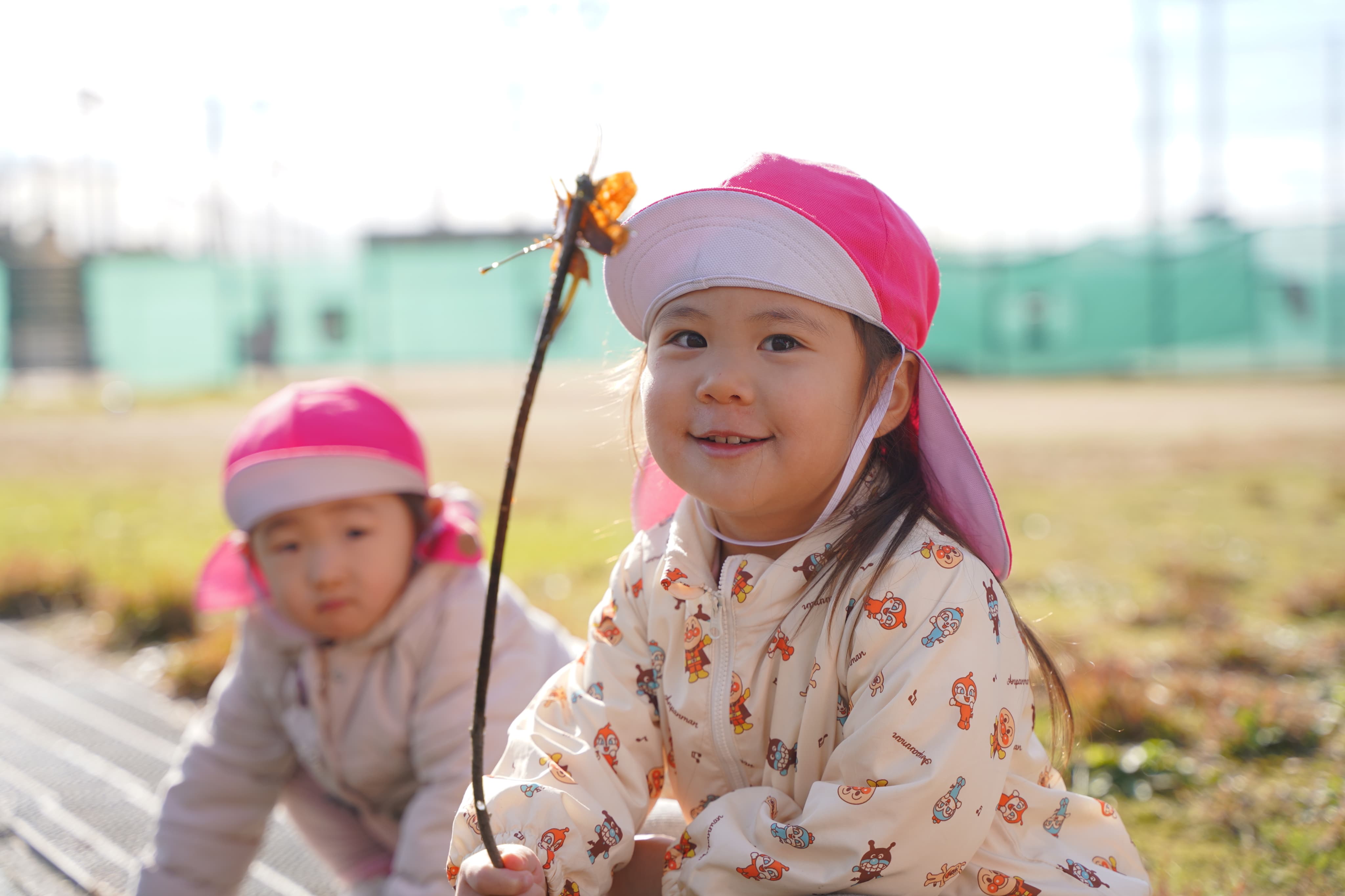 大きな水たまりを発見!「葉っぱ釣りしてる〜」とお友だちの様子に、みんなも同じように遊び始めます🤭