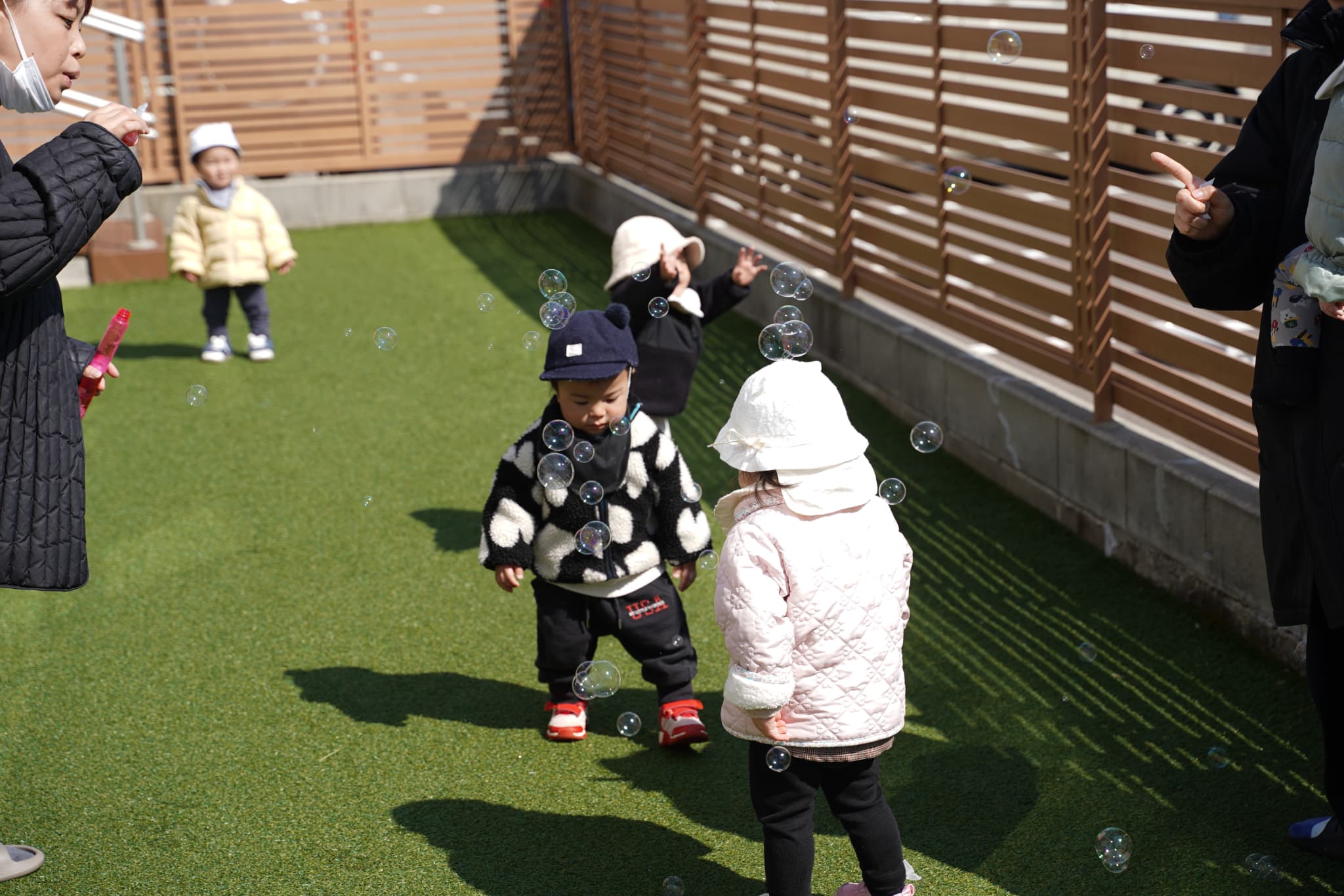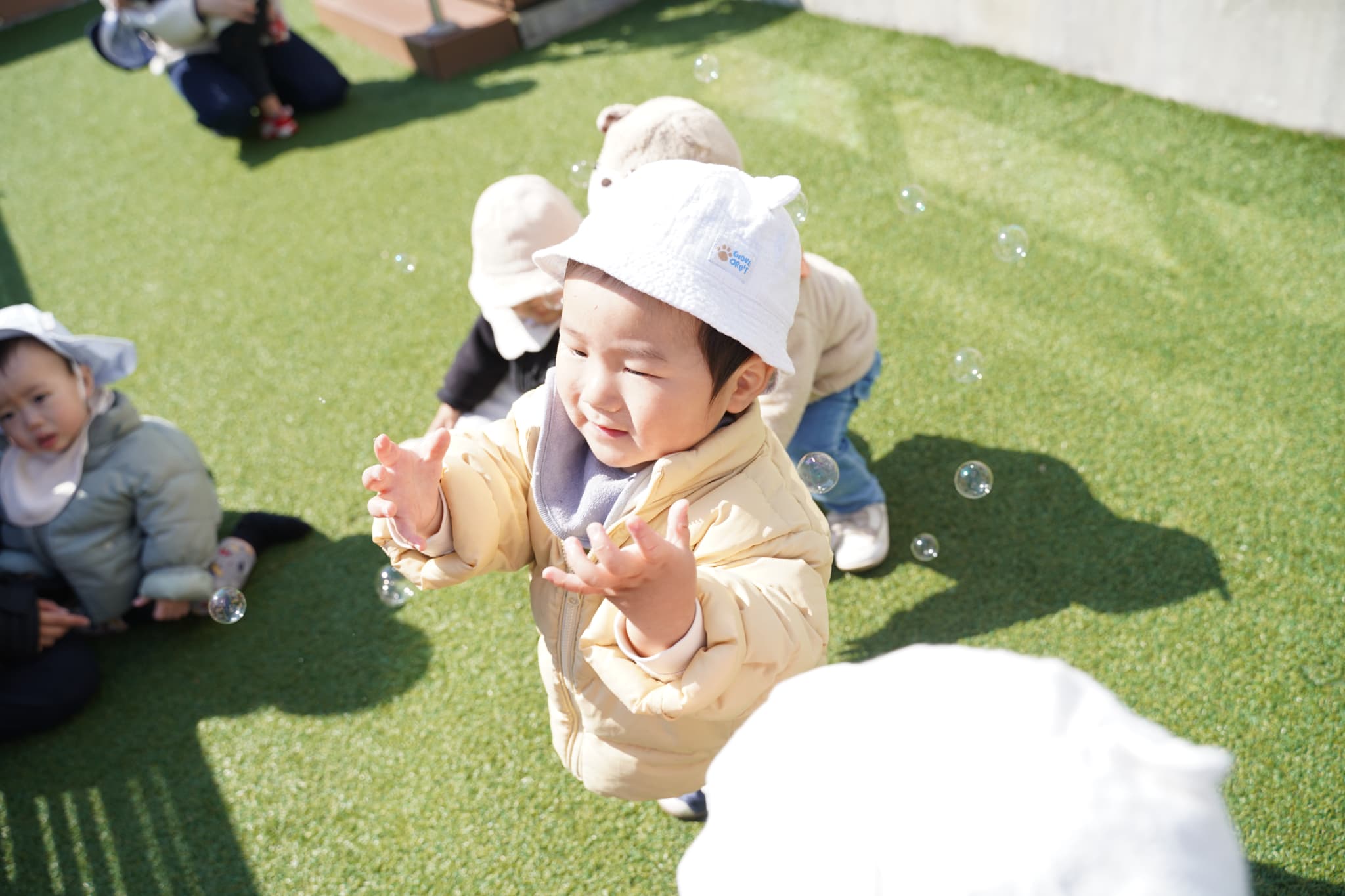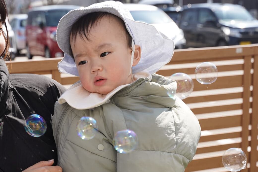 小走りでシャボン玉を追いかけたり、一生懸命に手を伸ばしたりする姿が可愛らしかったです〜!