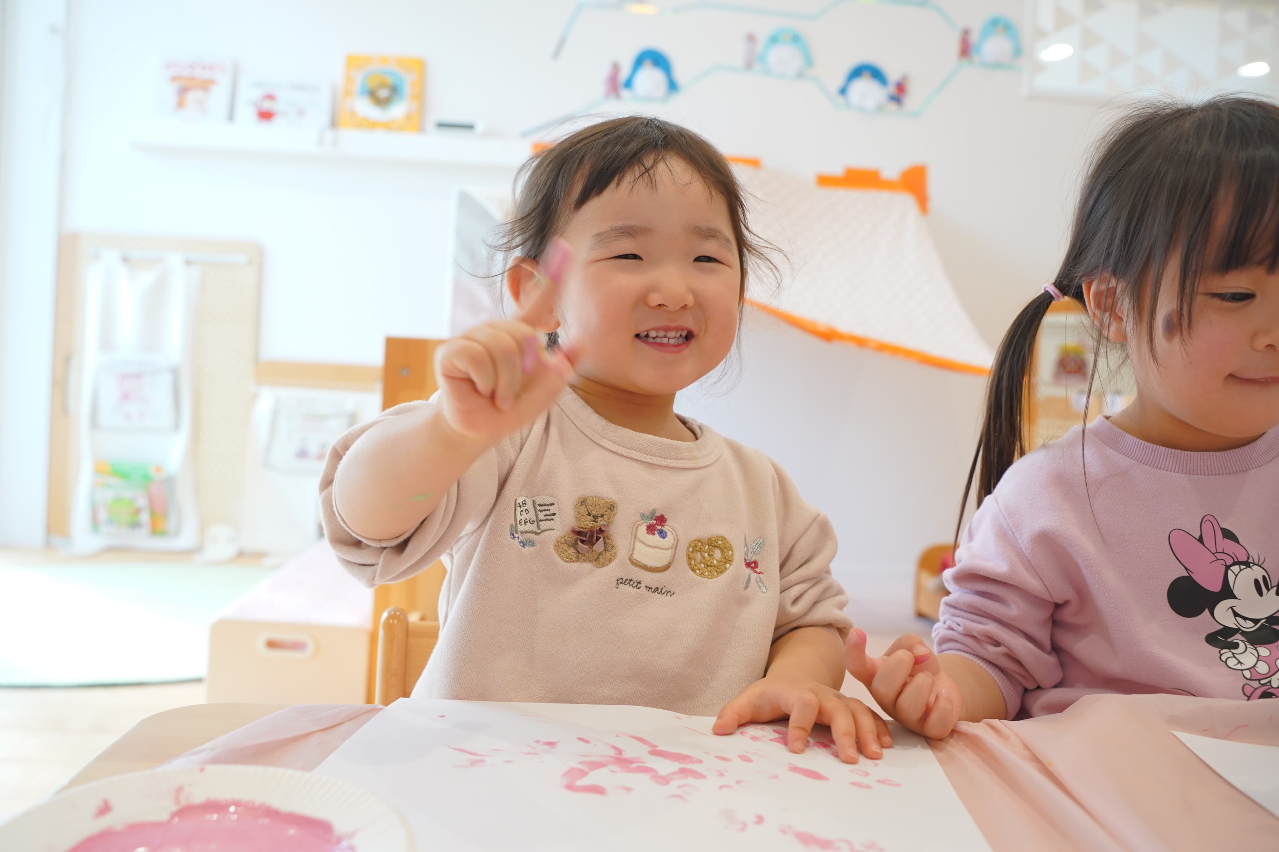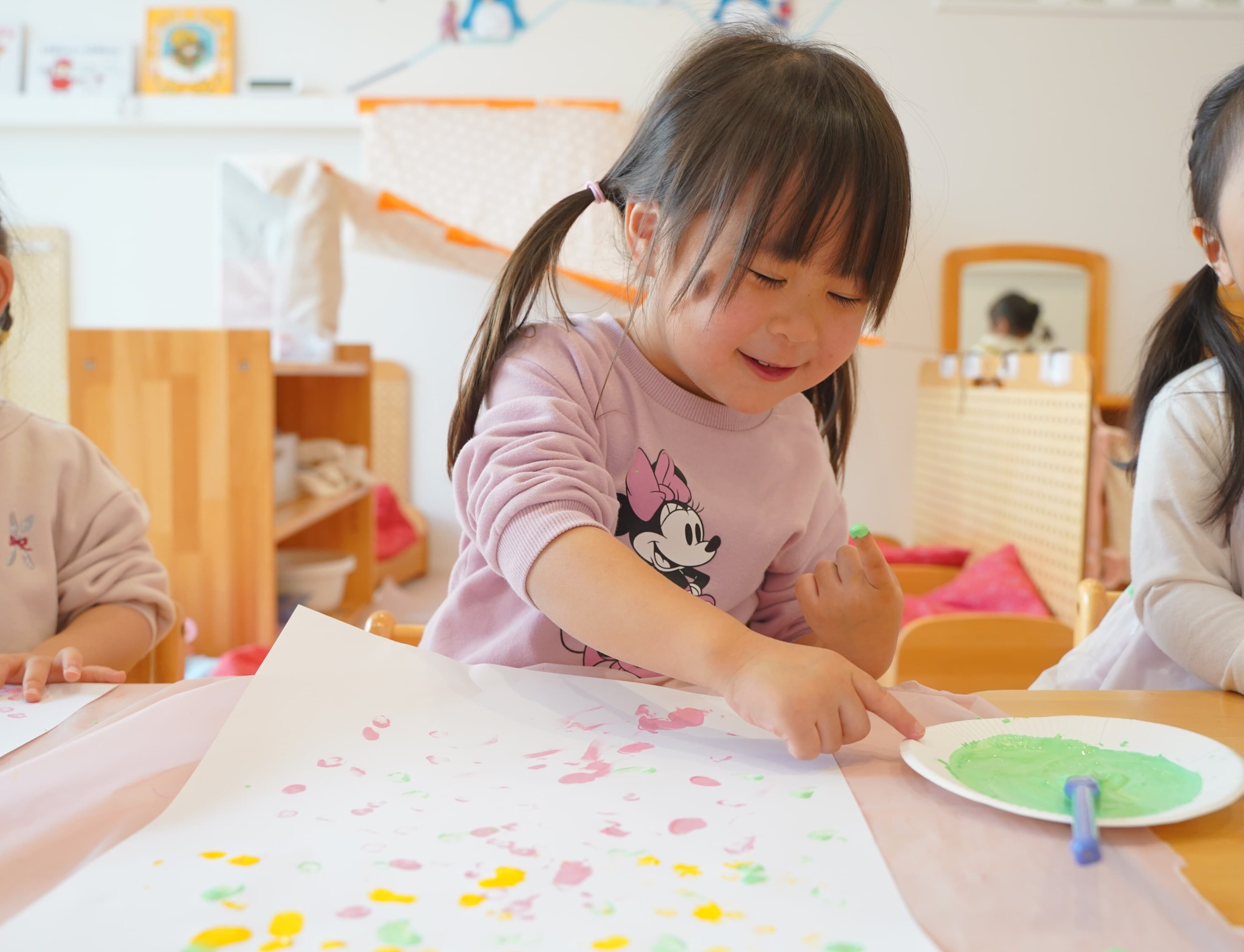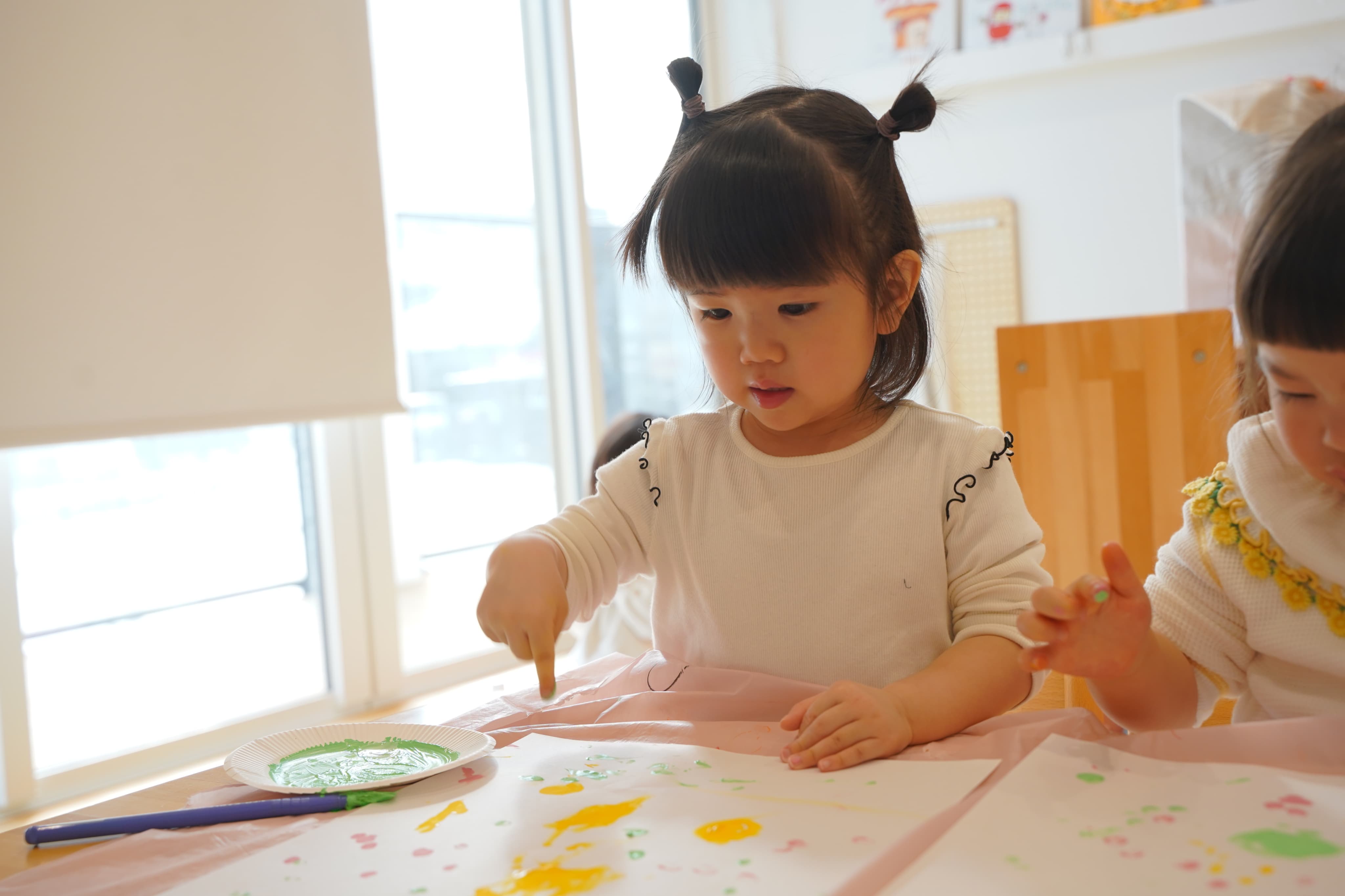 好きな色を選んで、ペタペタっ☝️大きな画用紙いっぱいに自由に表現して、絵の具の感触や色を楽しんでいましたよ💭