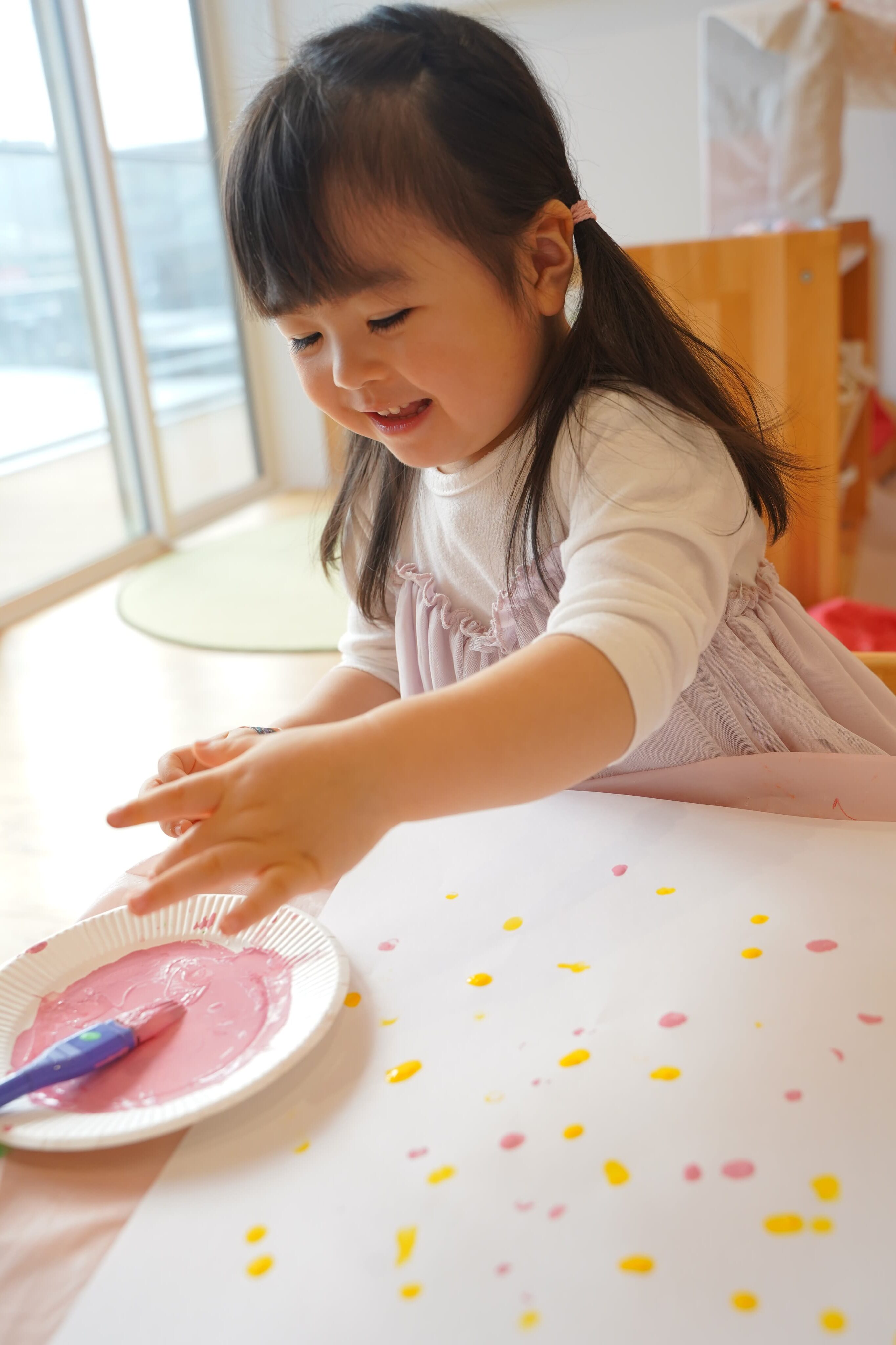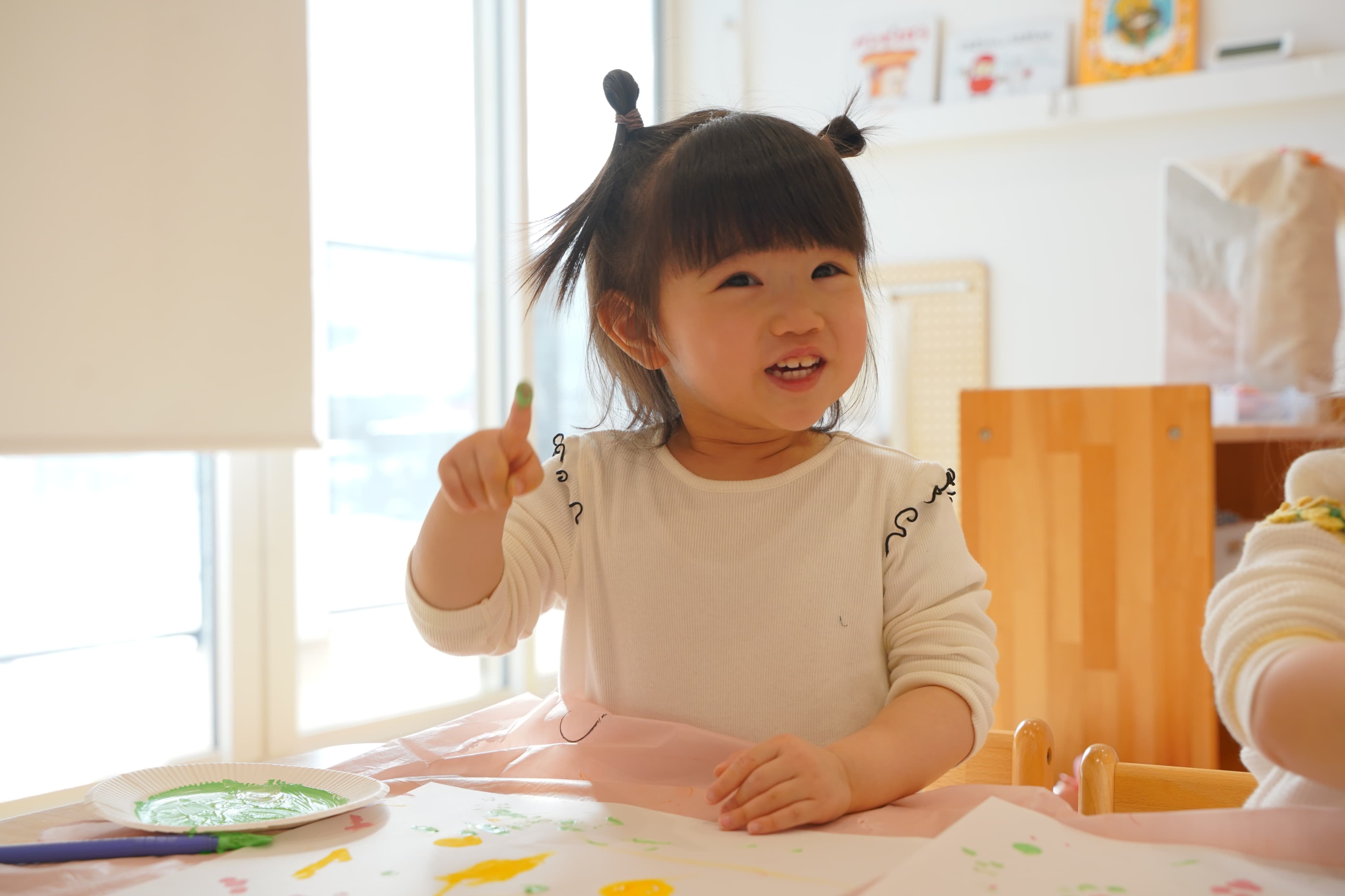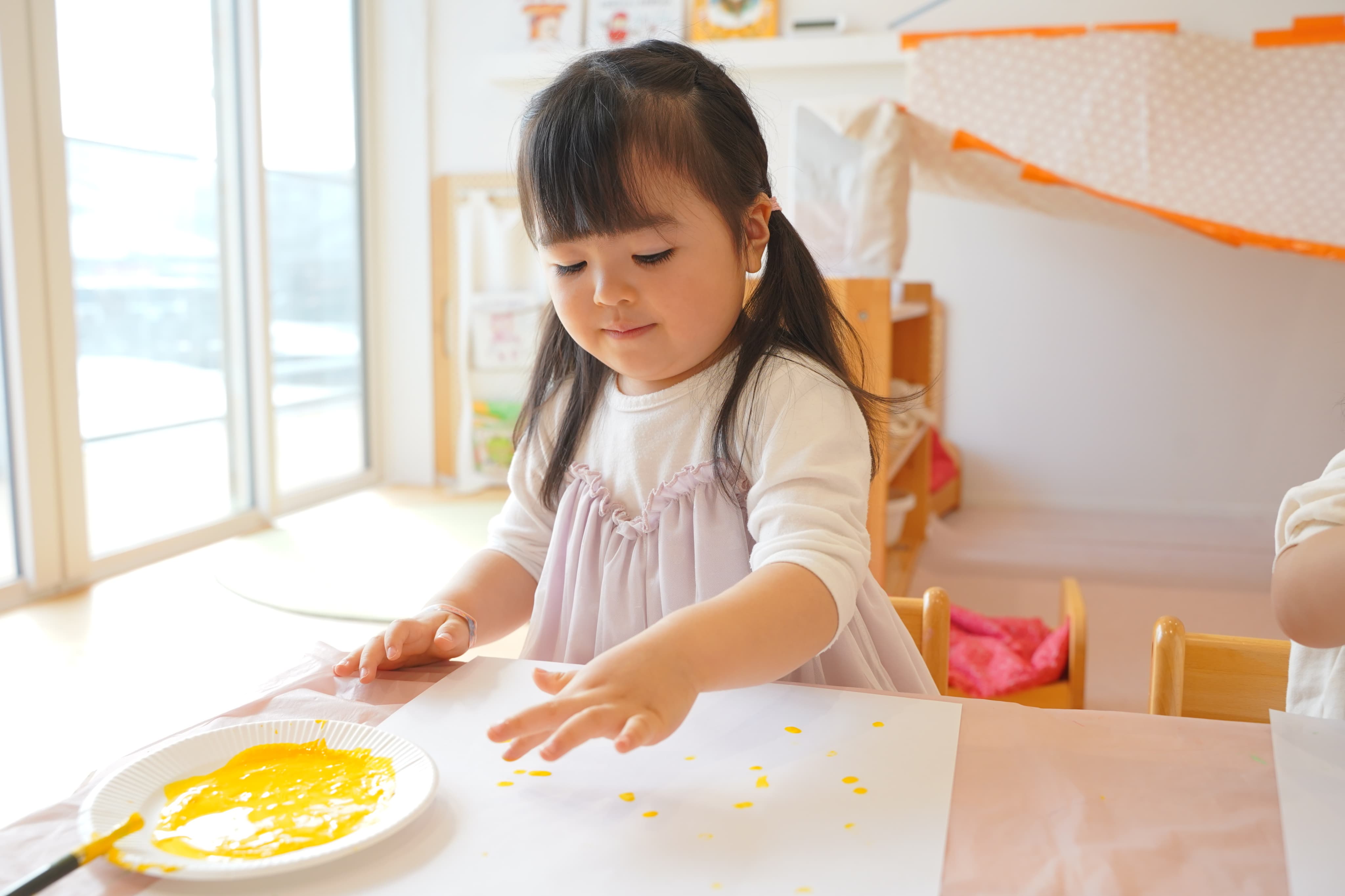好きな色を選んで、ペタペタっ☝️大きな画用紙いっぱいに自由に表現して、絵の具の感触や色を楽しんでいましたよ💭