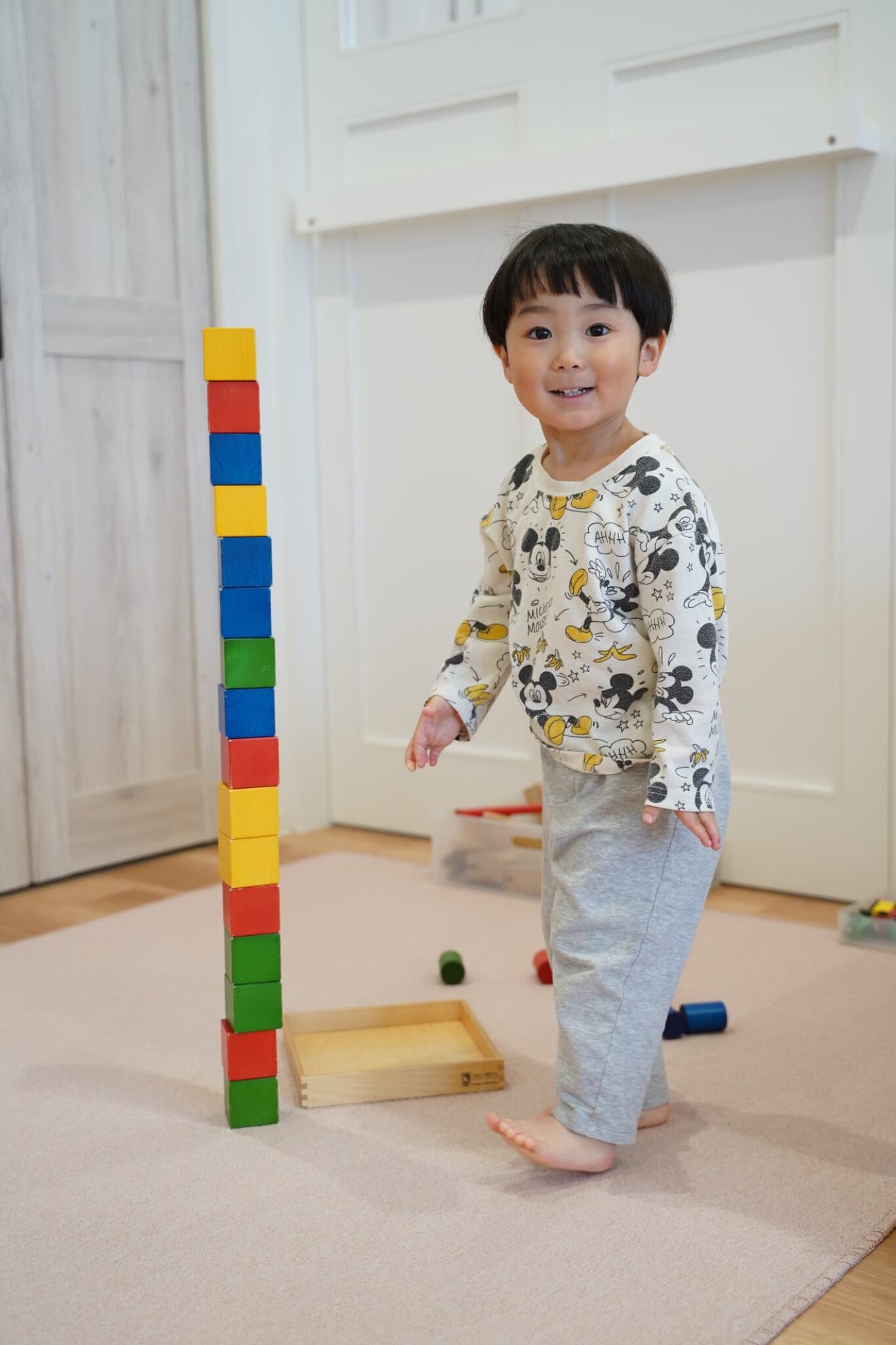 積み木も高く積めてキラキラした笑顔です✨