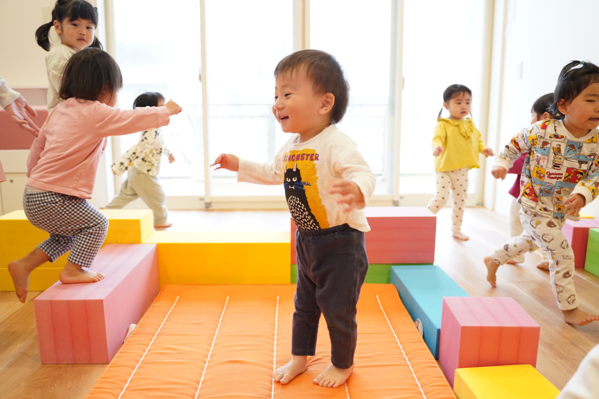 今日はプレイルームでも遊びました。マットの上にジャンプ!体を沢山動かしました😆