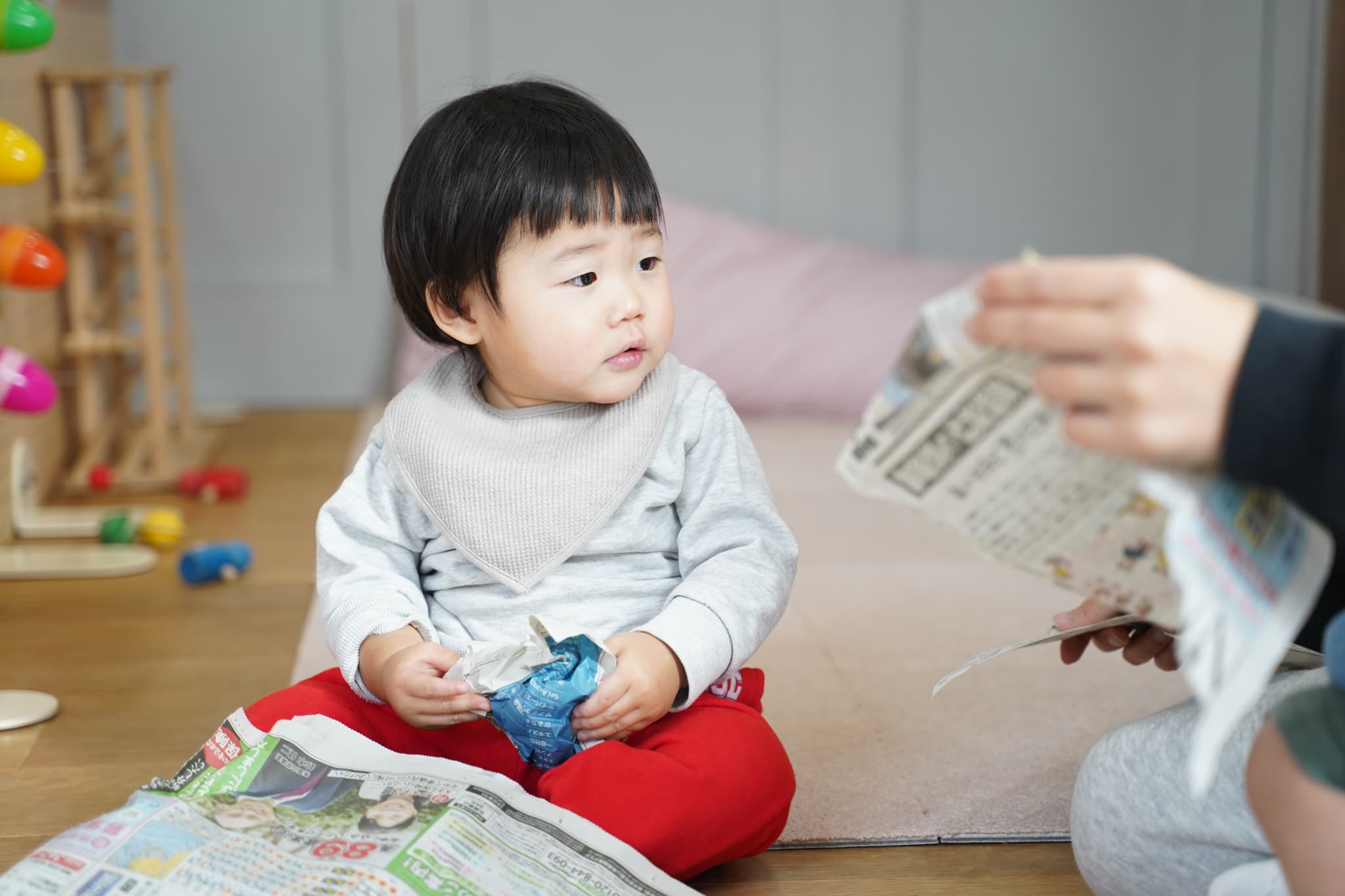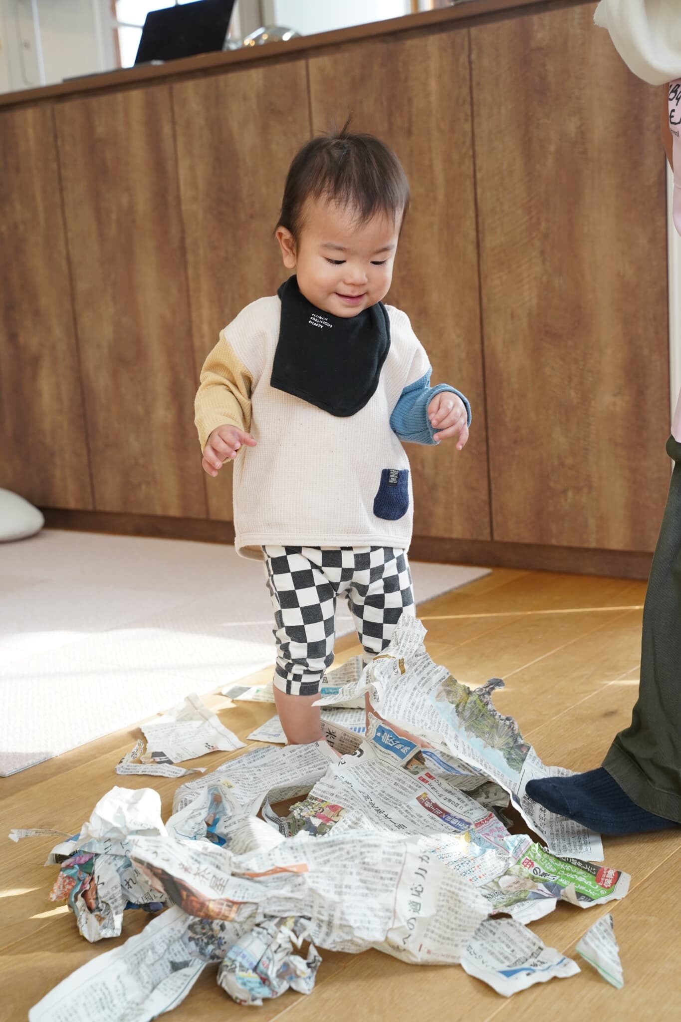 新聞1つでいろんな音や感触、手足の動きを楽しめたね♩