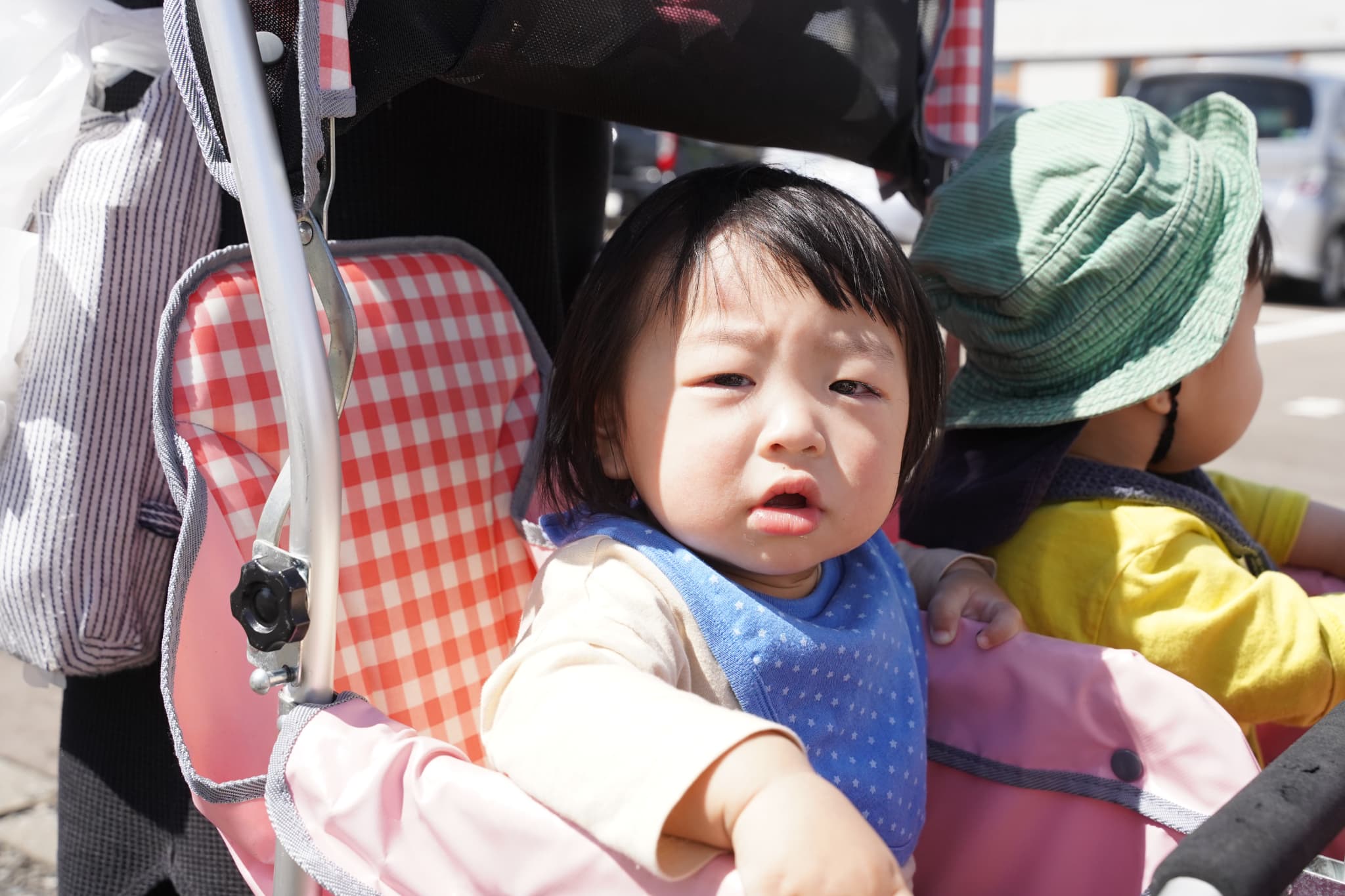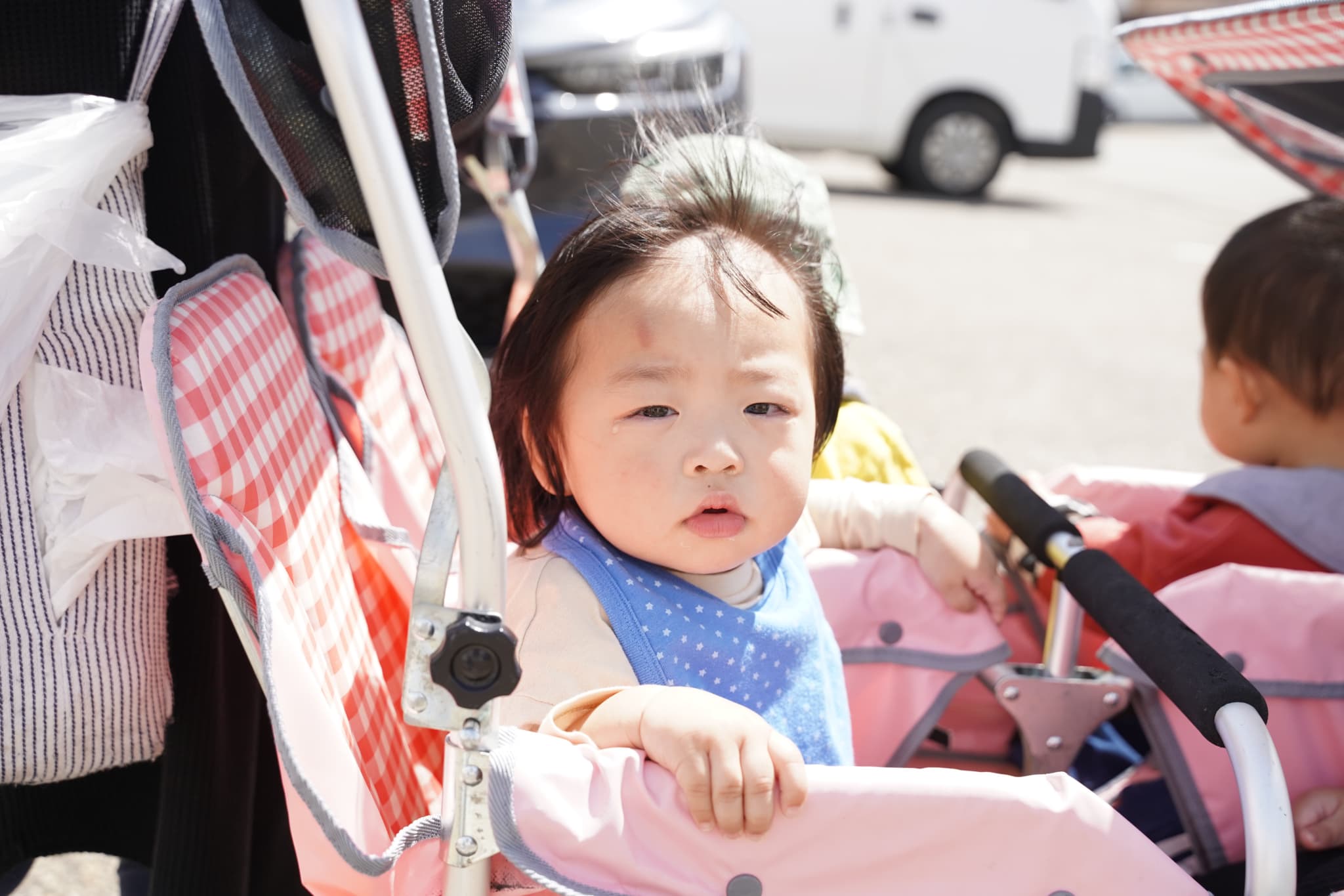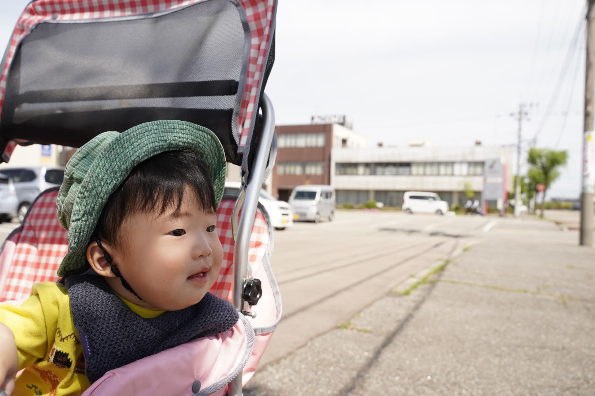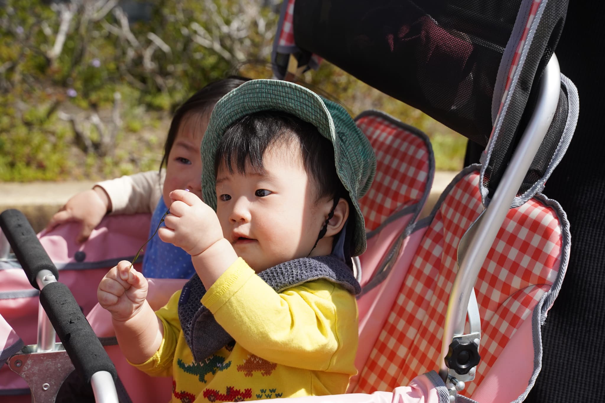 今日もとってもお天気がよかったので散歩車に乗ってお散歩しました♩