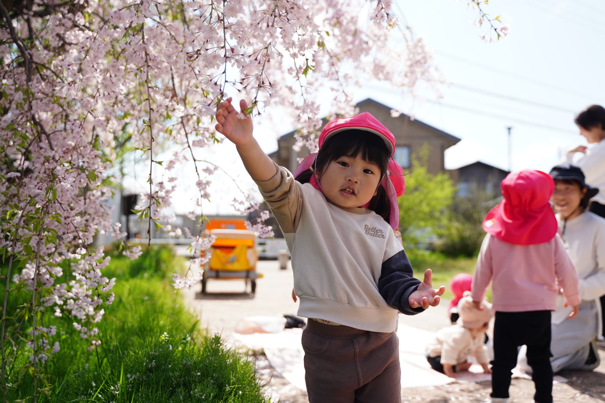 わたしは風に乗って花びらがたくさん飛んでくるのが楽しいようで、何度も触ってみていましたよ🌸